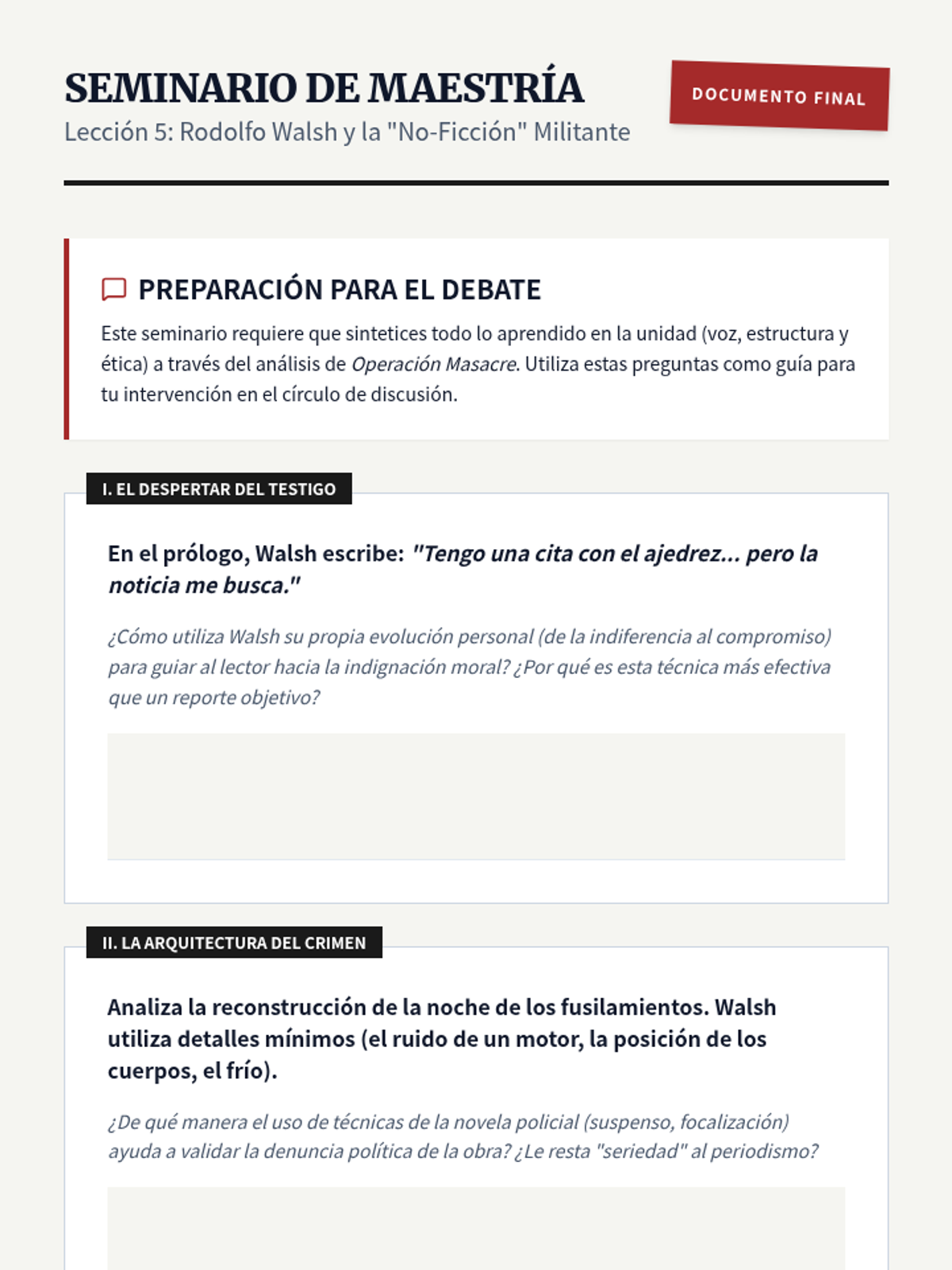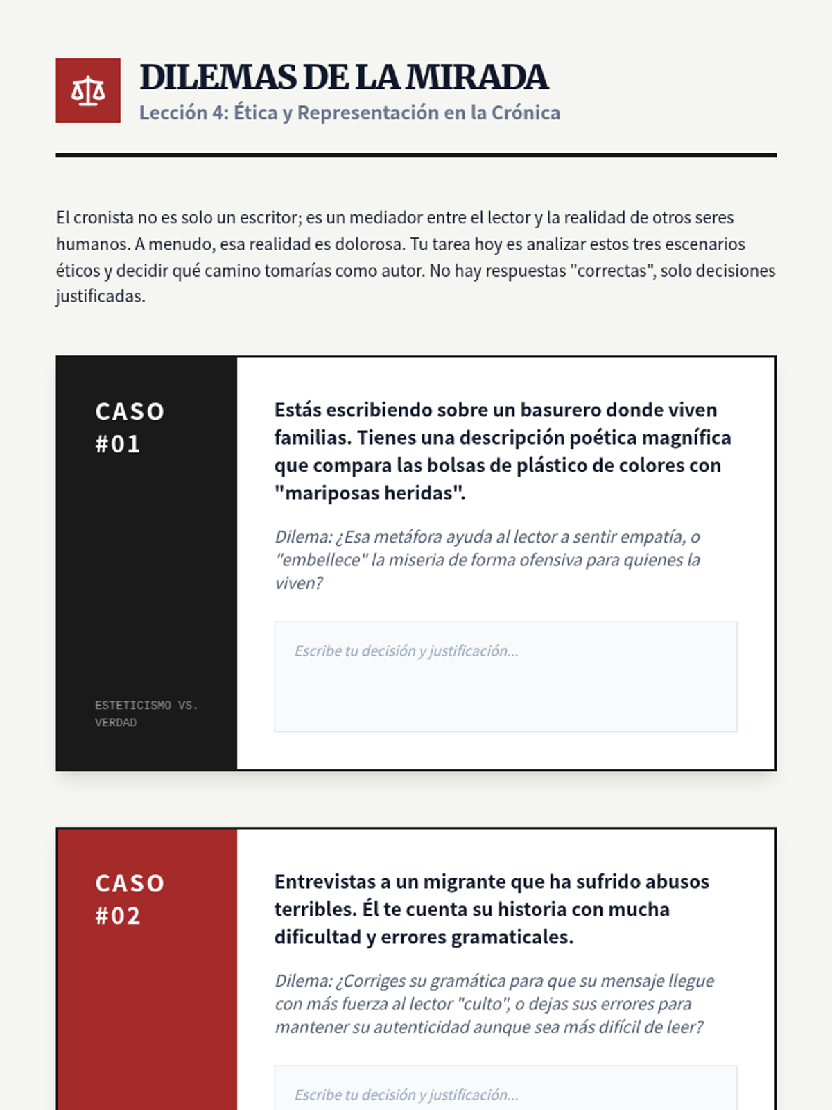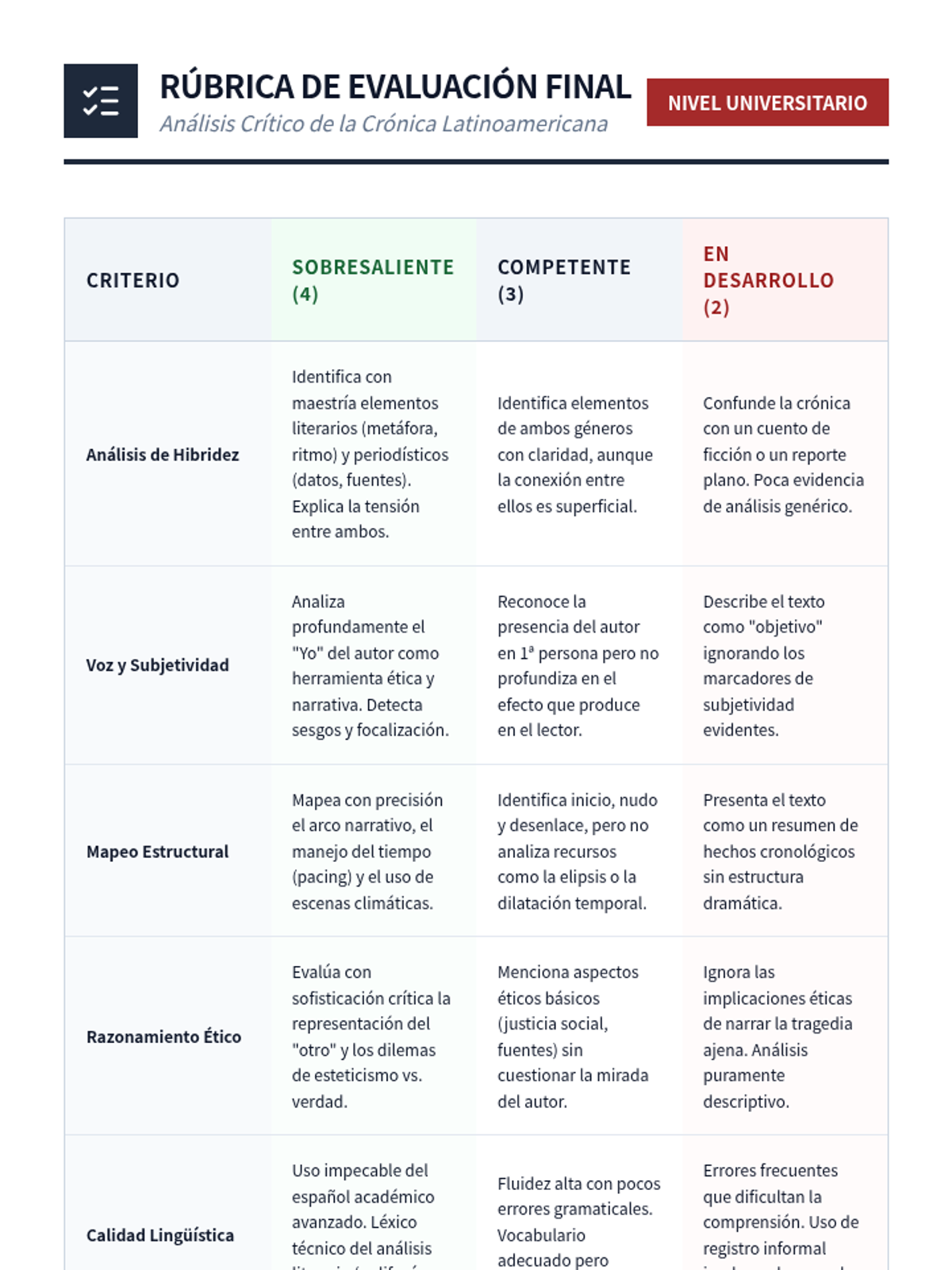 This advanced Spanish sequence explores the Latin American 'Crónica' genre, analyzing how authors blend journalistic rigor with literary techniques to create powerful social narratives. Students will investigate the tension between objectivity and subjectivity while developing critical reading skills for complex non-fiction texts.