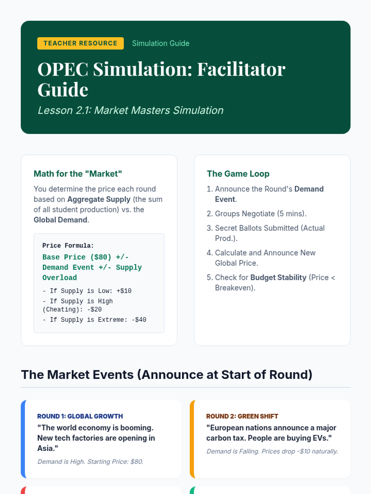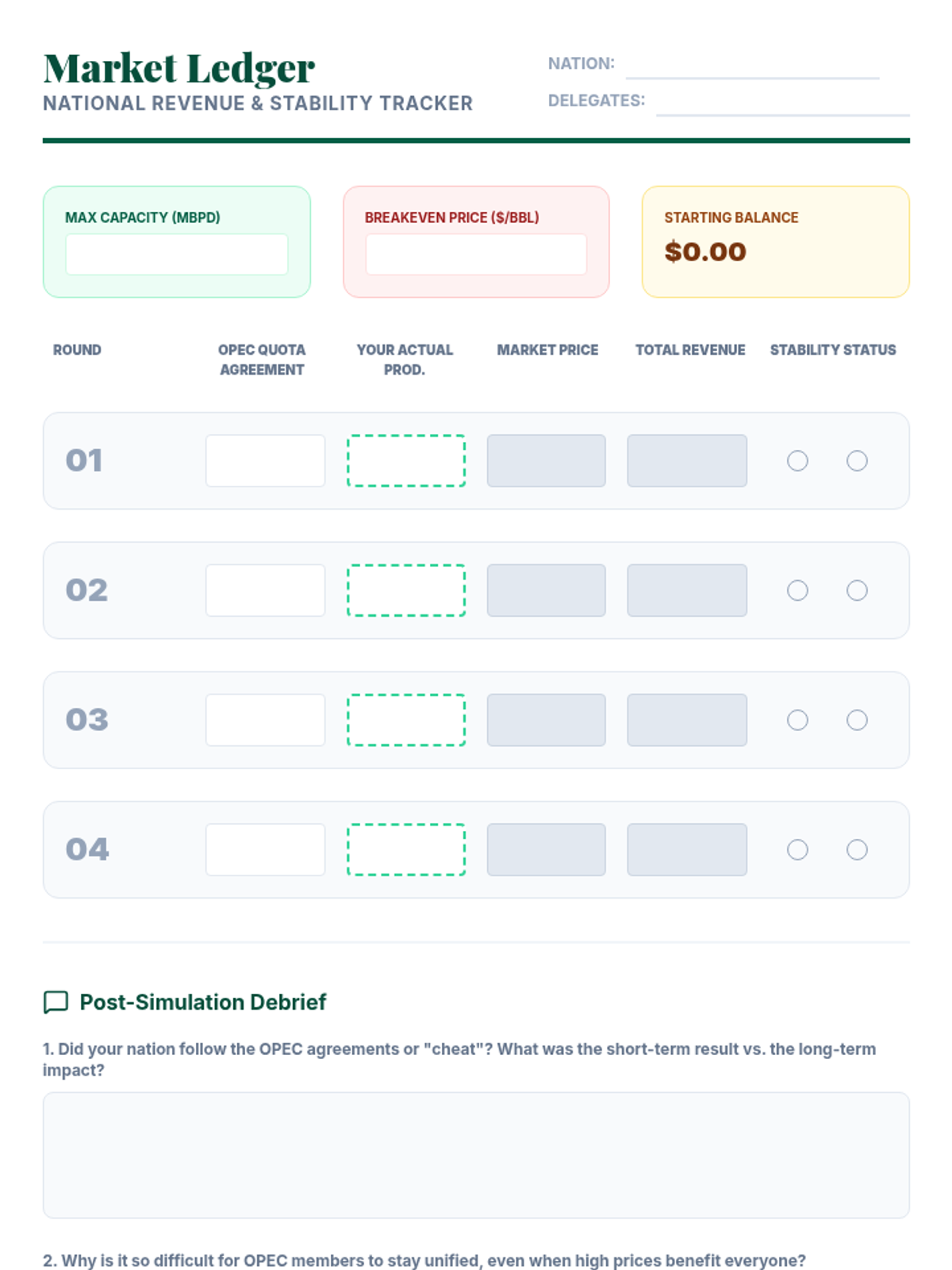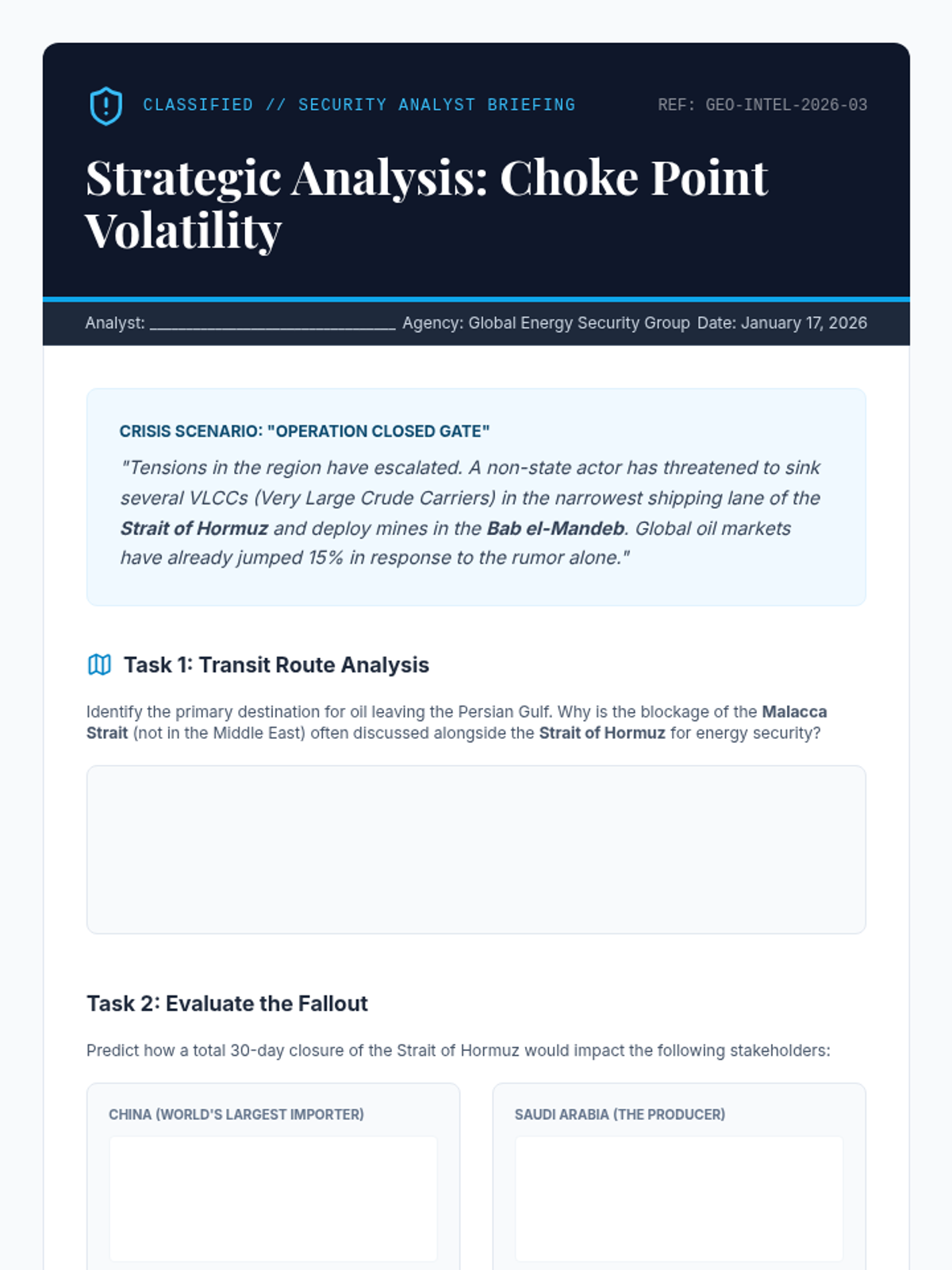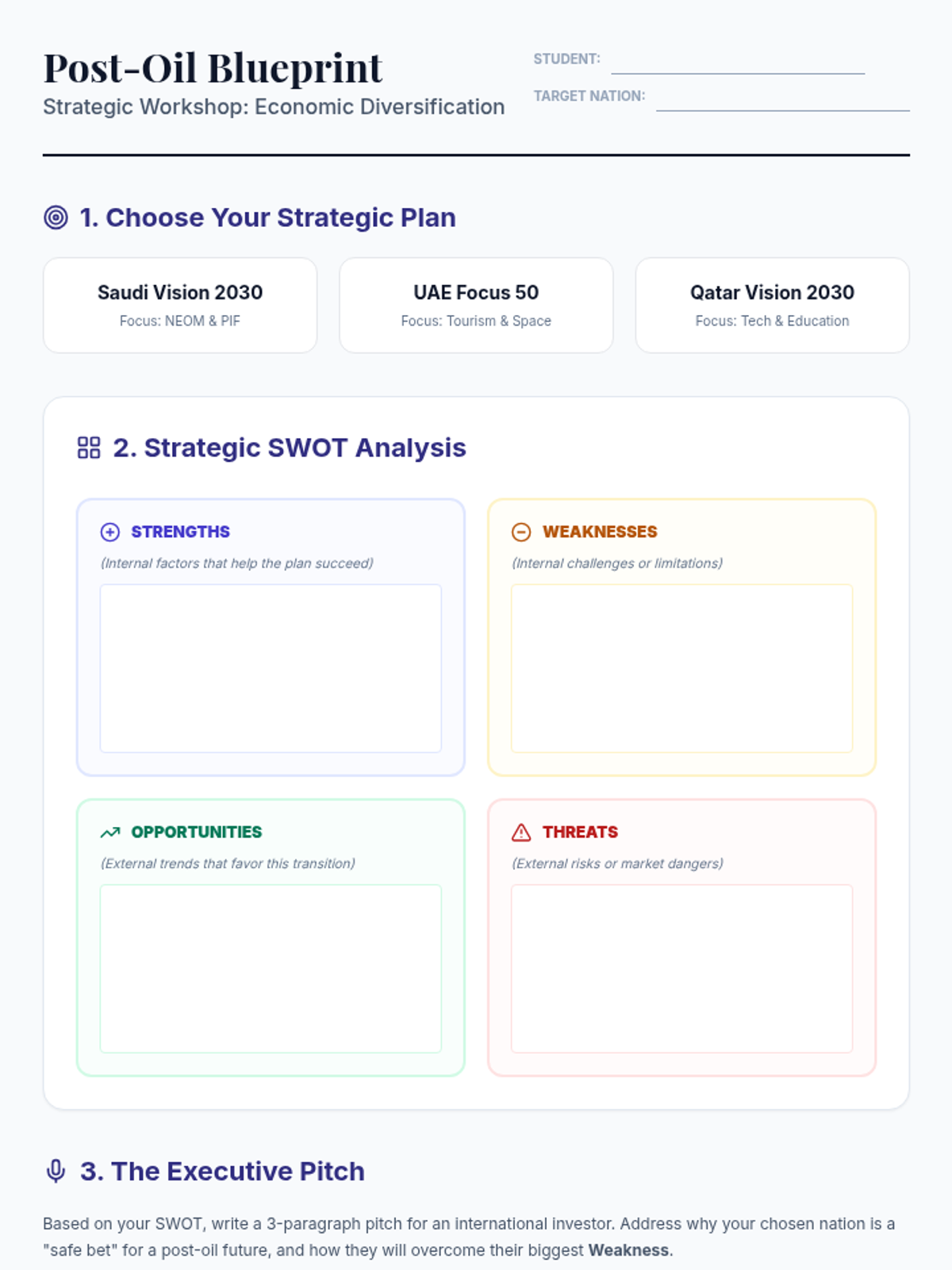 This sequence explores the profound impact of petroleum resources on the economic structures, social contracts, and geopolitical strategies of the Middle East. Students analyze the 'Resource Curse', participate in an OPEC simulation, map strategic maritime choke points, and evaluate post-oil diversification strategies like Saudi Vision 2030.