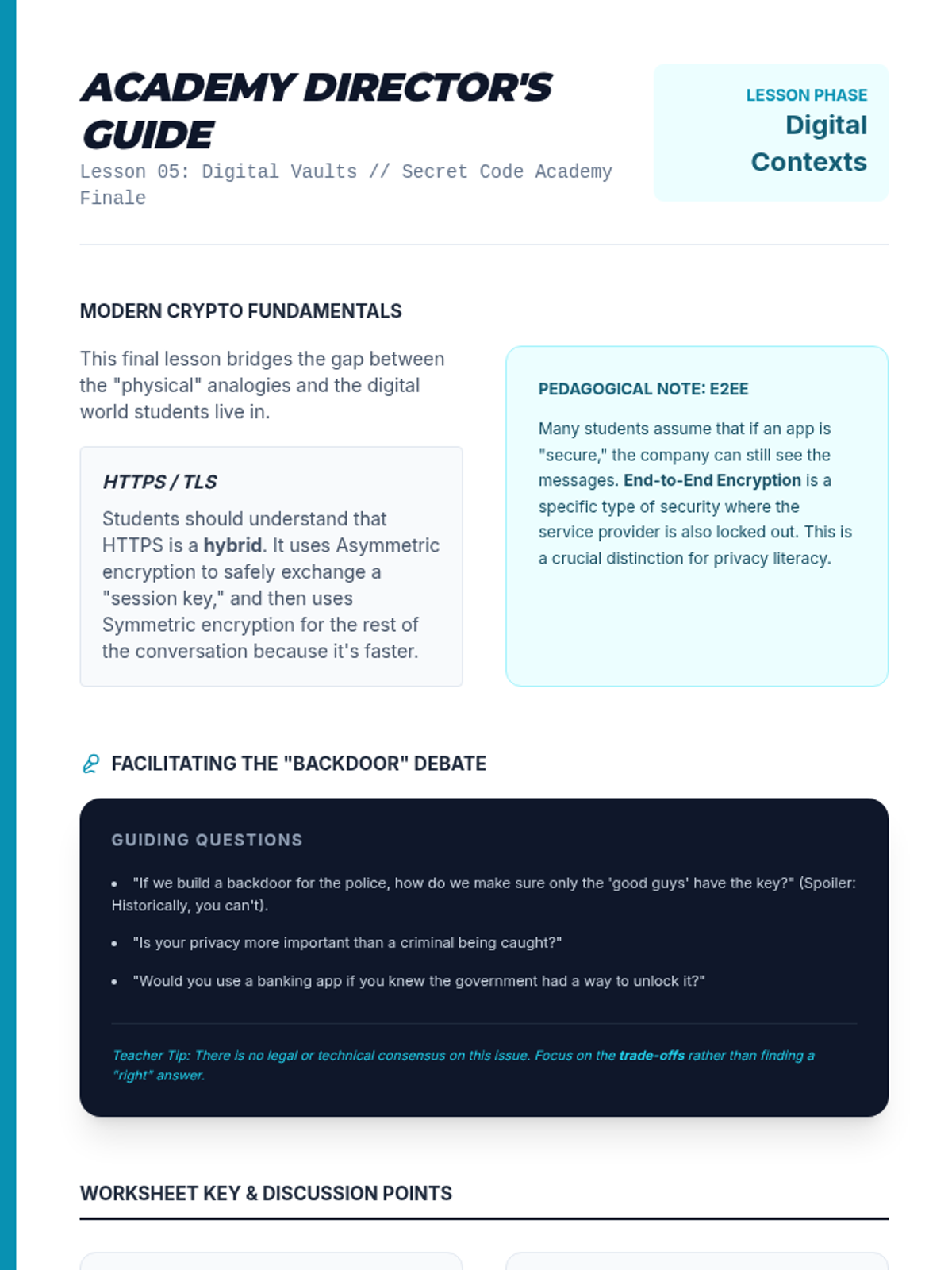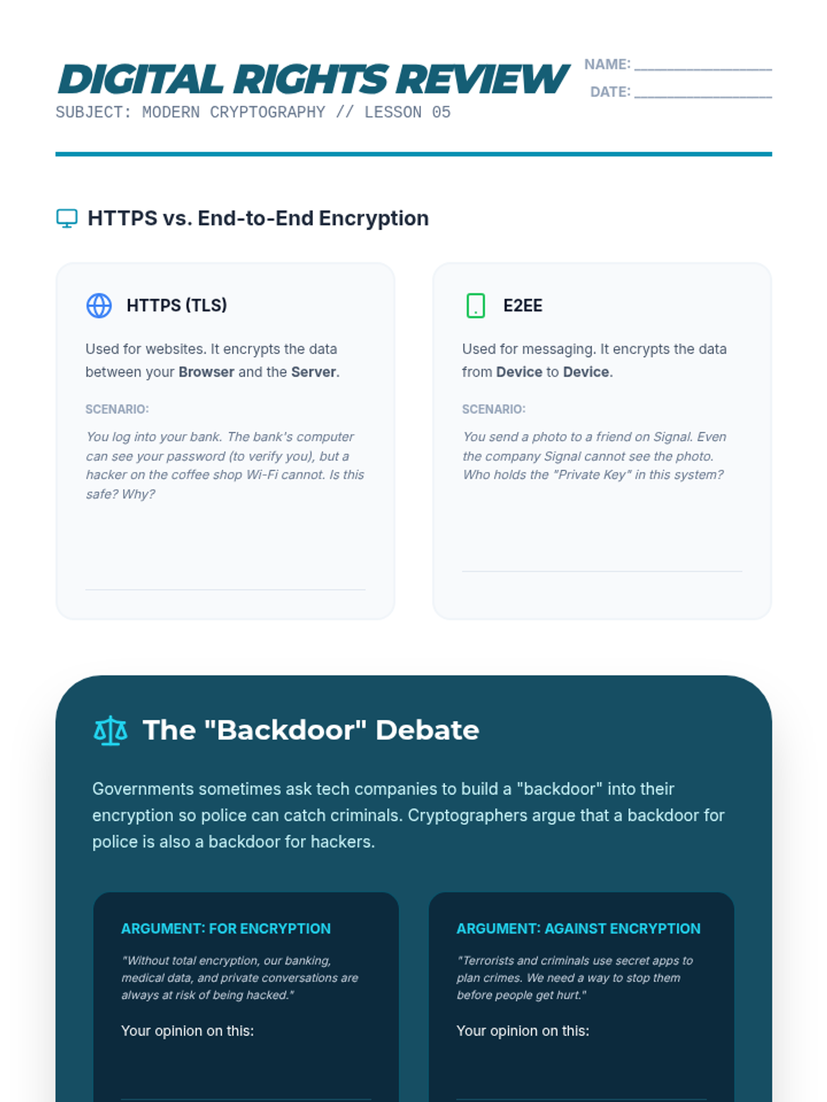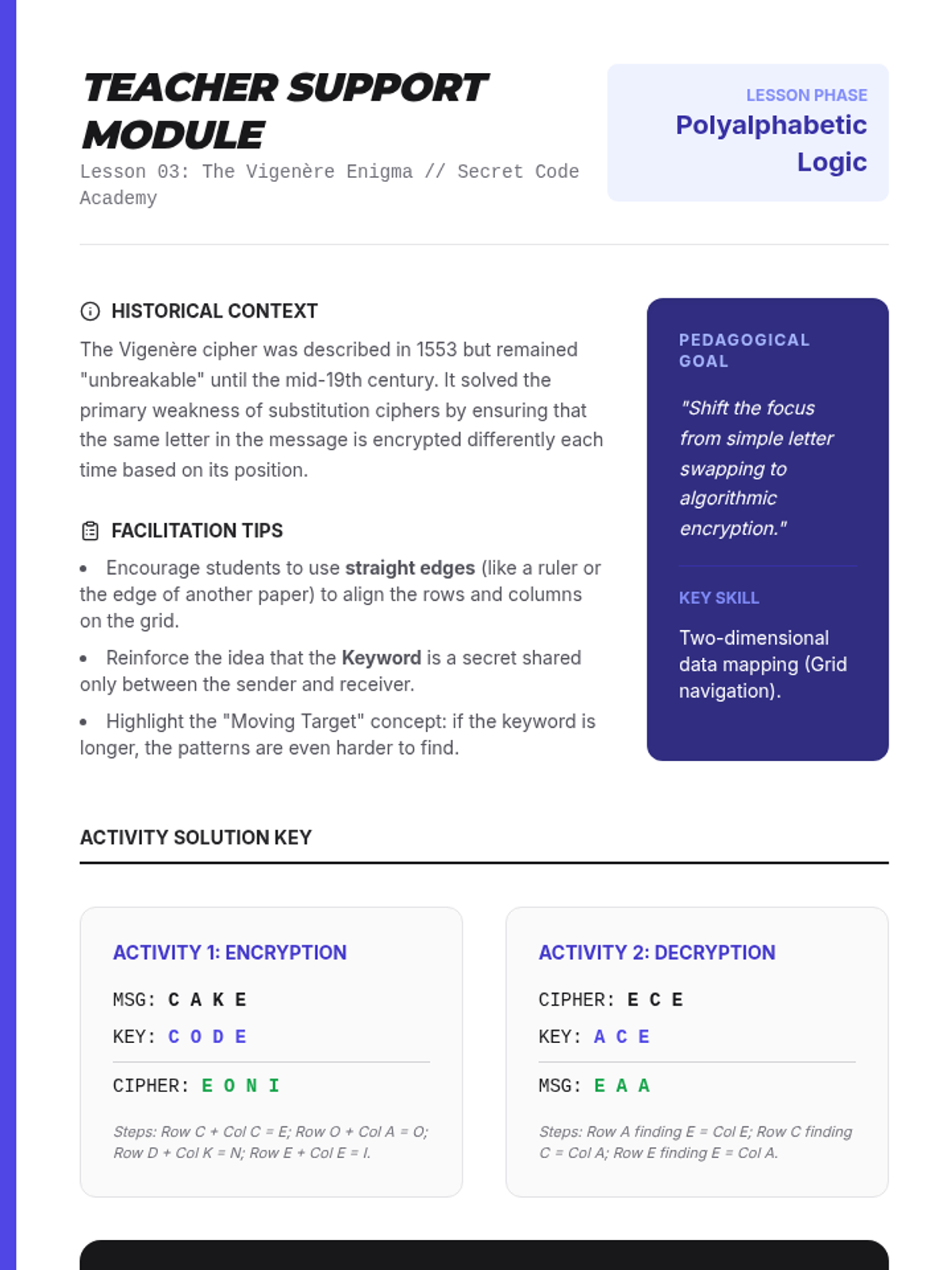 A comprehensive introduction to cryptography for 6th-grade students, covering historical methods like Caesar and Vigenère ciphers, frequency analysis, and conceptual modern encryption like public-key systems. Students will engage in hands-on code-breaking and simulations to understand data privacy.
