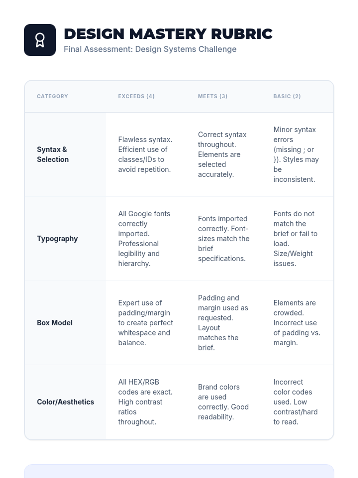 An immersive workshop-style sequence for 8th graders to master CSS, moving from basic syntax to complex layout mechanics and accessible visual design.