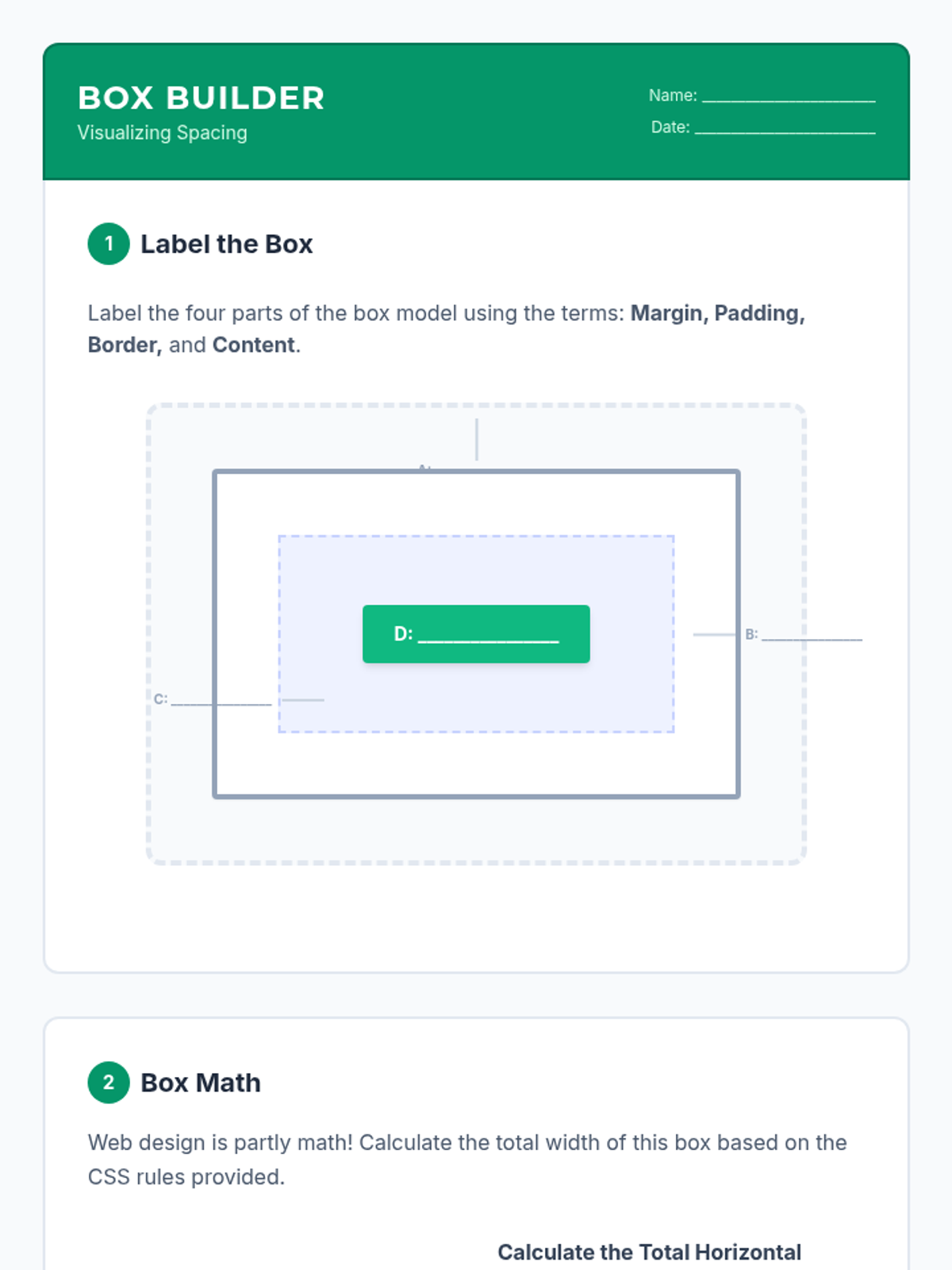 Students transition from basic HTML to CSS, learning how to style web pages with colors, fonts, and layouts. The sequence covers CSS syntax, color theory, typography, and the box model, culminating in a personal profile design project.