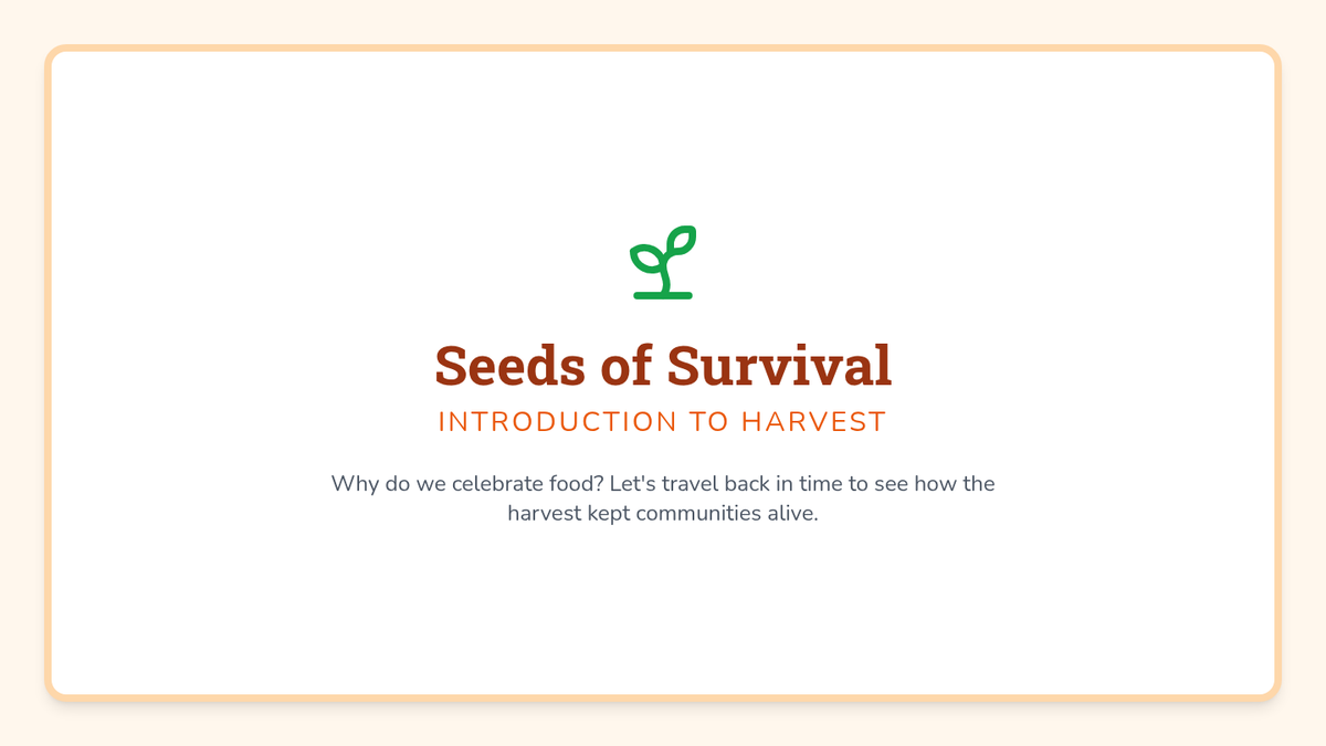 A 5-lesson sequence for 2nd Grade students exploring the agricultural origins and cultural expressions of harvest festivals around the world, including American Thanksgiving, Sukkot, Chuseok, and Pongal. Students investigate history, compare traditions, and identify the shared human experience of gratitude and community.