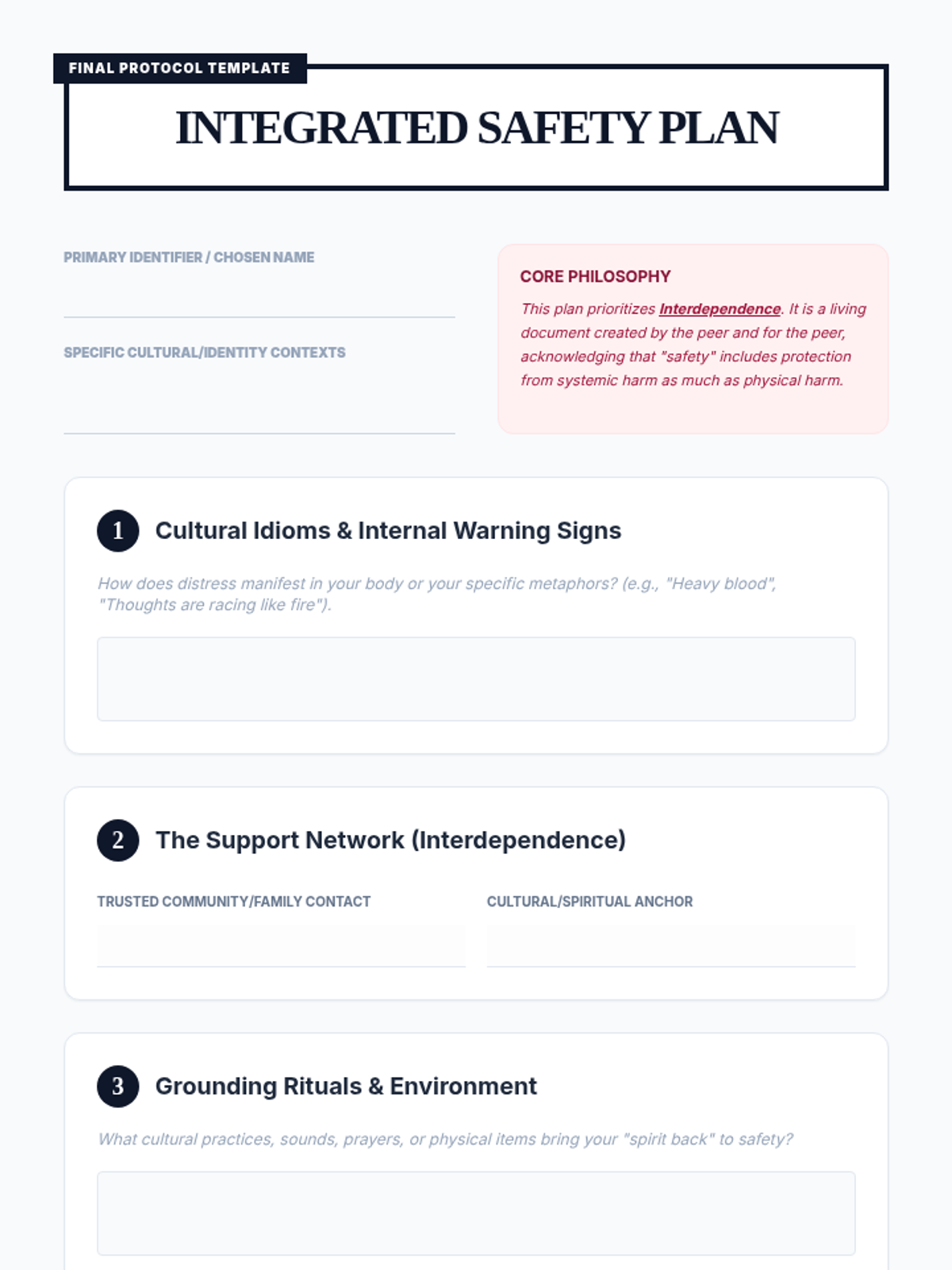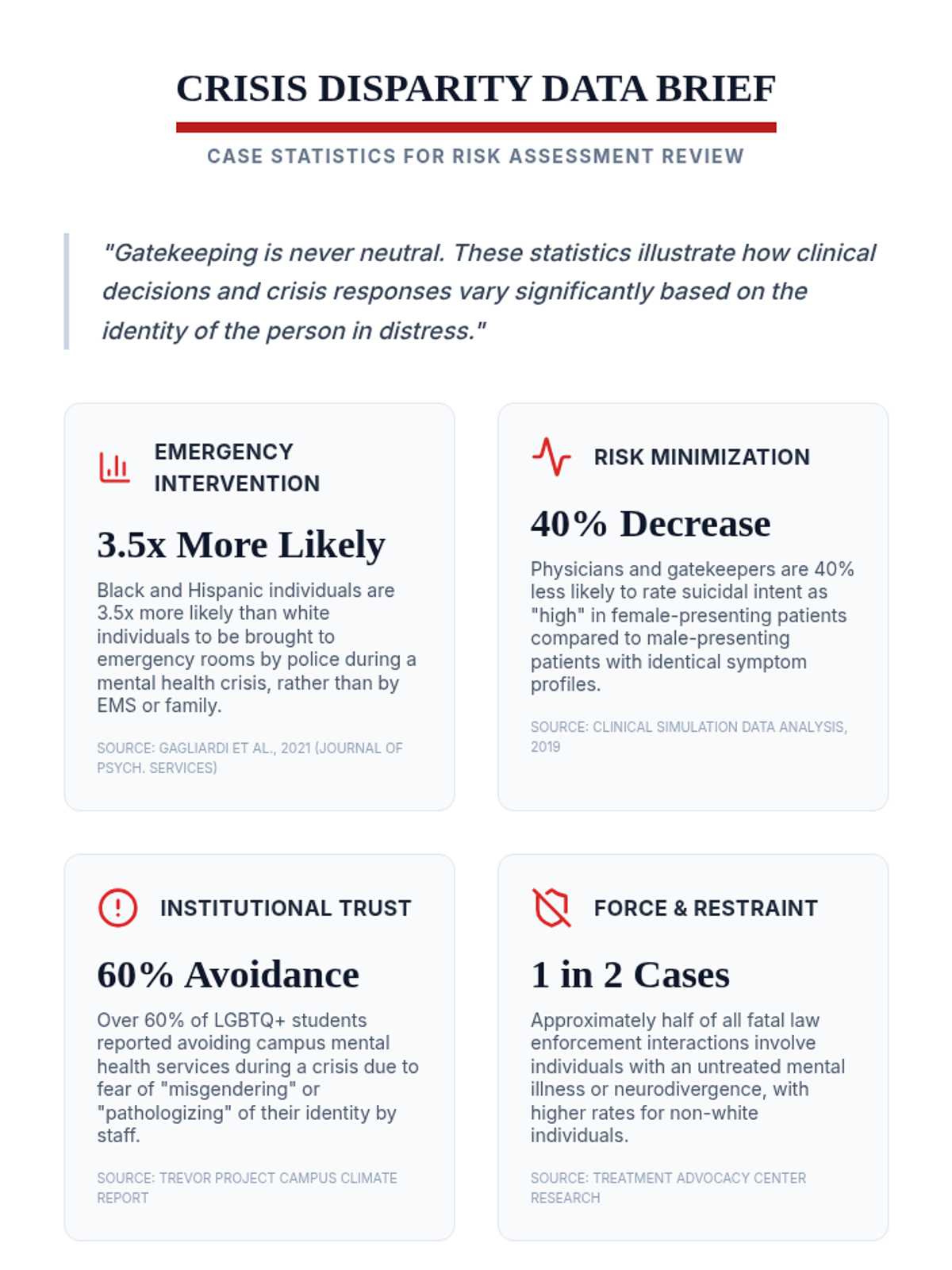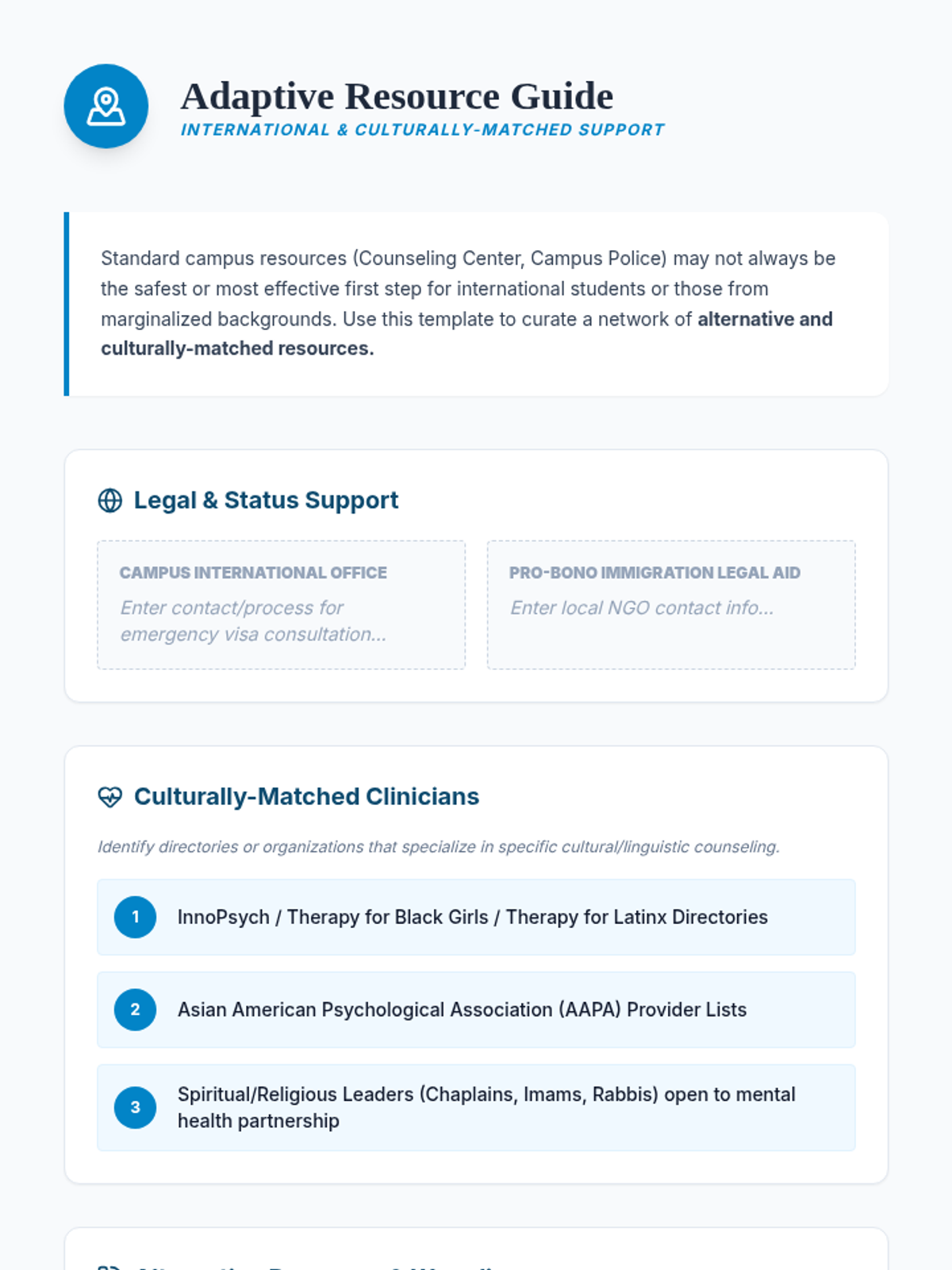 A comprehensive graduate-level training sequence exploring how cultural identity, systemic barriers, and implicit bias influence crisis presentation and peer support. Students move from understanding diverse cultural idioms of distress to developing culturally responsive safety plans that challenge traditional Western medical models.
