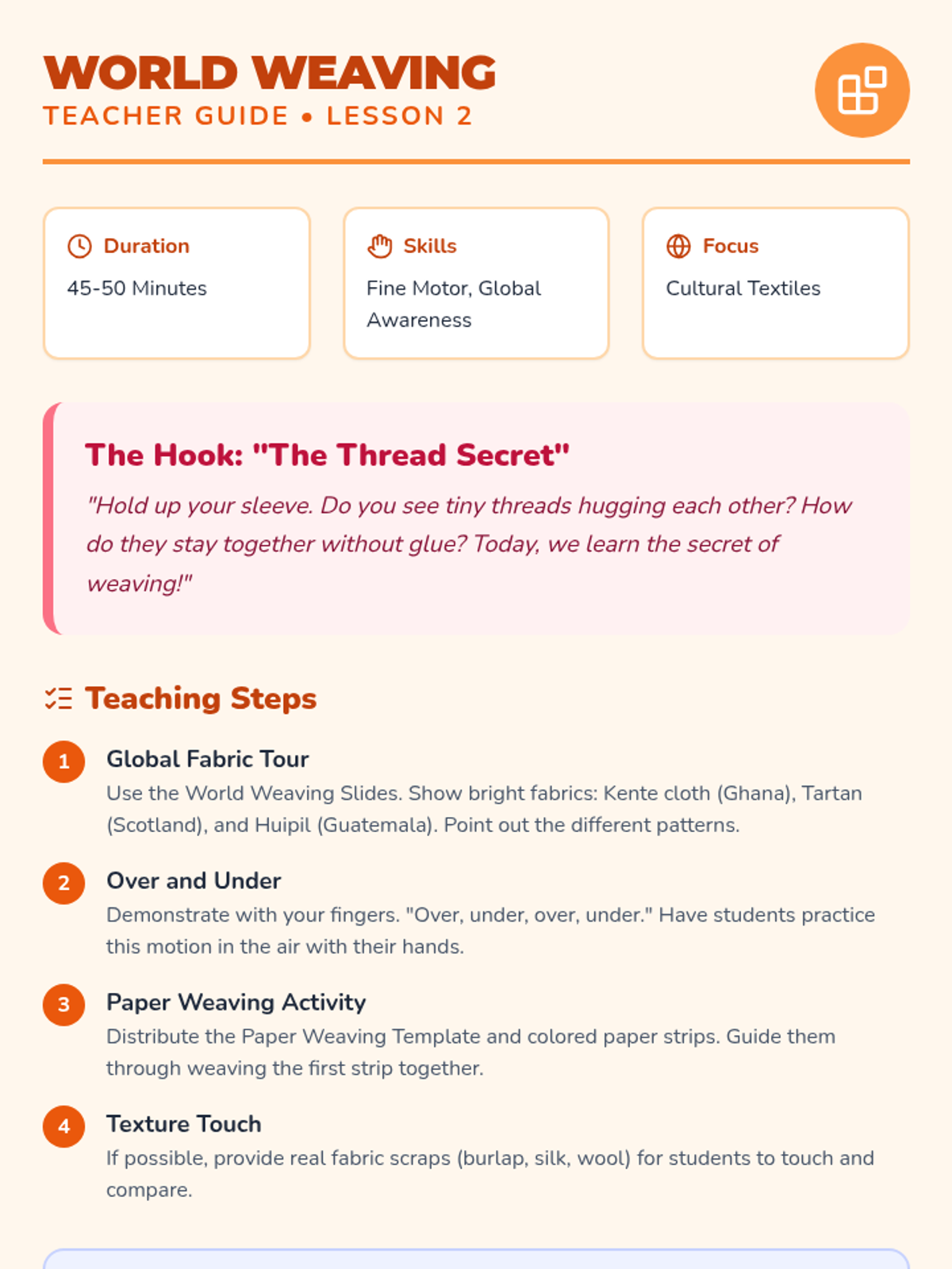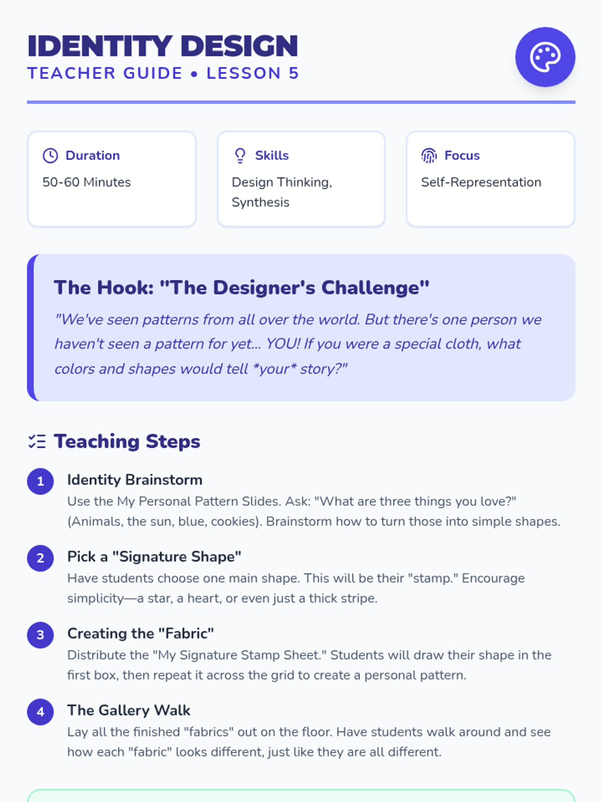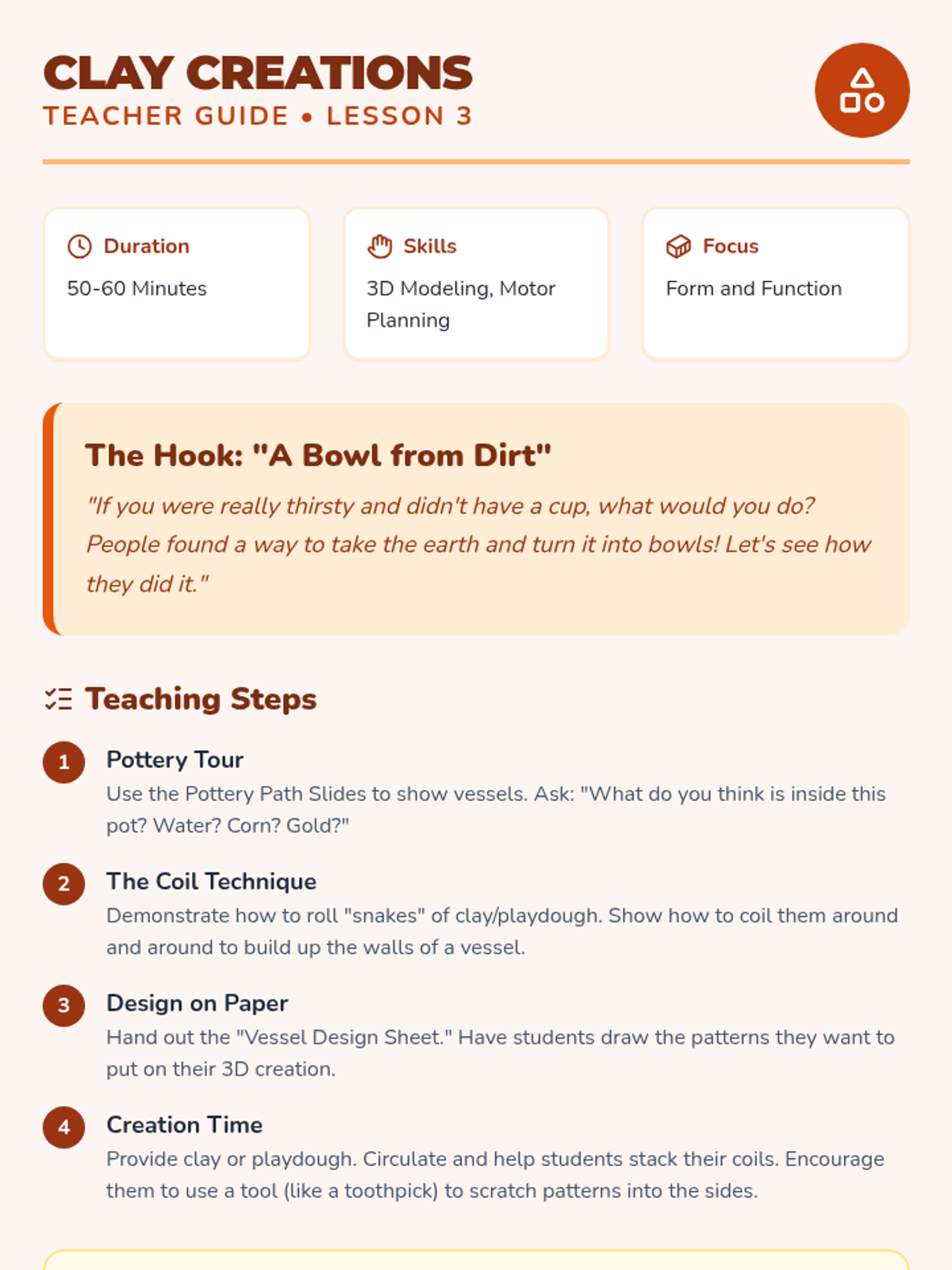 A Pre-K inquiry-based sequence where students explore how patterns and objects tell stories across cultures. Students investigate daily patterns, global textiles, pottery, and family artifacts to build cultural awareness and design skills.