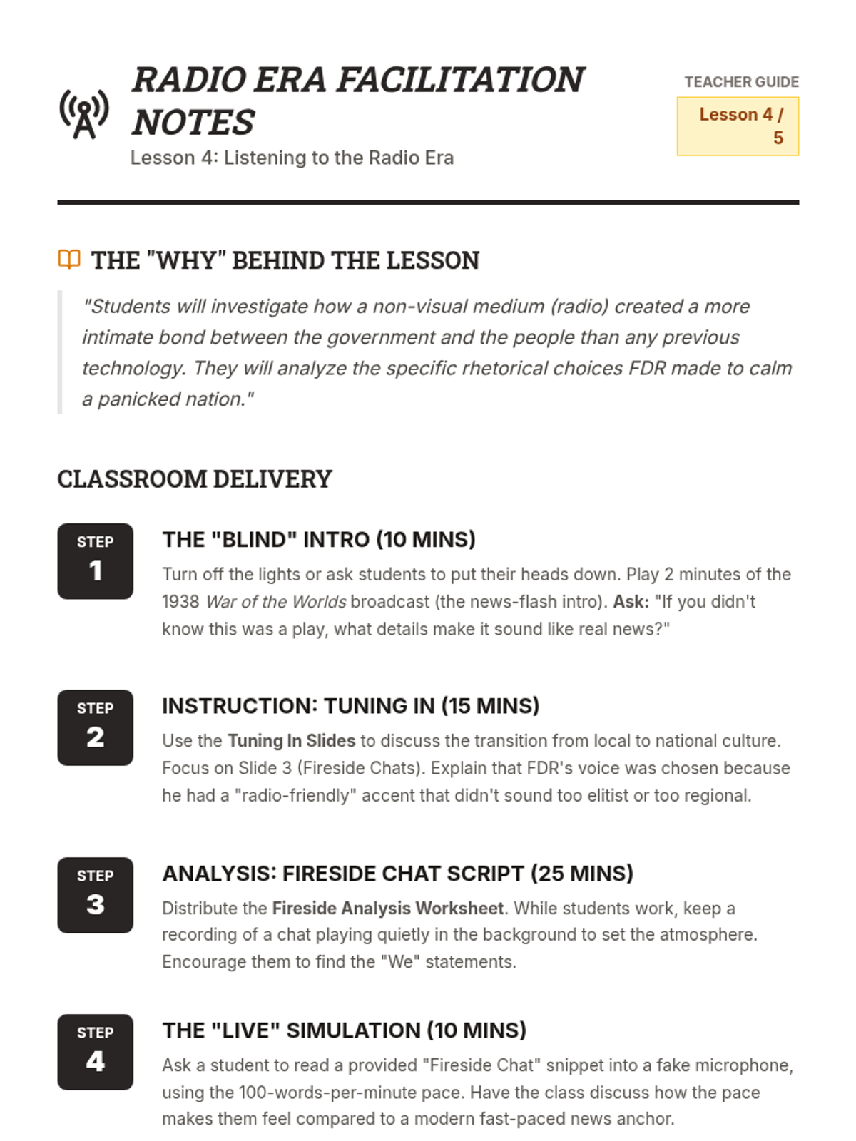 A sequence exploring the transformative power of listening in historical contexts, from diplomatic negotiations to the preservation of oral histories. Students analyze how listening (or the lack thereof) shaped major world events and learn to apply these skills to primary source analysis.