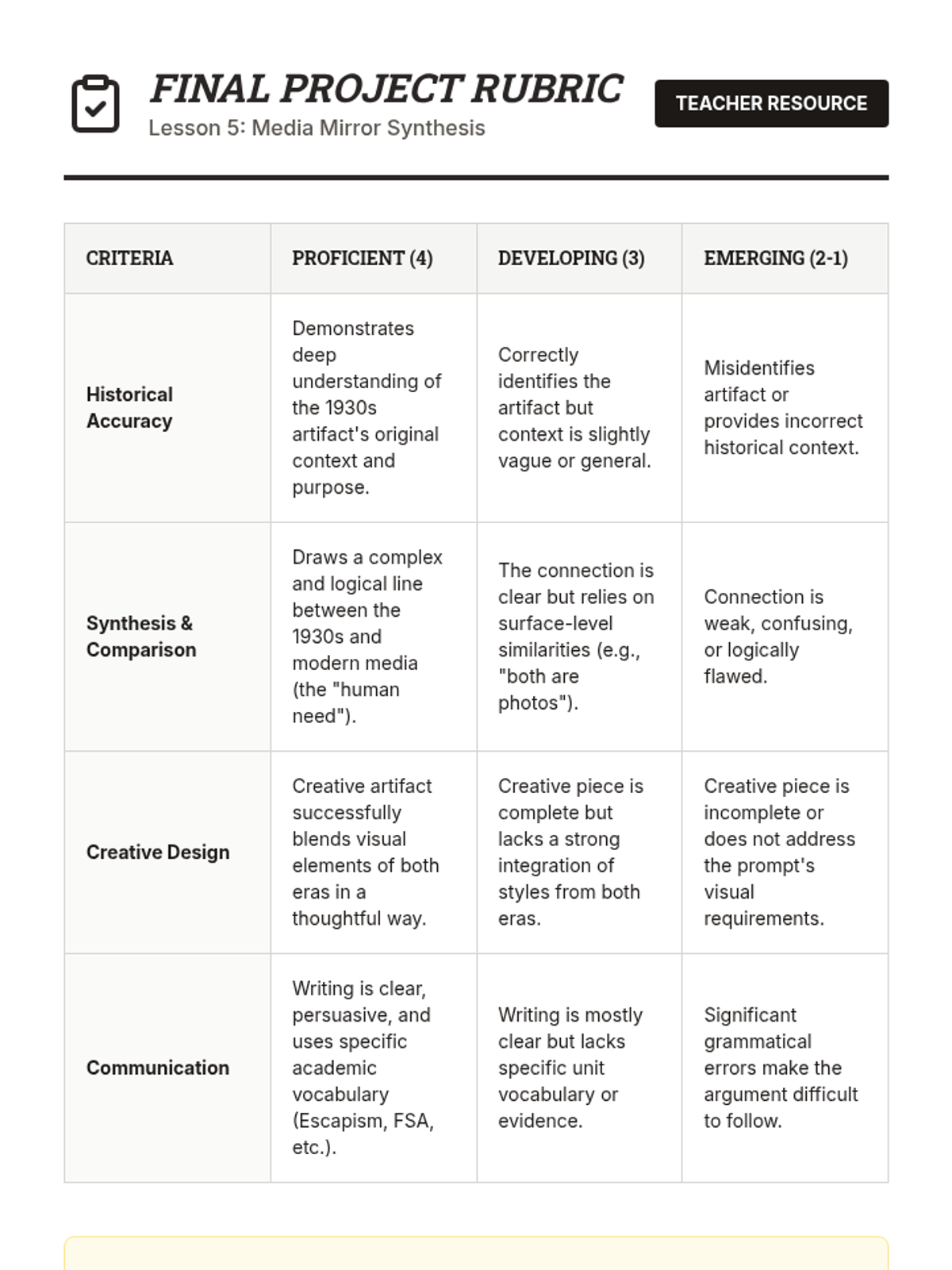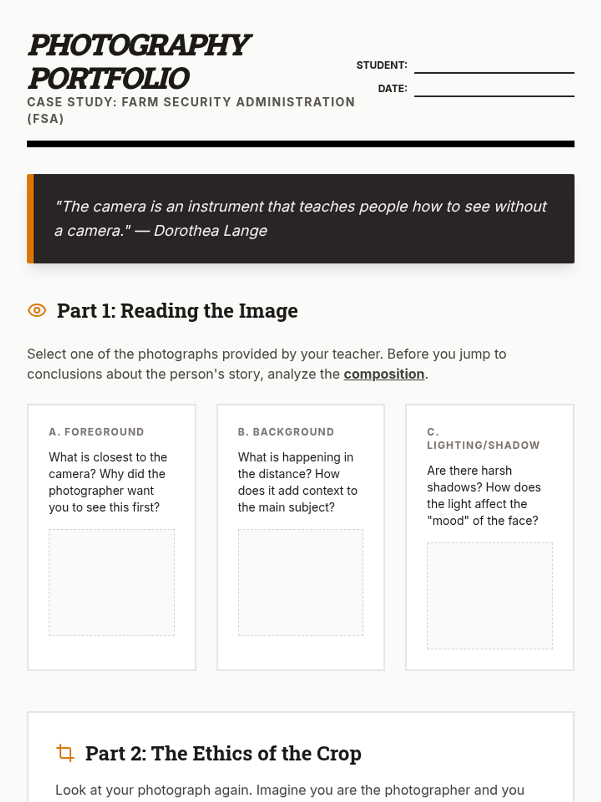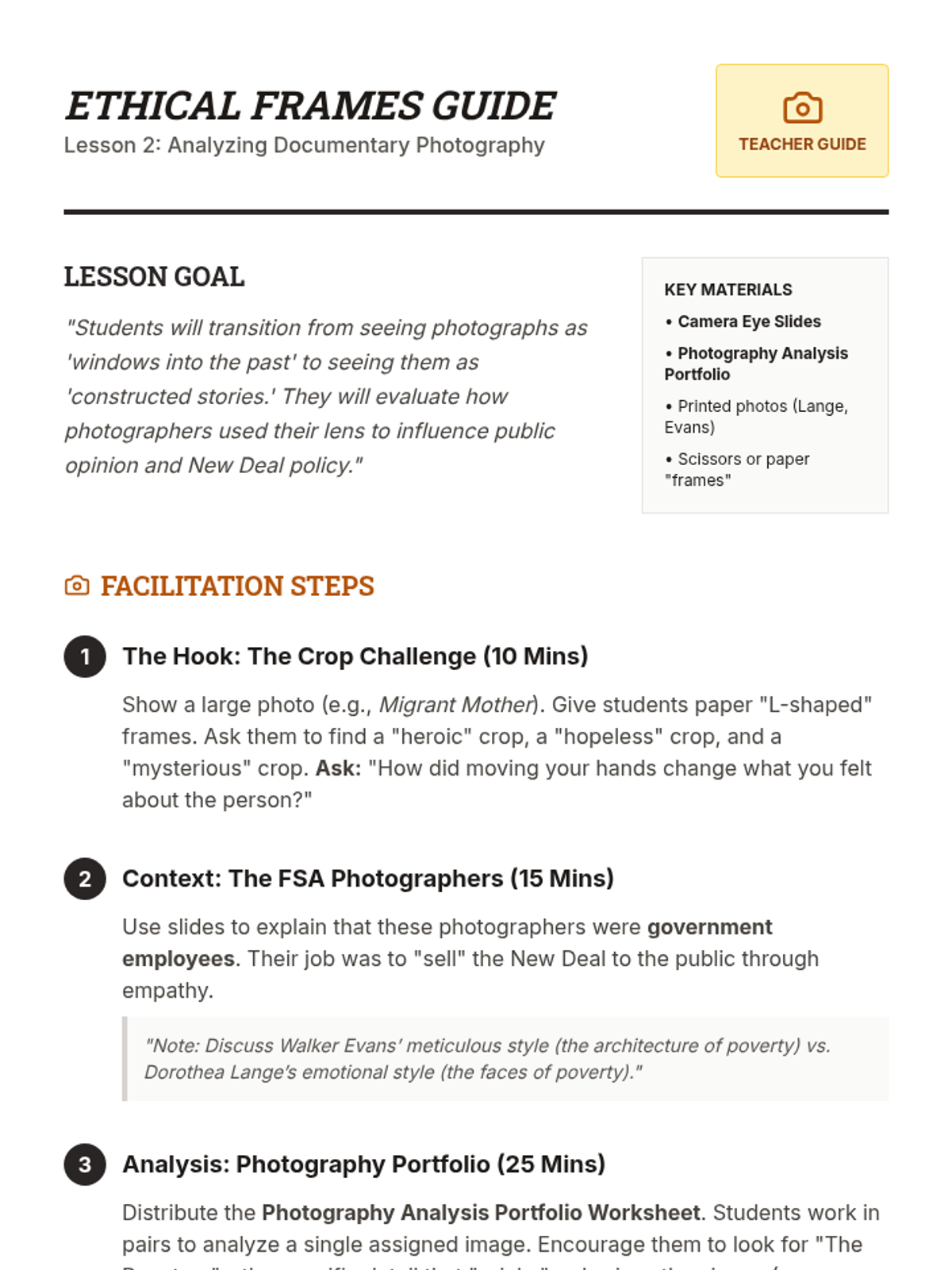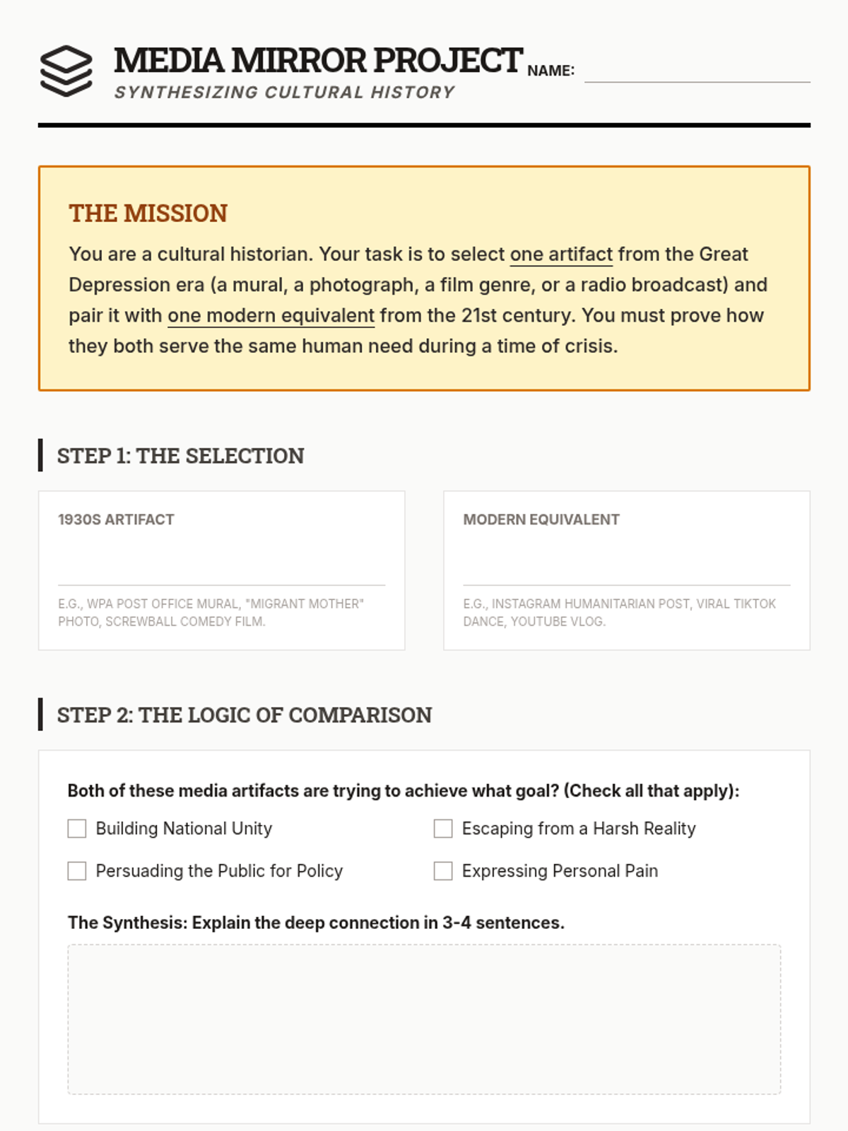 This sequence examines how Americans used art, photography, cinema, and radio to cope with the Great Depression. Students analyze the role of government-sponsored culture and the power of media in shaping national identity and memory.