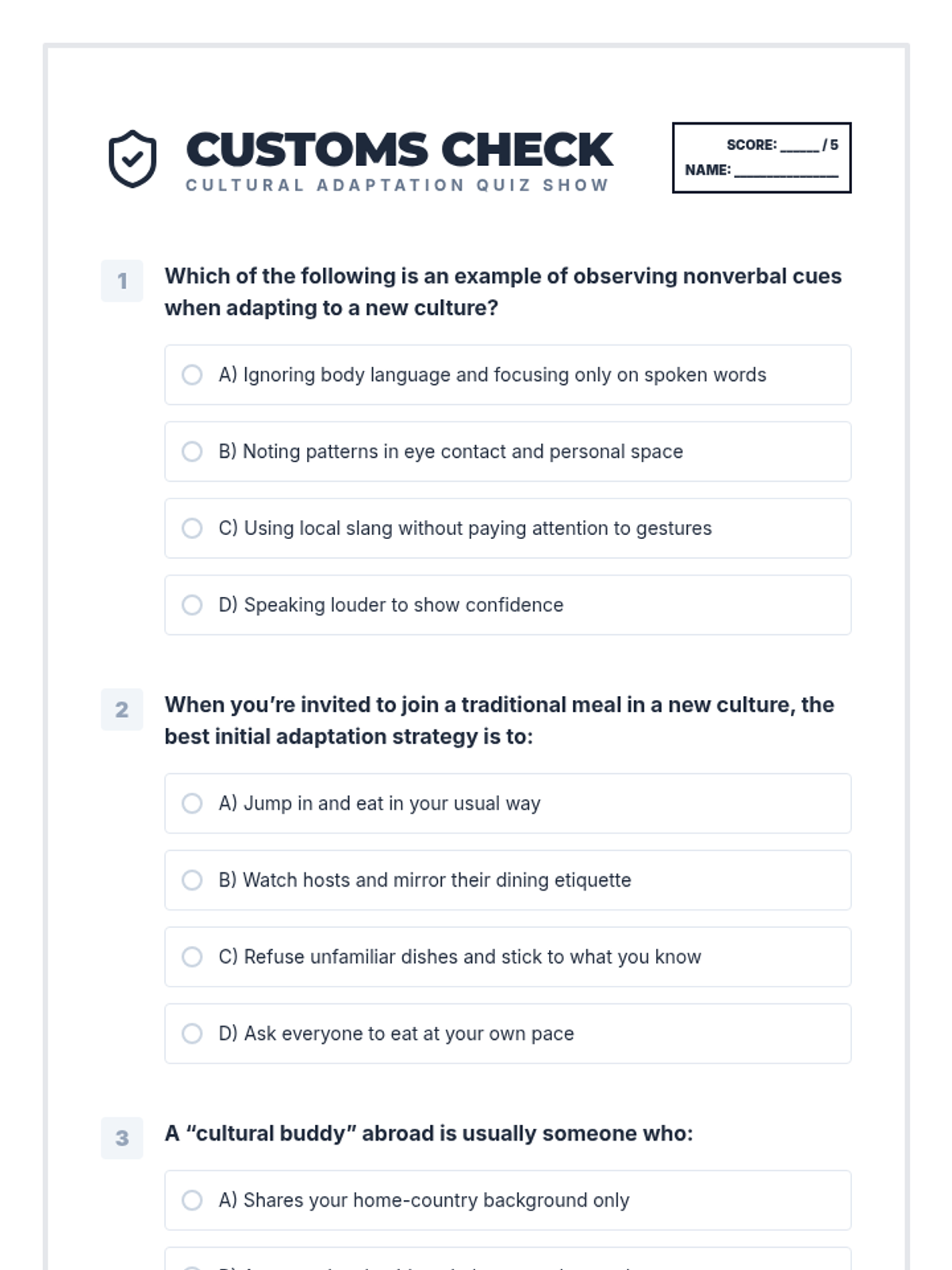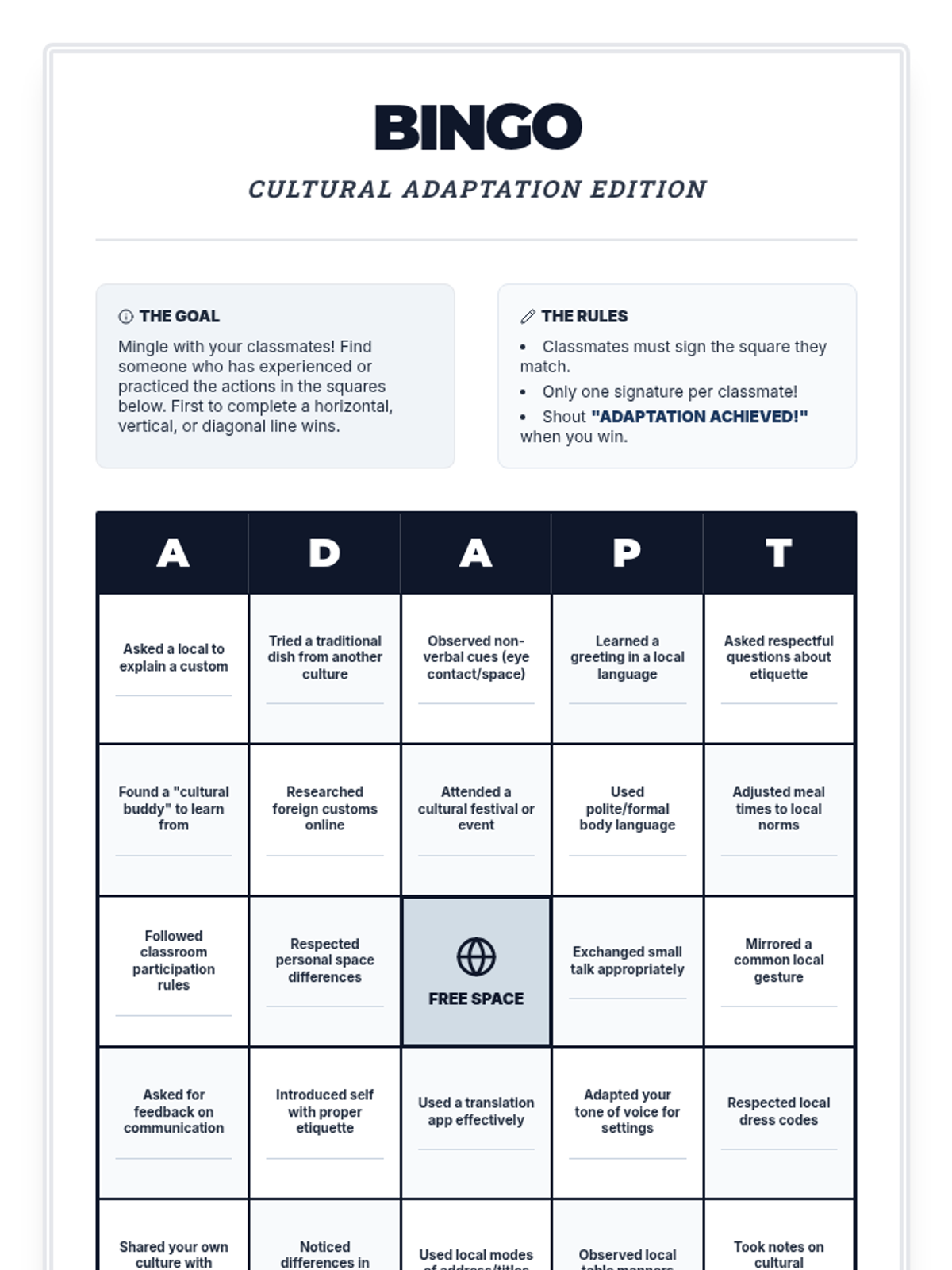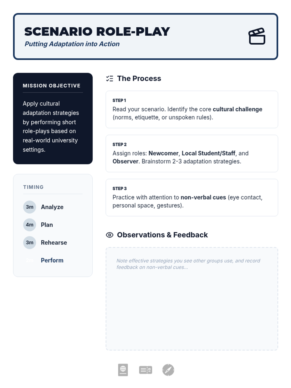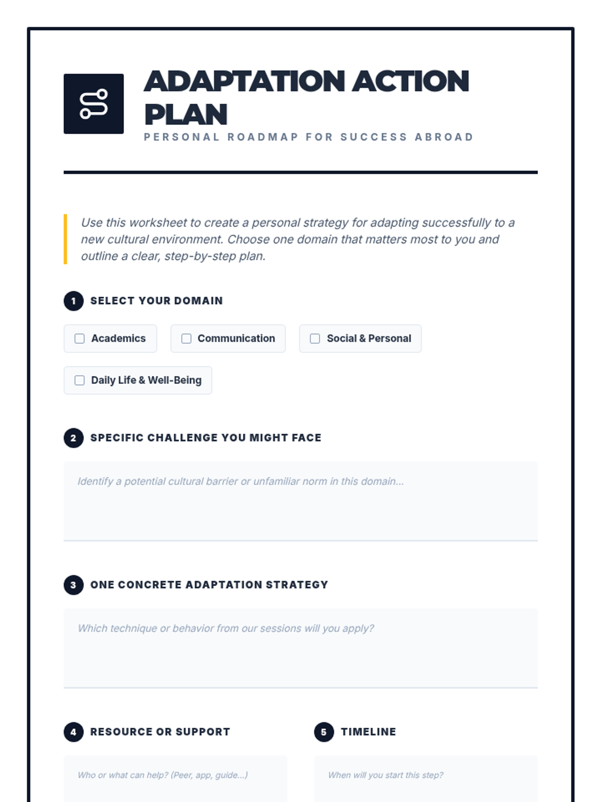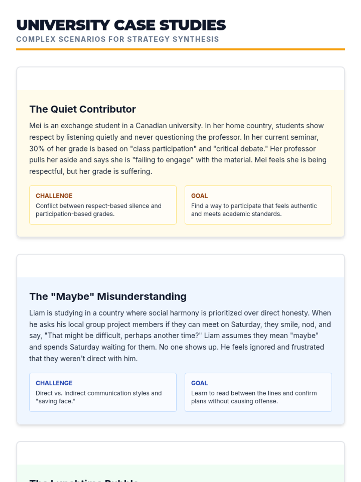A 2-session sequence designed for 12th graders preparing for international studies, focusing on cultural awareness, adaptation strategies, and building resilience in multicultural university environments.