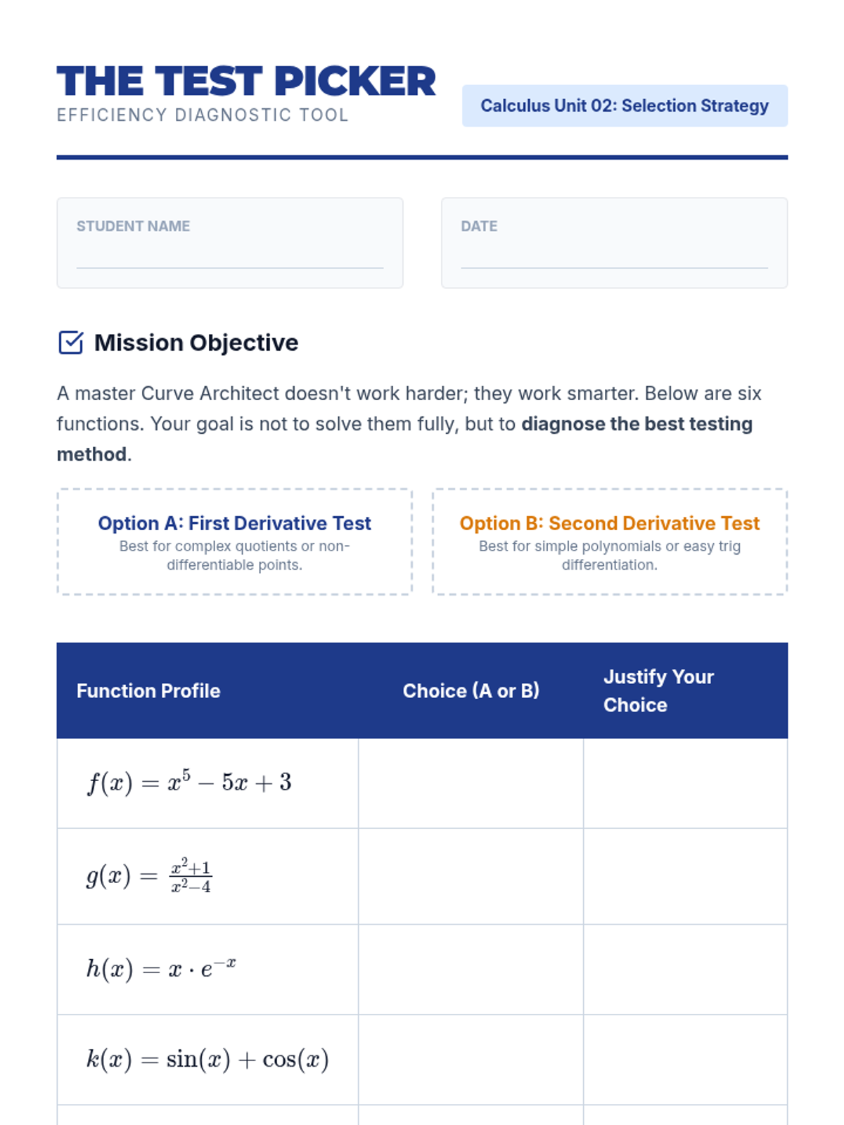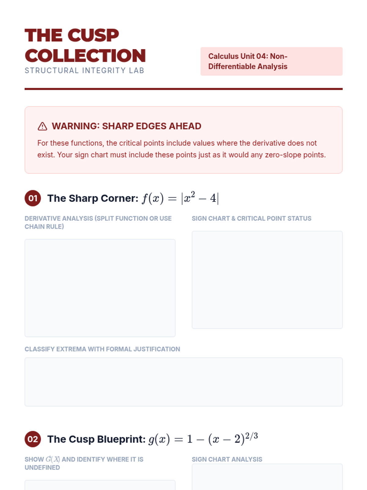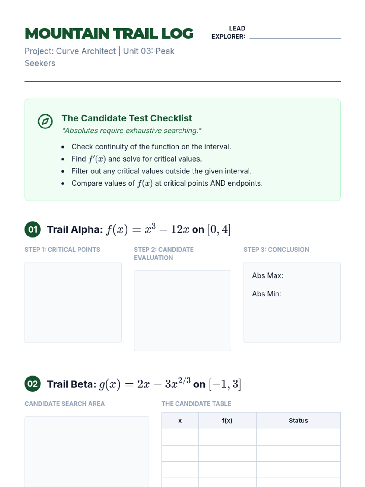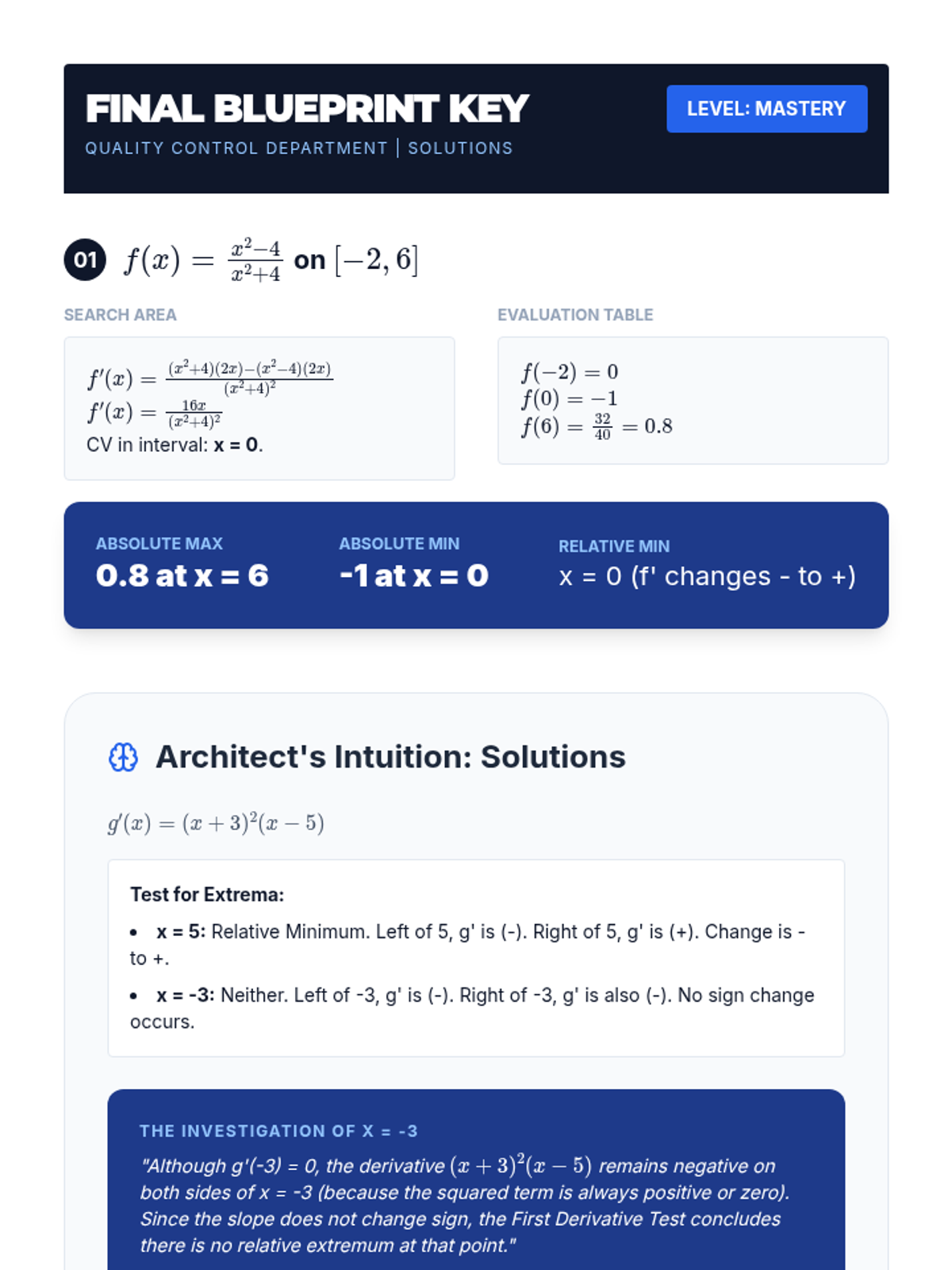 This sequence guides 11th-grade students through the formal application of derivative tests to analyze function behavior. Students will master the First and Second Derivative Tests, the Extreme Value Theorem, and the analysis of non-differentiable points to find and justify relative and absolute extrema.
