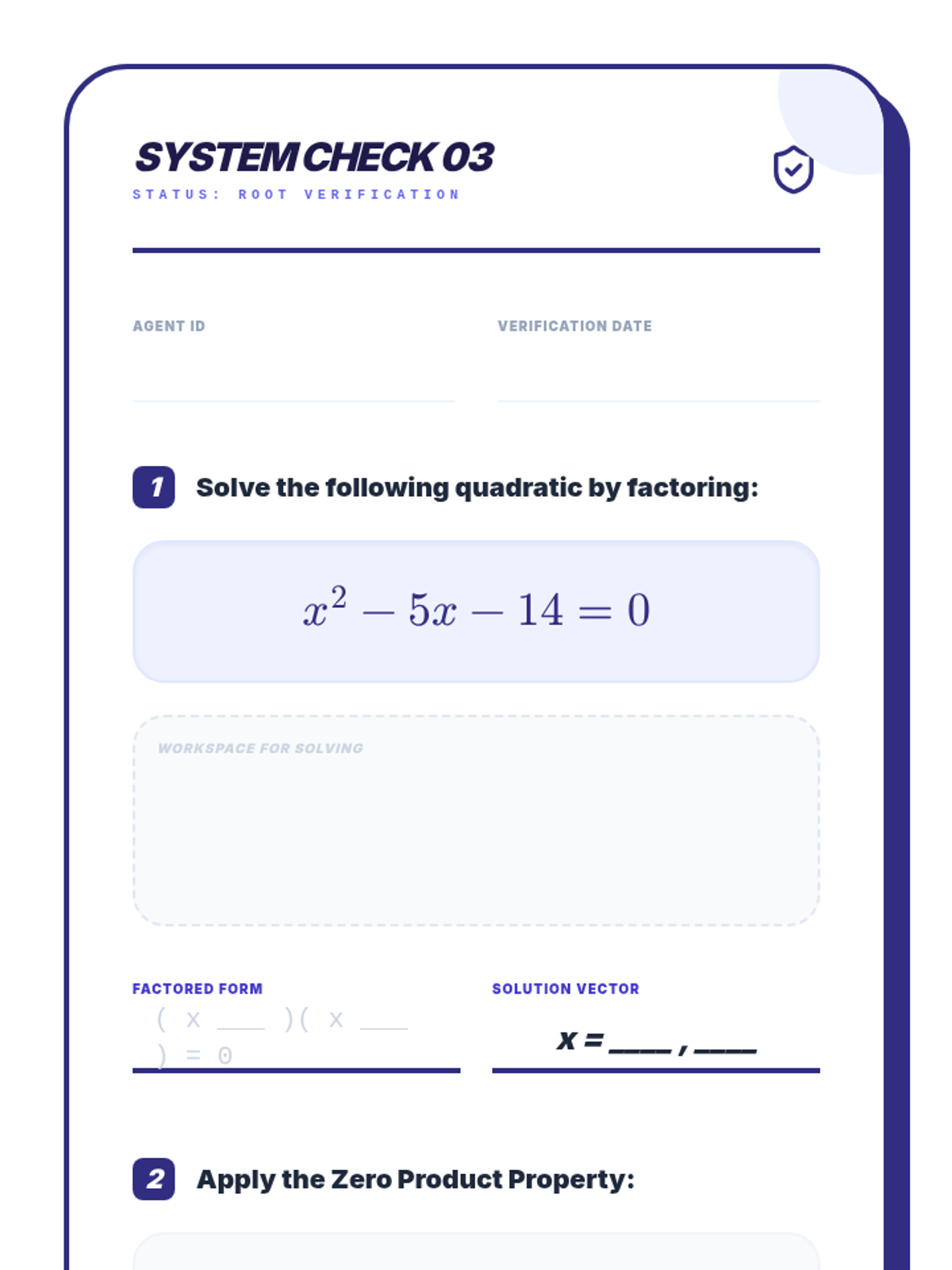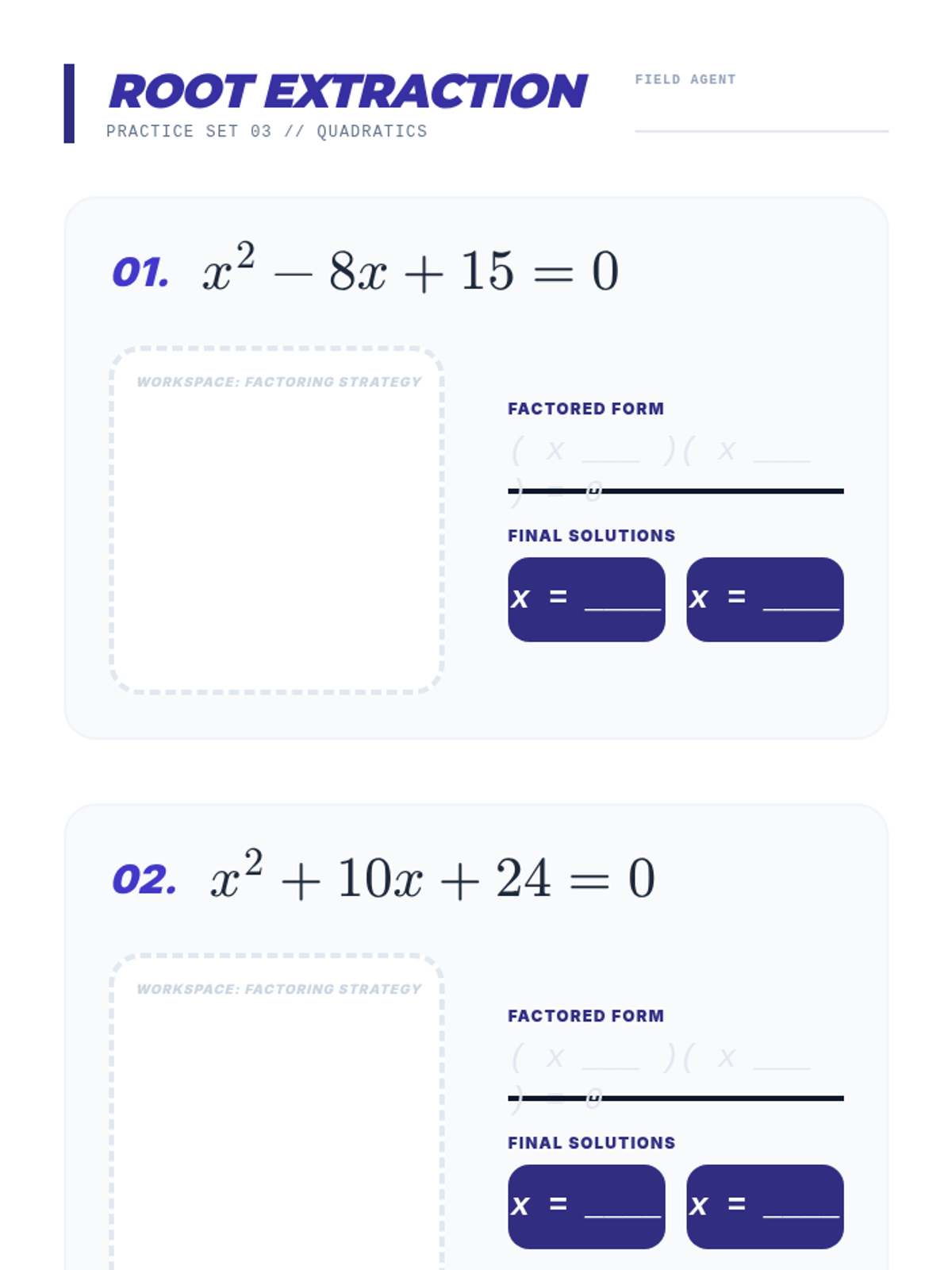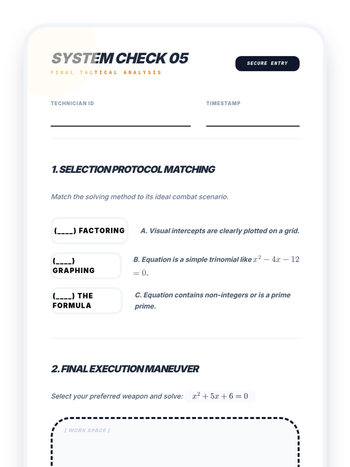 A 5-day Algebra 2 Credit Recovery unit focused on quadratic equations, covering parent functions, key features of graphs, factoring, and the quadratic formula. Designed for 40-minute class periods with a blueprint-inspired visual theme.