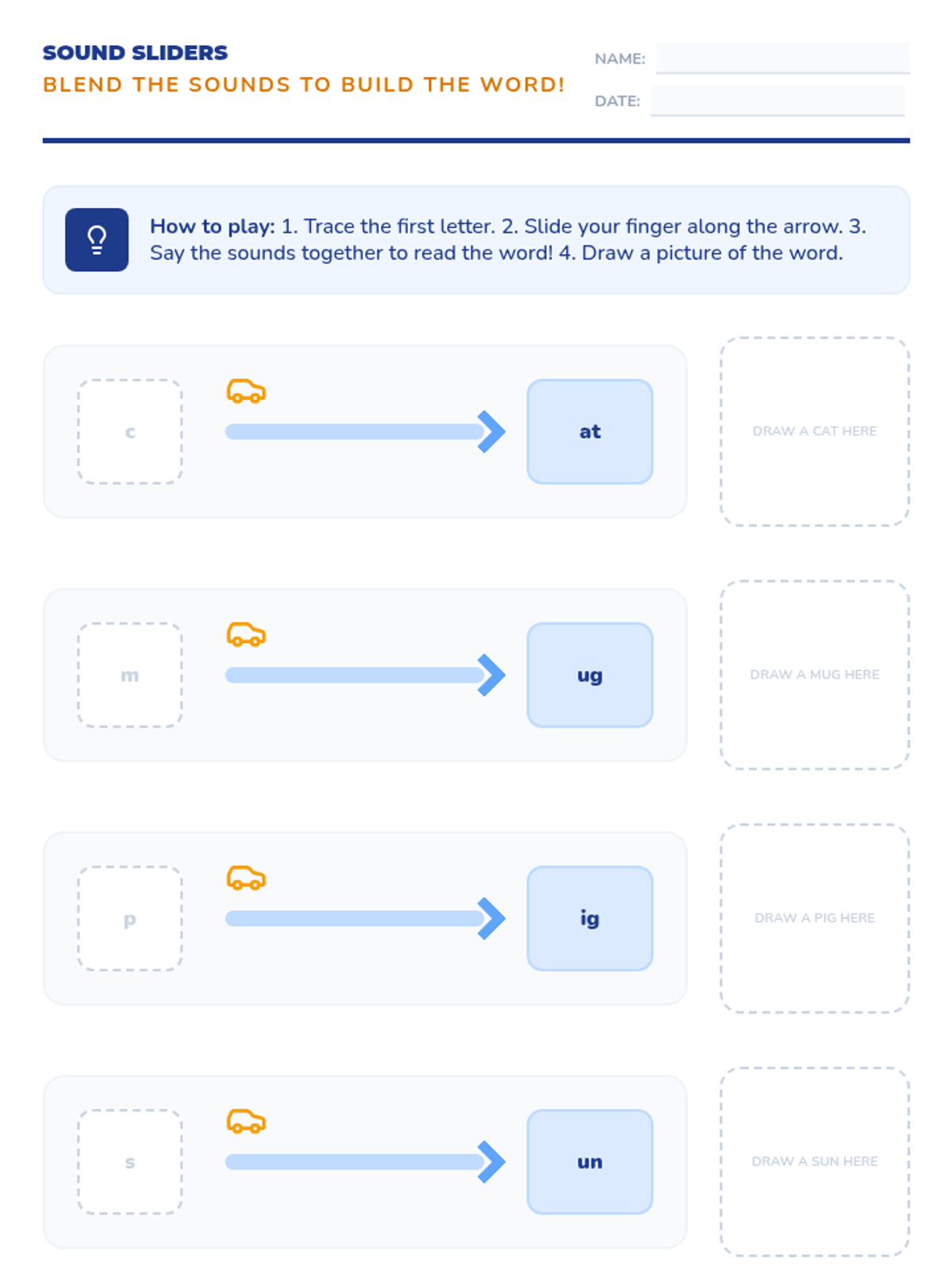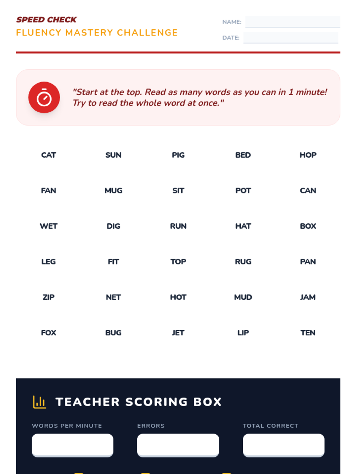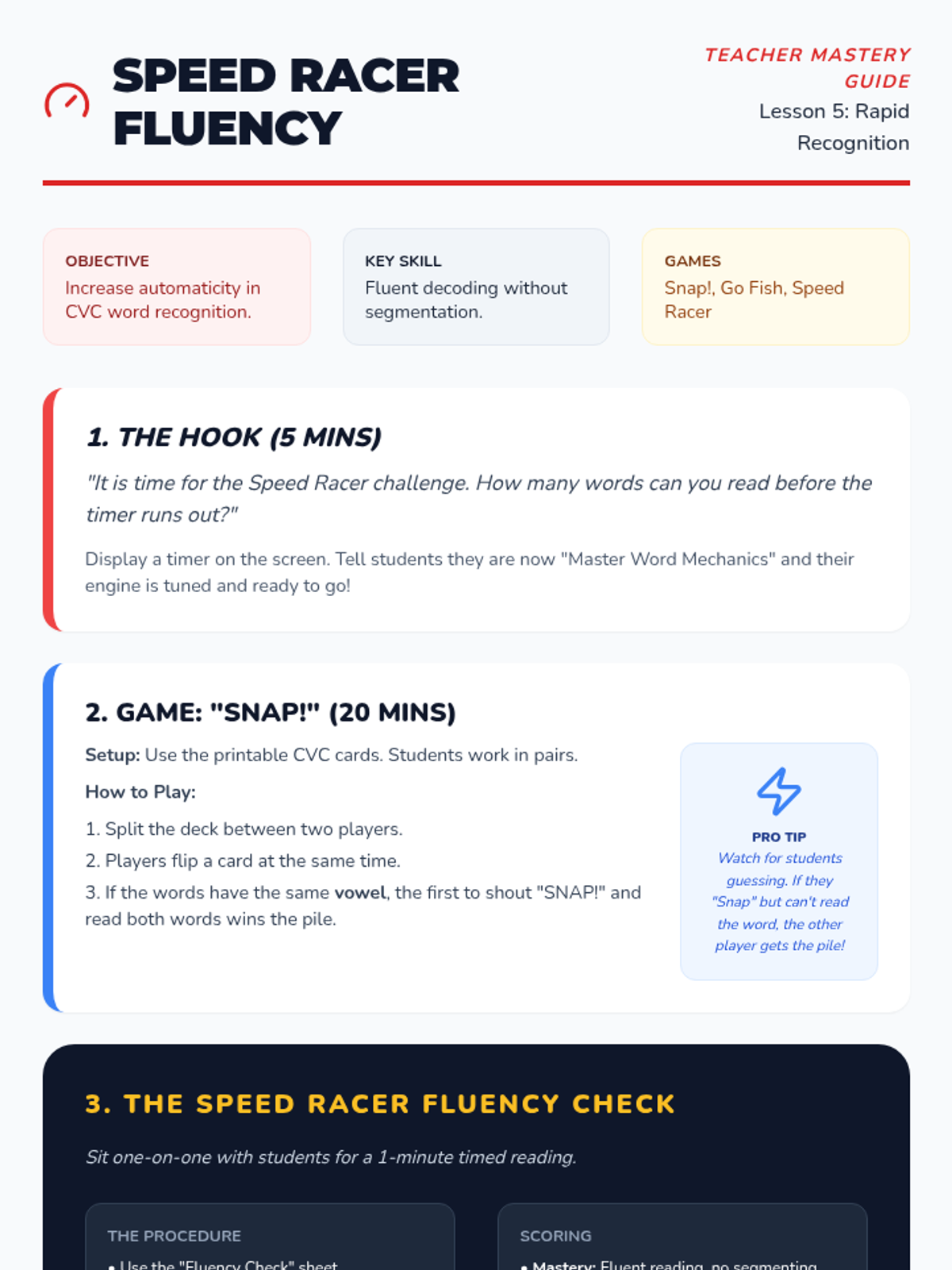 A game-based sequence designed to help 1st-grade students master CVC word construction. Through physical movement, construction-themed activities, and playful 'alien' sorting, students learn to blend onsets and rimes, manipulate sounds, and achieve rapid recognition fluency.