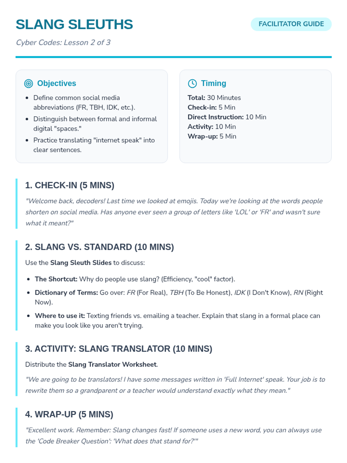 A three-part group counseling series designed for middle school students with autism, focusing on decoding digital communication through emojis, slang, and online safety protocols.