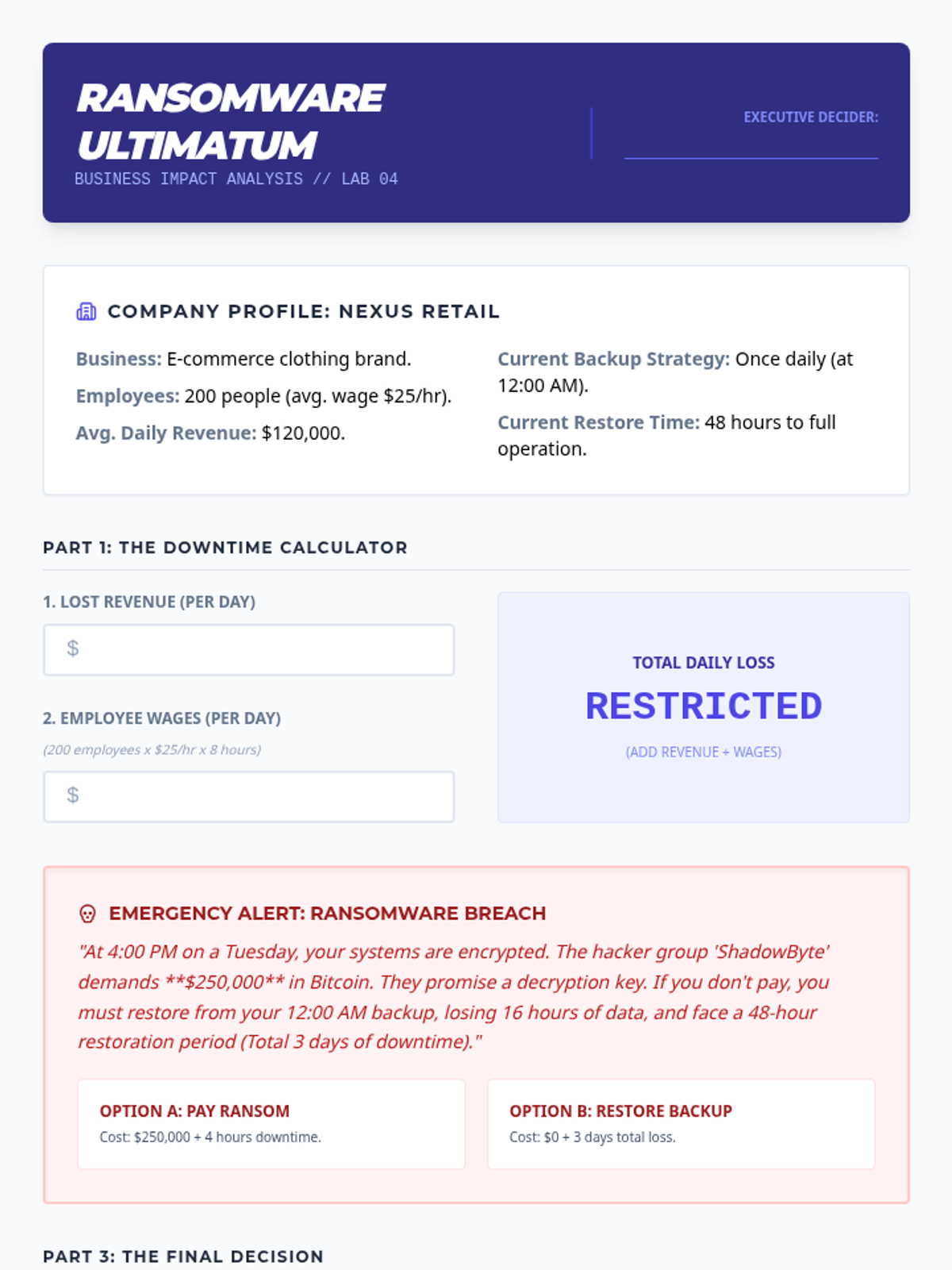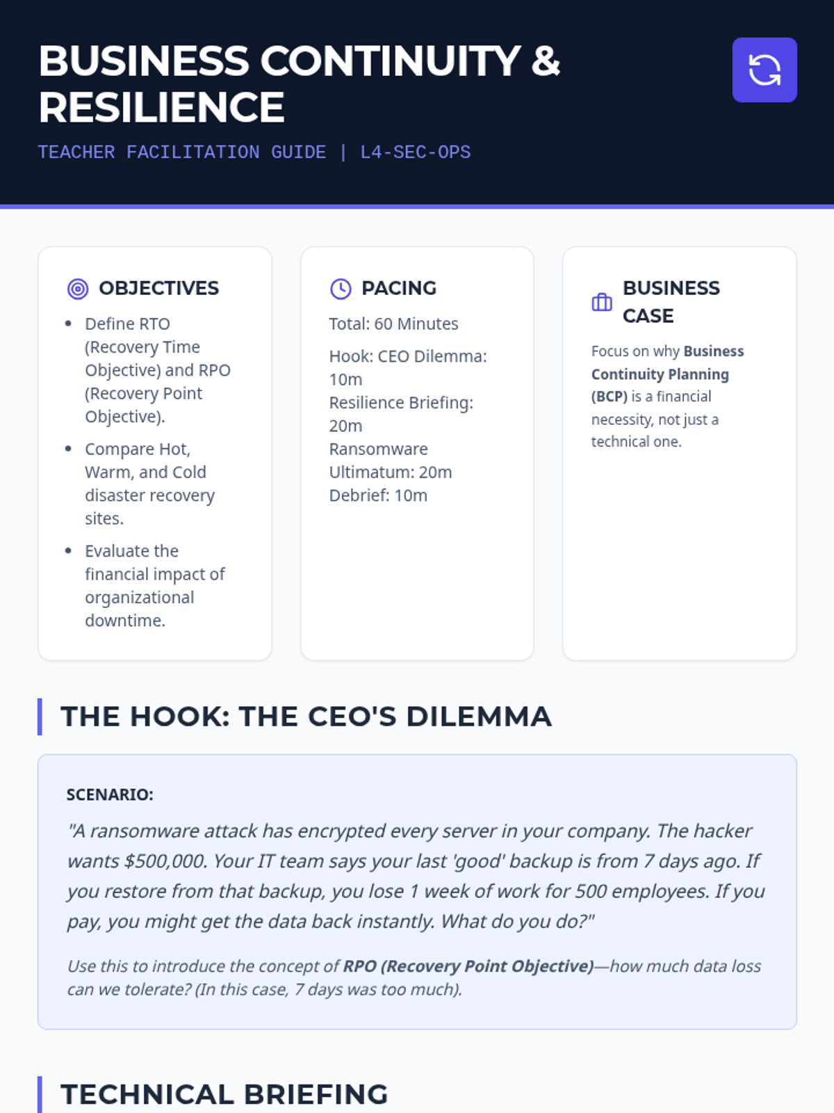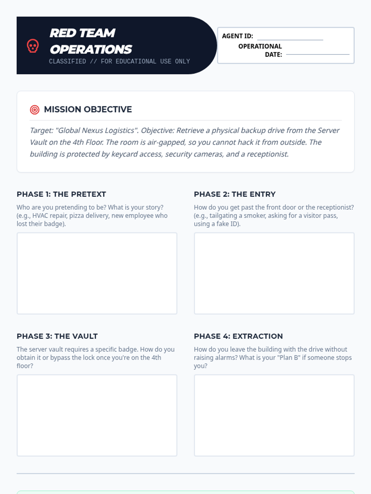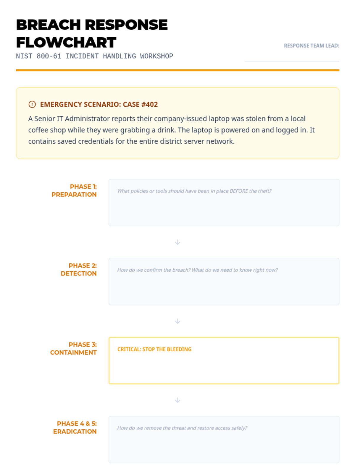 A comprehensive 12th-grade cybersecurity unit focused on the human element, social engineering tactics, and organizational resilience through incident response and disaster recovery planning. Students move from identifying personal phishing threats to managing a corporate-scale cyber crisis in a tabletop simulation.