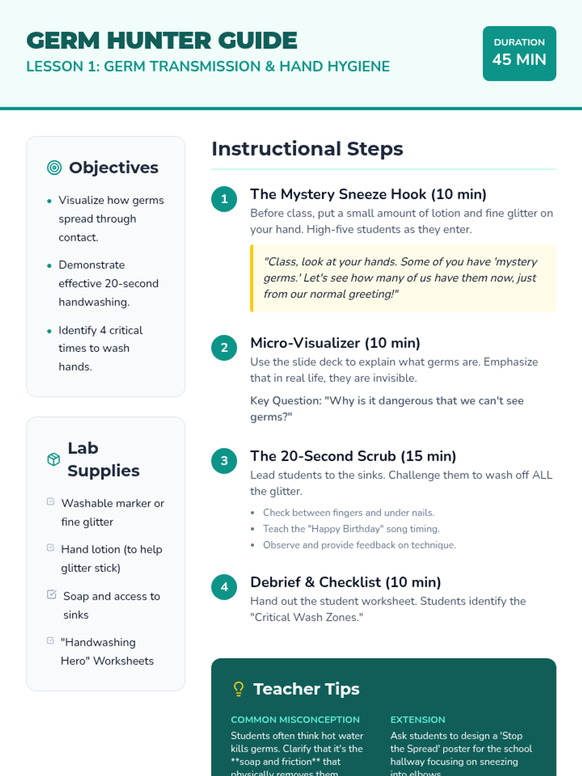 A comprehensive unit designed for elementary students to explore the pillars of personal health, focusing on hygiene, nutrition, and mental well-being through an engaging 'Secret Agent' theme. Students become Health Agents on a mission to protect their bodies and minds.