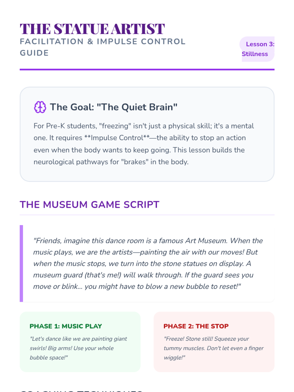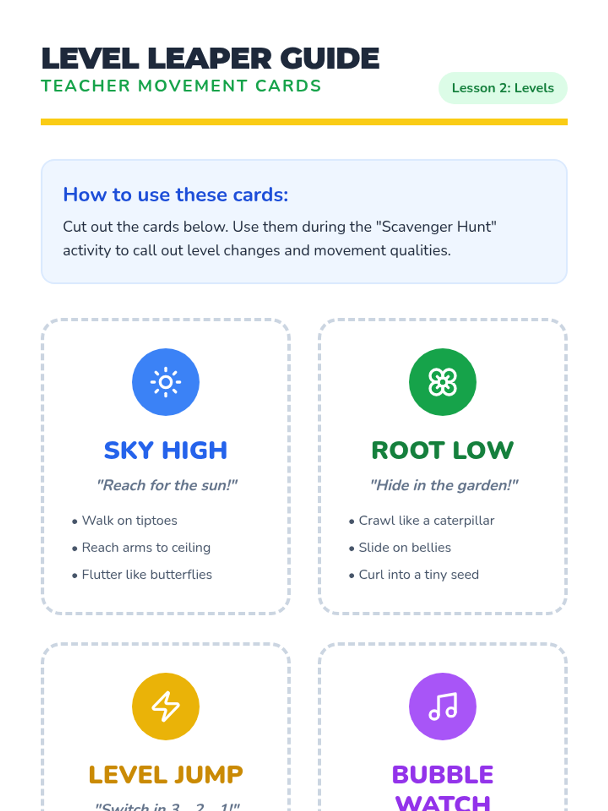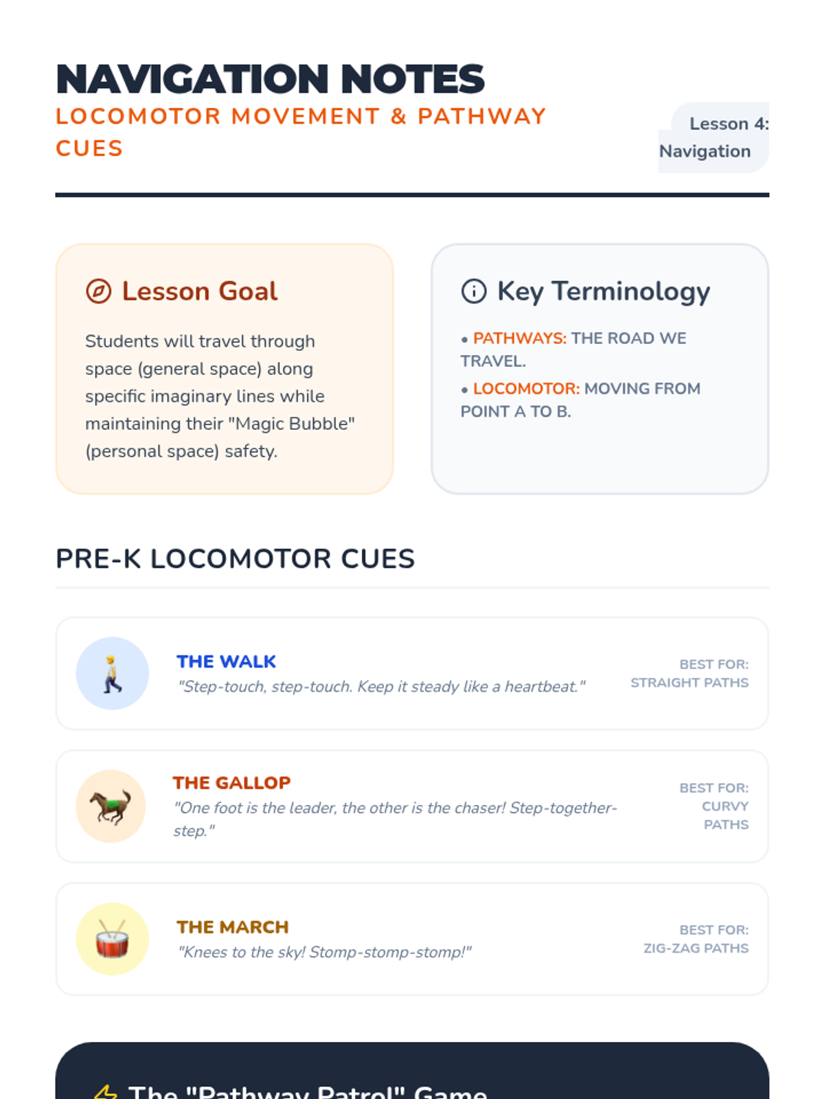A whimsical introduction to spatial awareness and body control for Pre-K dancers, using the 'personal bubble' concept to teach safety, levels, pathways, and the art of the freeze. Students progress from static space-making to dynamic obstacle course navigation.
