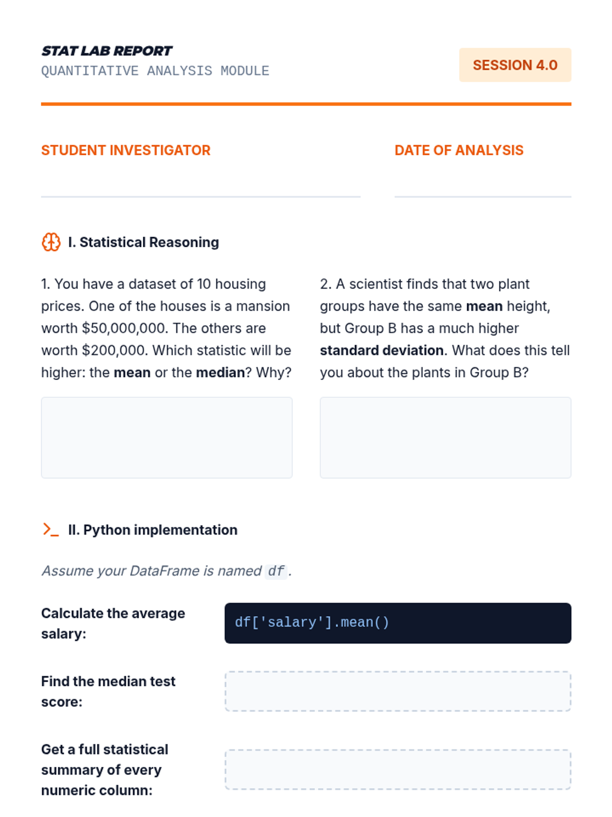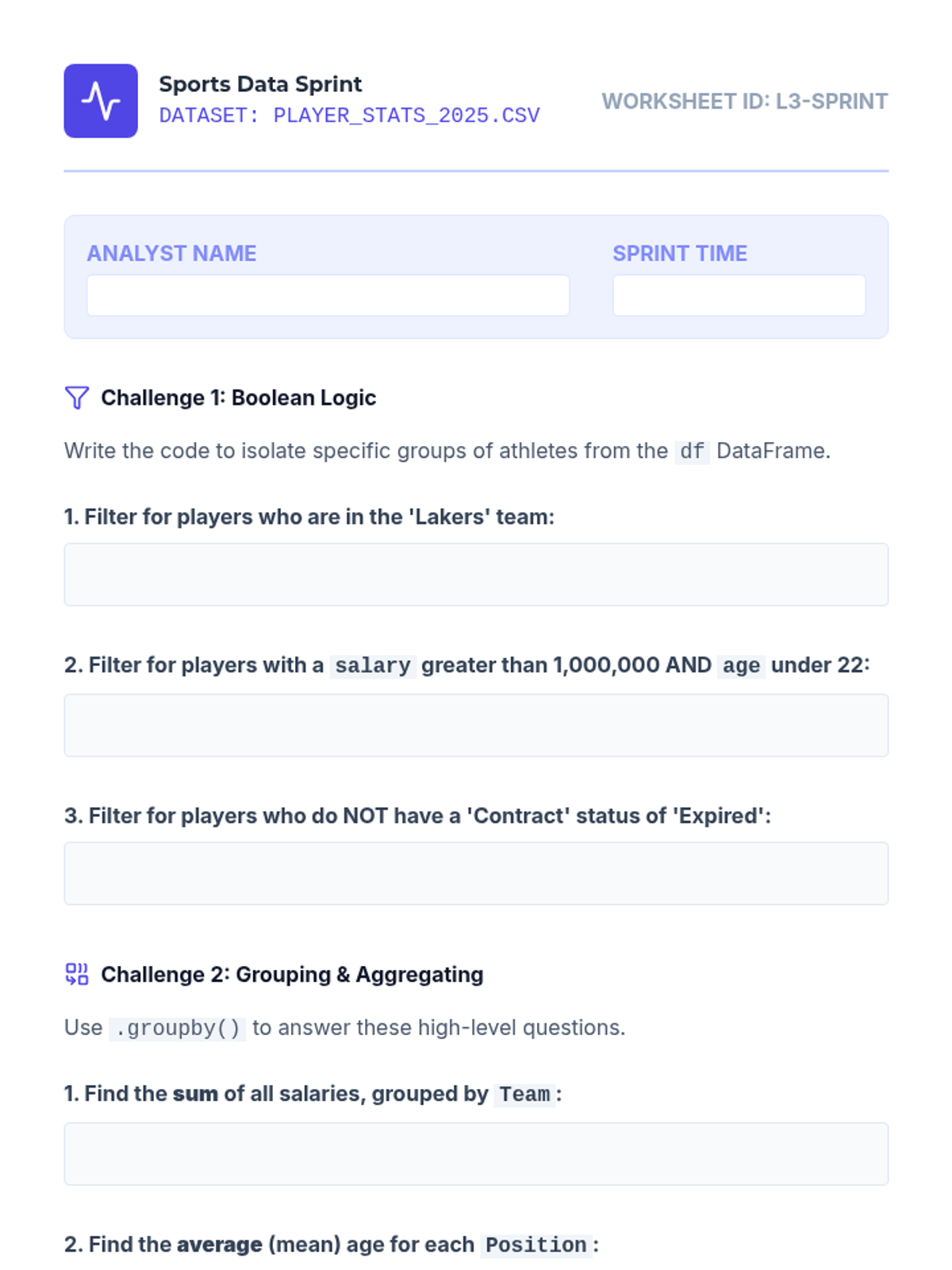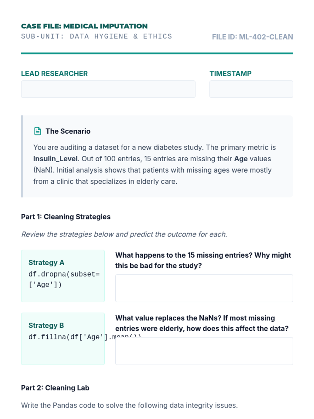 A comprehensive 10th-grade Computer Science sequence focused on data lifecycle management, from raw importation and cleaning to statistical summarization using Python/Pandas. Students progress from basic data frame navigation to solving complex 'data detective' scenarios by rectifying missing, corrupt, and inconsistent data.