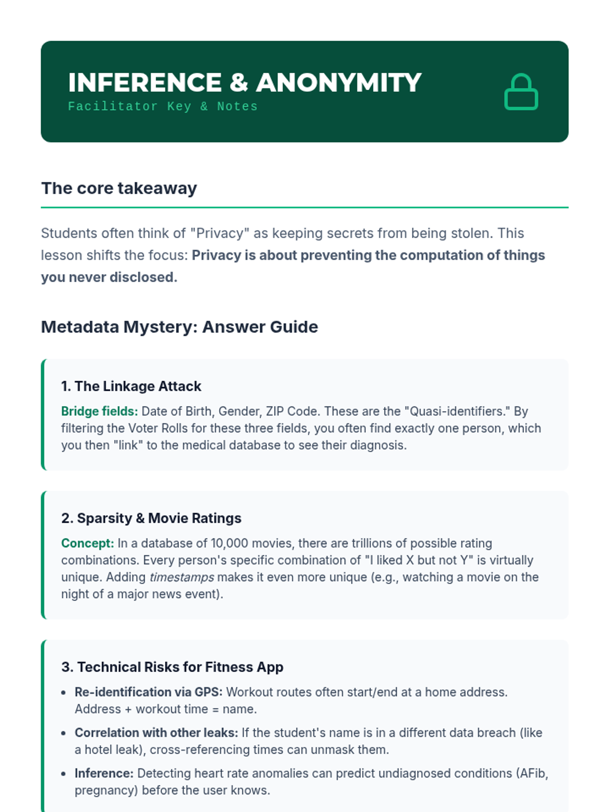 This sequence explores the ethical, economic, and technical dimensions of data privacy in the age of AI. Students investigate surveillance capitalism, the limits of anonymization, biometric risks, privacy-enhancing technologies, and the evolving landscape of global data regulation.