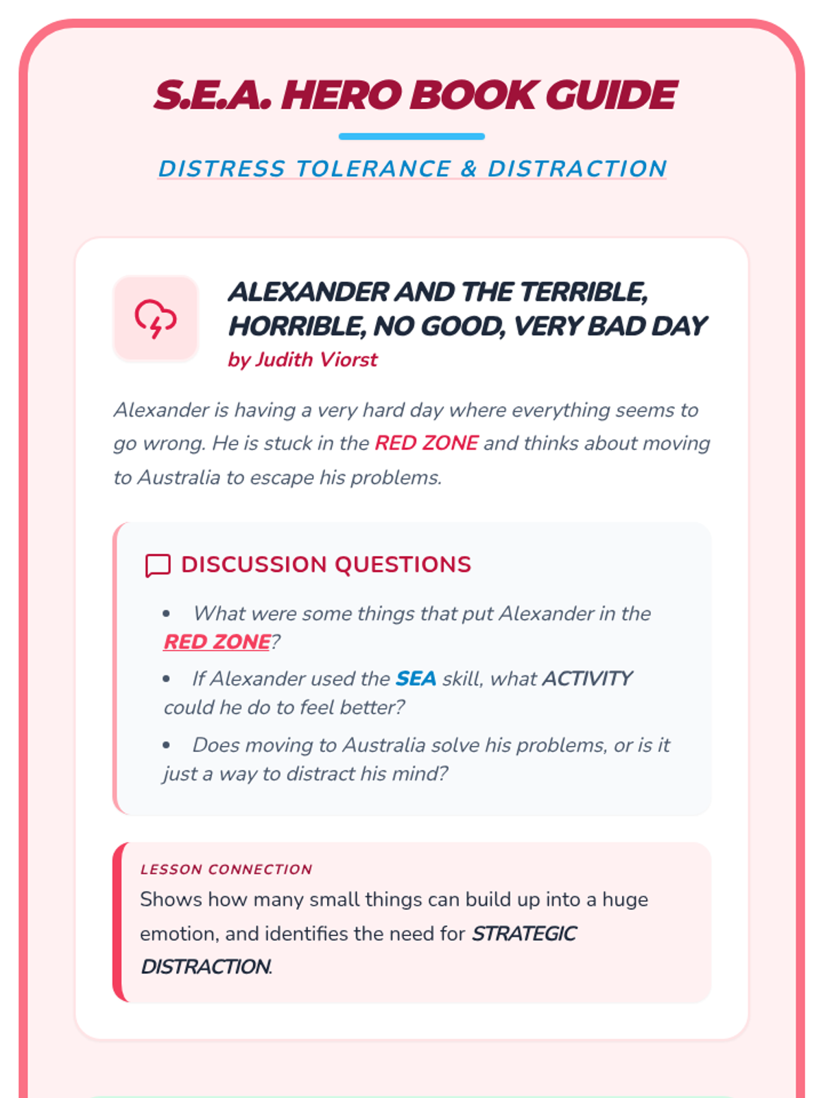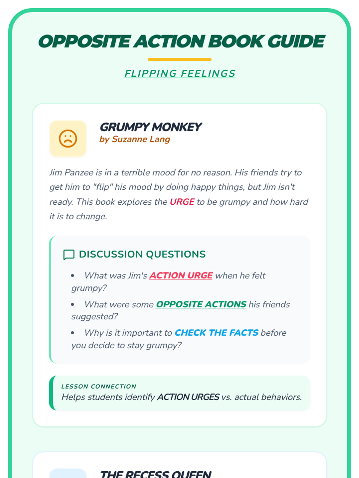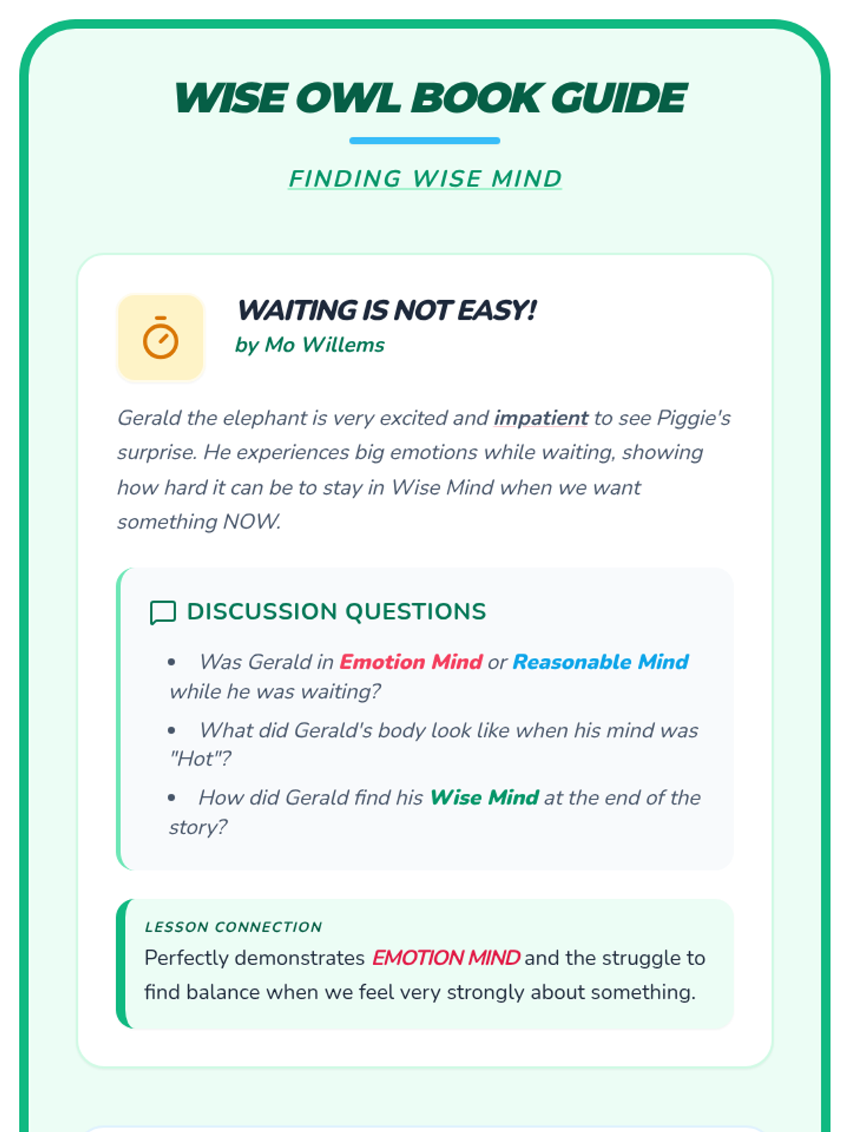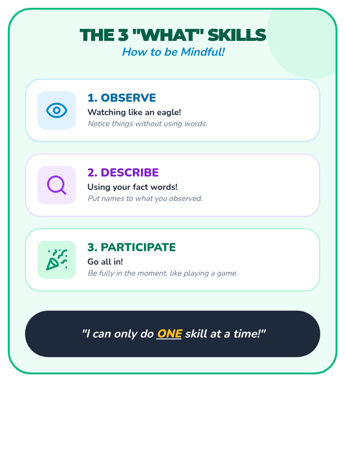 A comprehensive DBT skills training sequence for elementary schools, split into K-2 and 3-5 curricula. This program covers Mindfulness, Distress Tolerance, Emotion Regulation, and Interpersonal Effectiveness using age-appropriate activities and narratives.