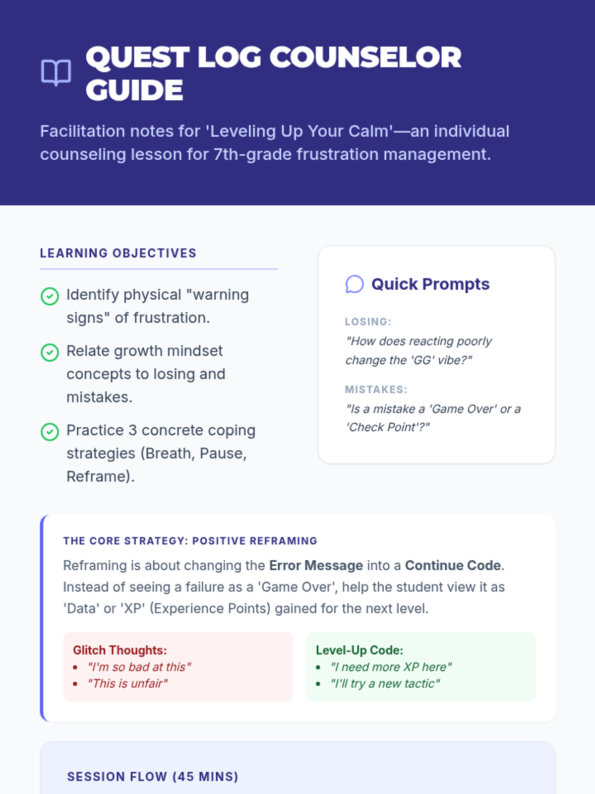 A comprehensive sequence designed to help middle school students master emotional regulation and coping strategies for common frustrations like losing, making mistakes, and disagreeing with others.