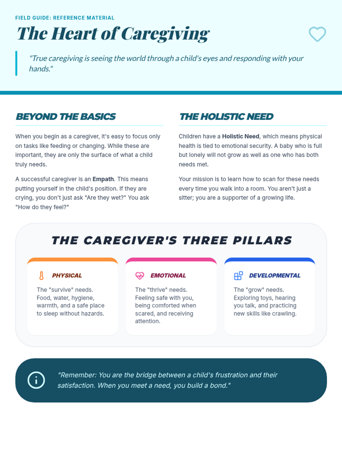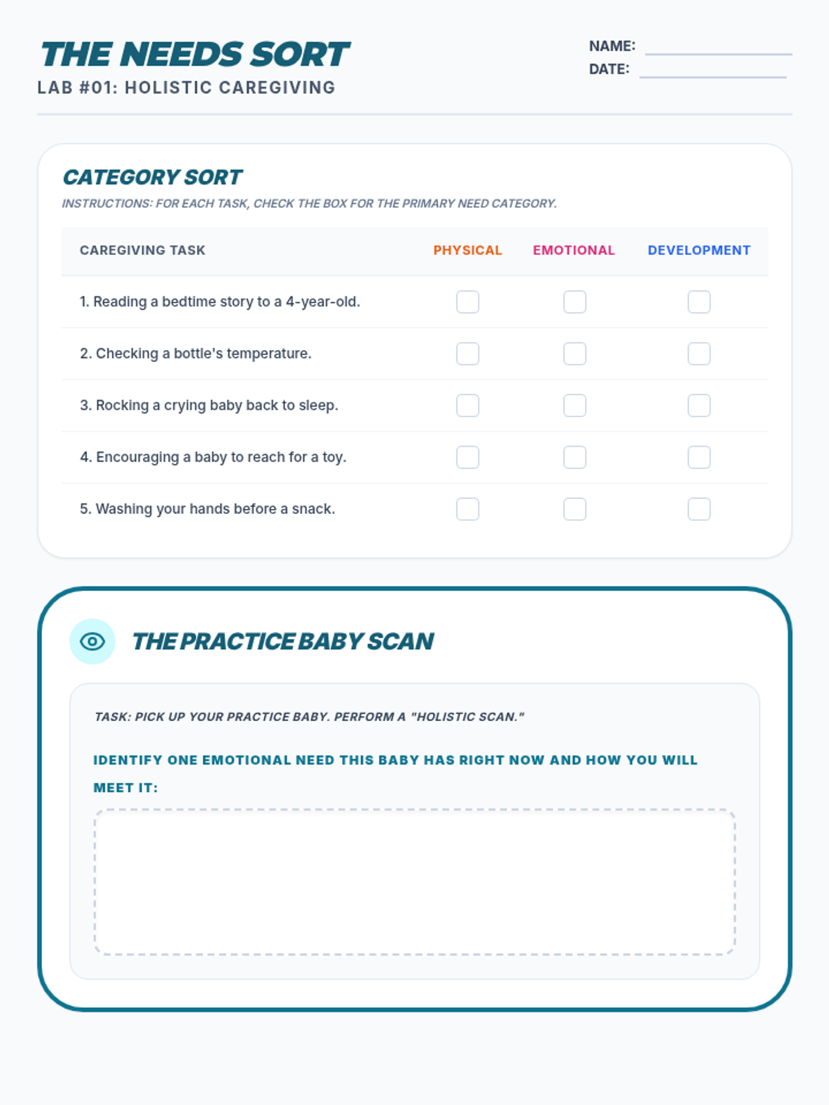 A practical, hands-on unit for 7th graders focusing on the essential skills and responsibilities of child care, from hygiene and feeding to safe handling and diapering.