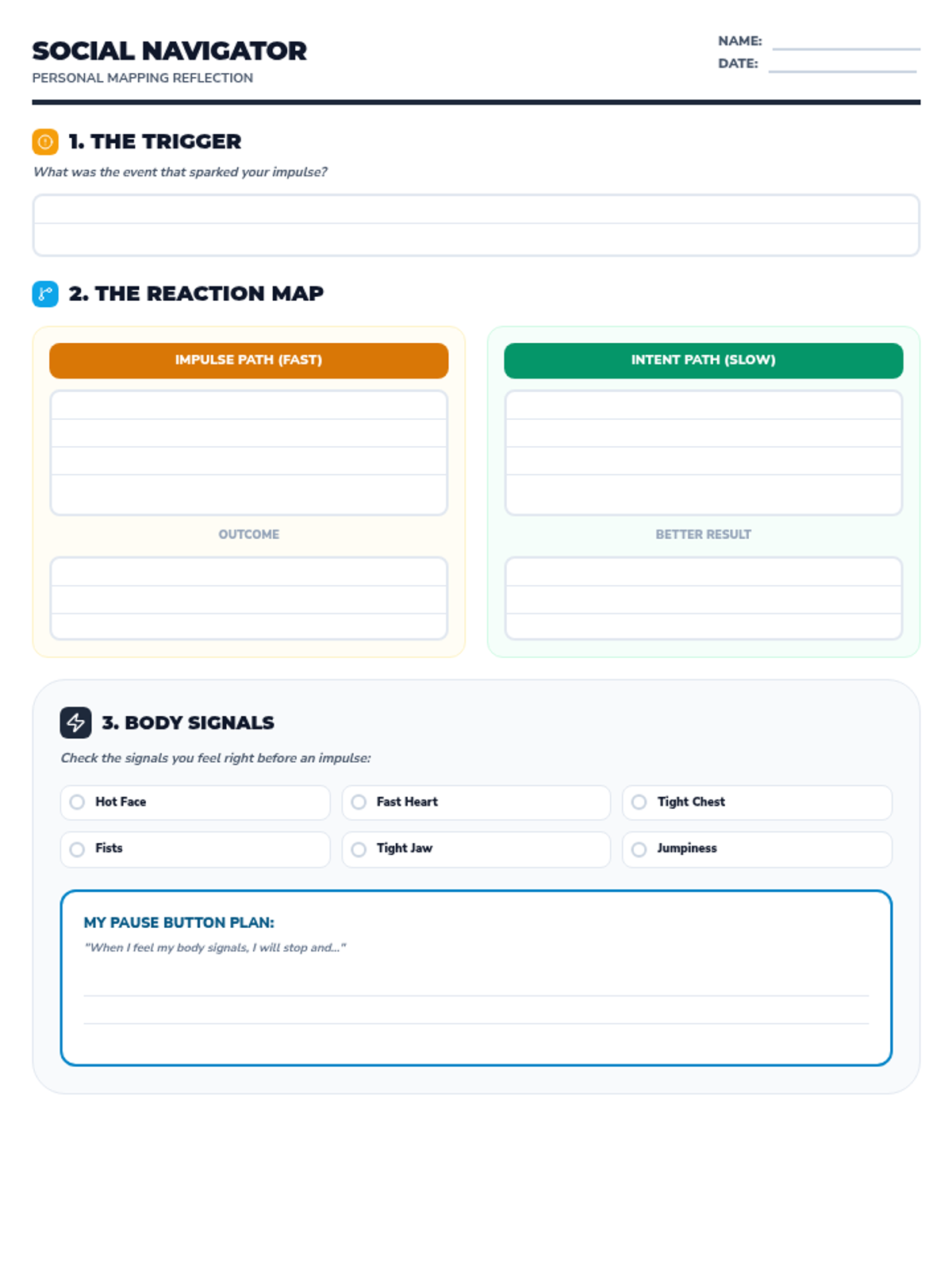 A social-emotional learning sequence focused on helping middle school students identify impulsive triggers and navigate social situations with intentionality through physical 'social mapping' activities.