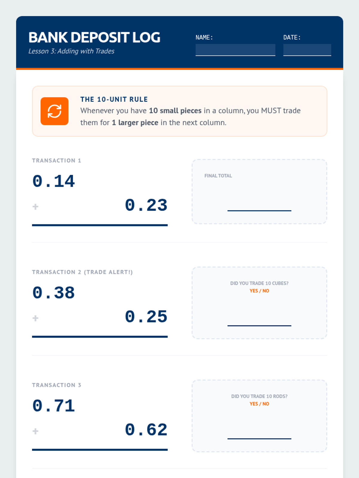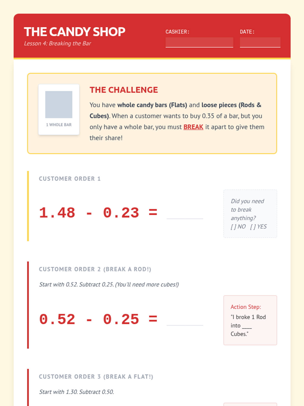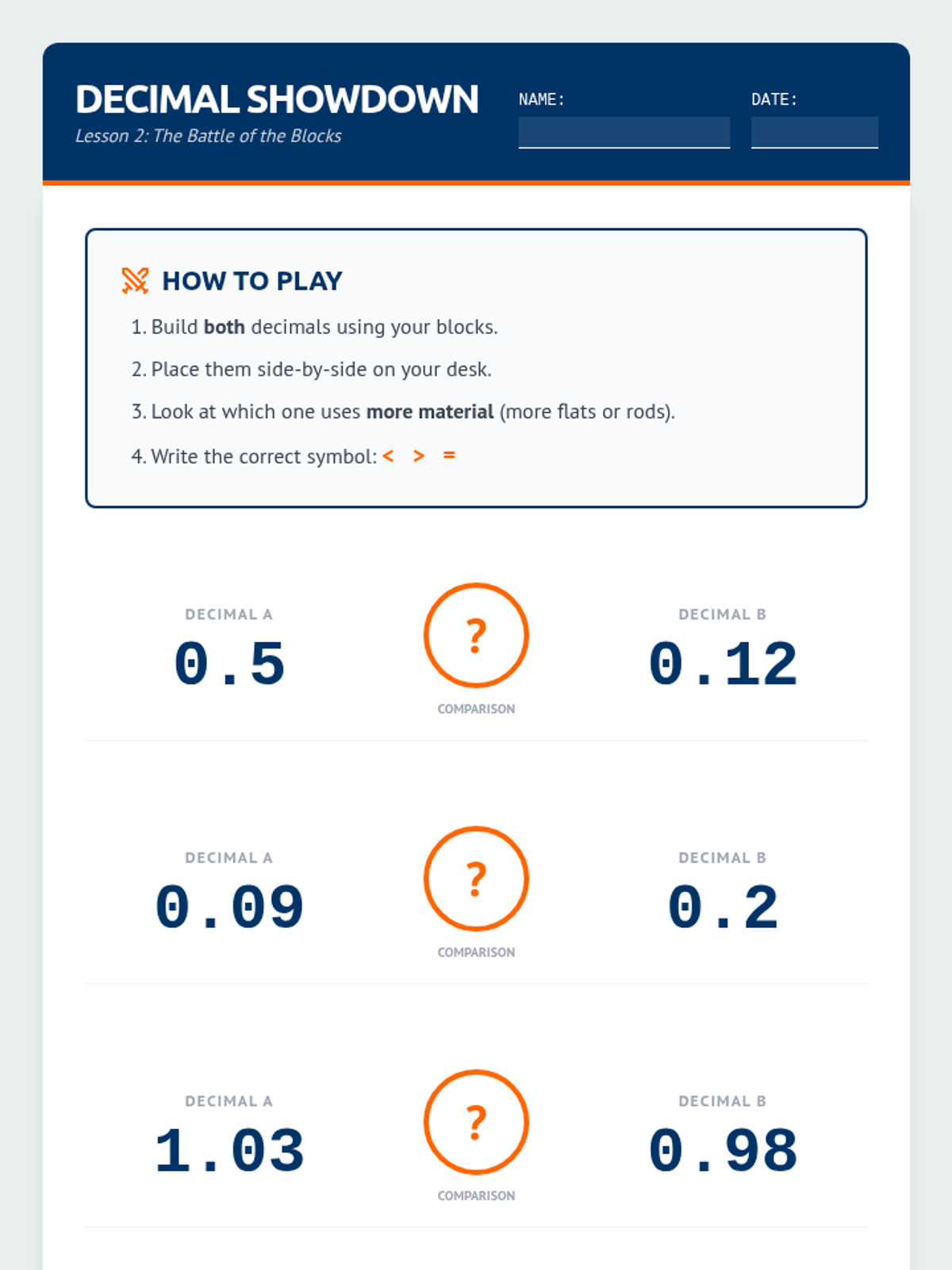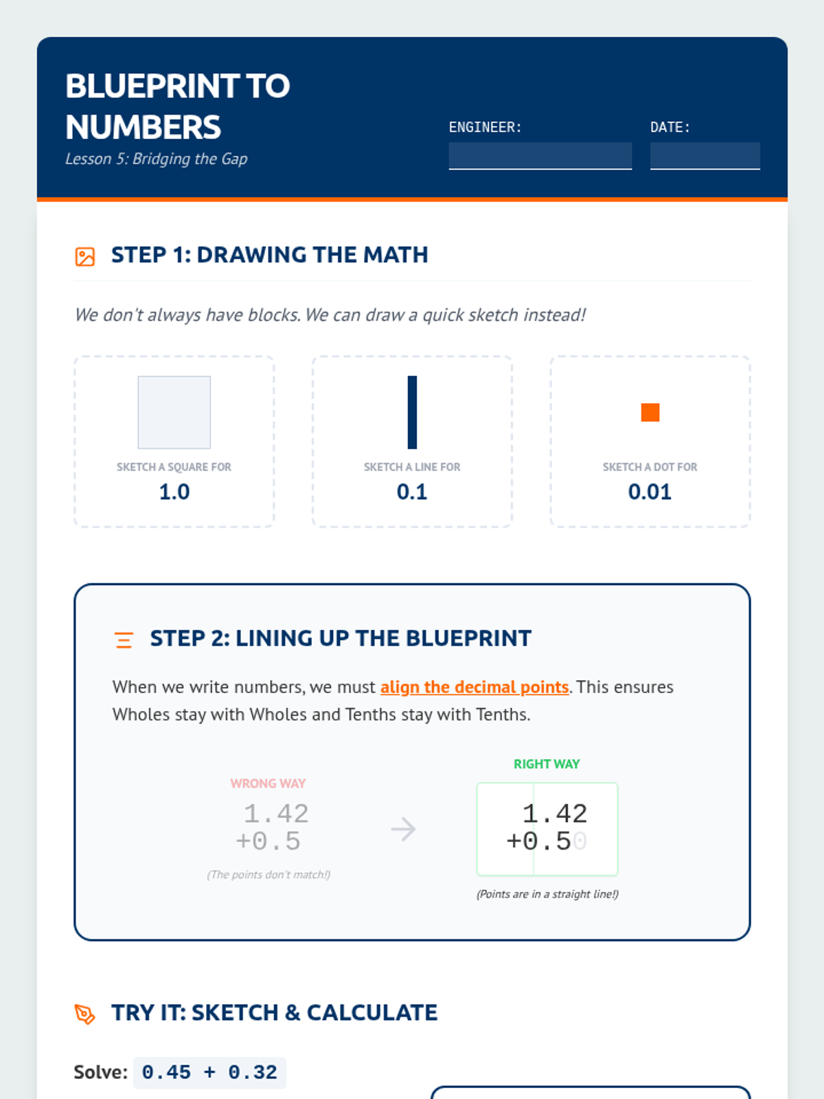 This sequence uses base-ten blocks to help 6th-grade students with learning disabilities visualize decimal place value and operations. By redefining the 'flat' as one whole, students tactilely explore tenths and hundredths to build a concrete foundation for addition and subtraction.