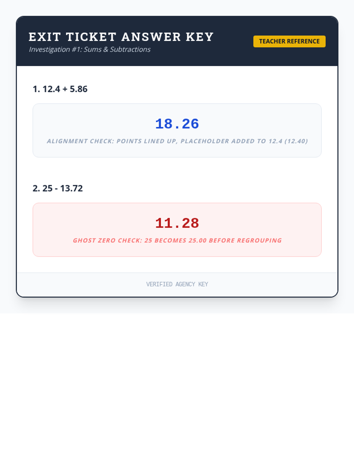 A two-week intensive sequence for fifth-grade students focusing on decimal addition and subtraction to the hundredths place. Utilizing blueprint and superhero themes, this sequence emphasizes place value alignment, regrouping, and progress monitoring to ensure mastery of decimal operations.