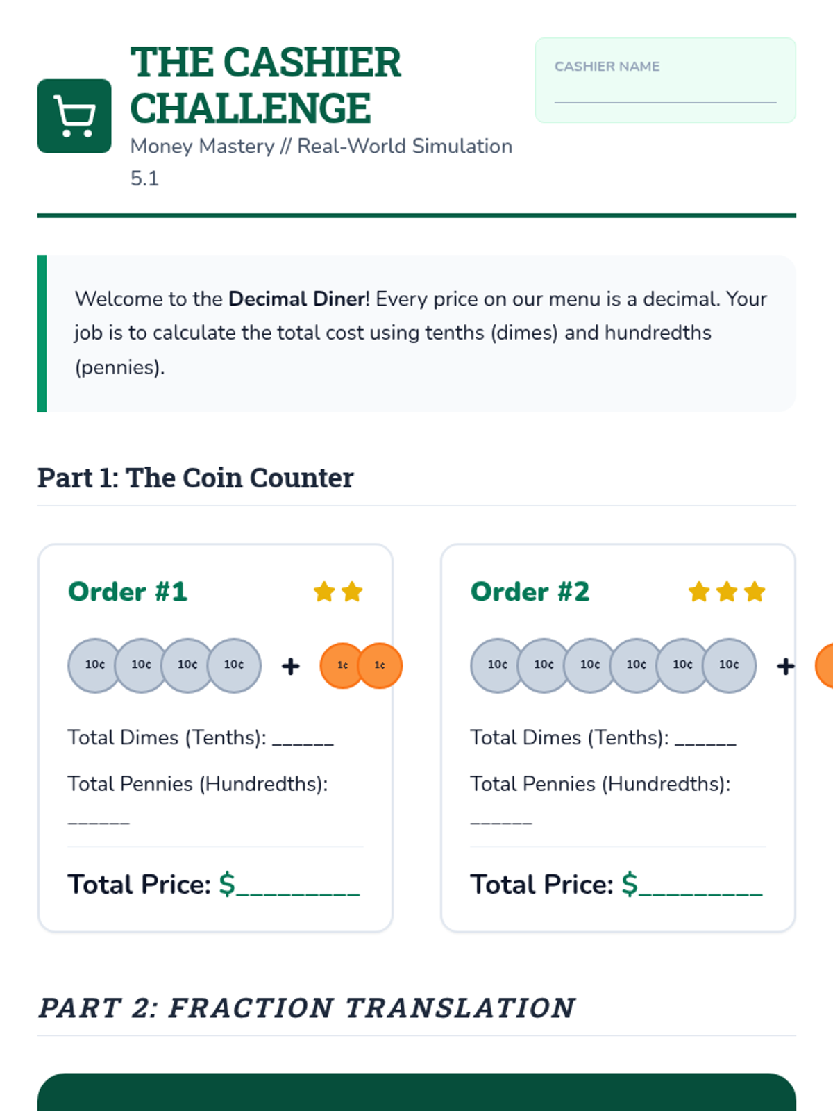 A vibrant, carnival-themed unit where students explore fractions through fair games and treats. Students will identify, represent, compare, and order fractions using visual models and hands-on activities.