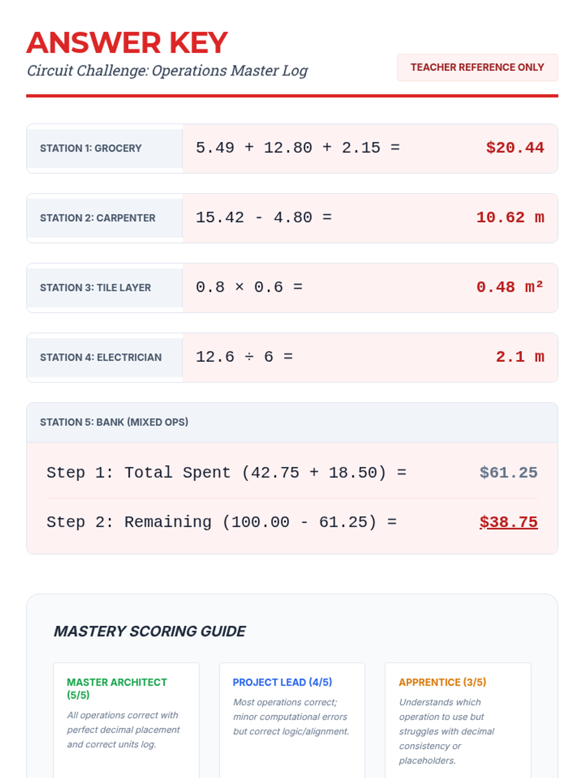 This sequence builds mastery in decimal operations, emphasizing the critical role of place value alignment. Students progress through adding and subtracting decimals with varying precision, then move to multiplying and dividing decimals using both estimation and algorithms. The sequence integrates money and measurement contexts to make the abstract numbers concrete. By the end, students will seamlessly handle operations involving tenths, hundredths, and thousandths.