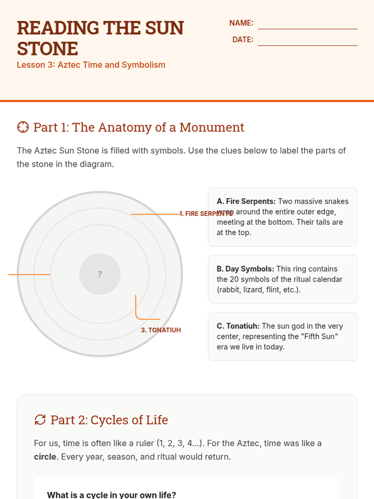 This sequence explores the intellectual achievements of the Maya, Aztec, and Inca civilizations, focusing on their unique writing, mathematical, and record-keeping systems. Students decode glyphs, calculate in base-20, interpret calendar stones, and knot quipus to understand how these societies communicated and organized their worlds.