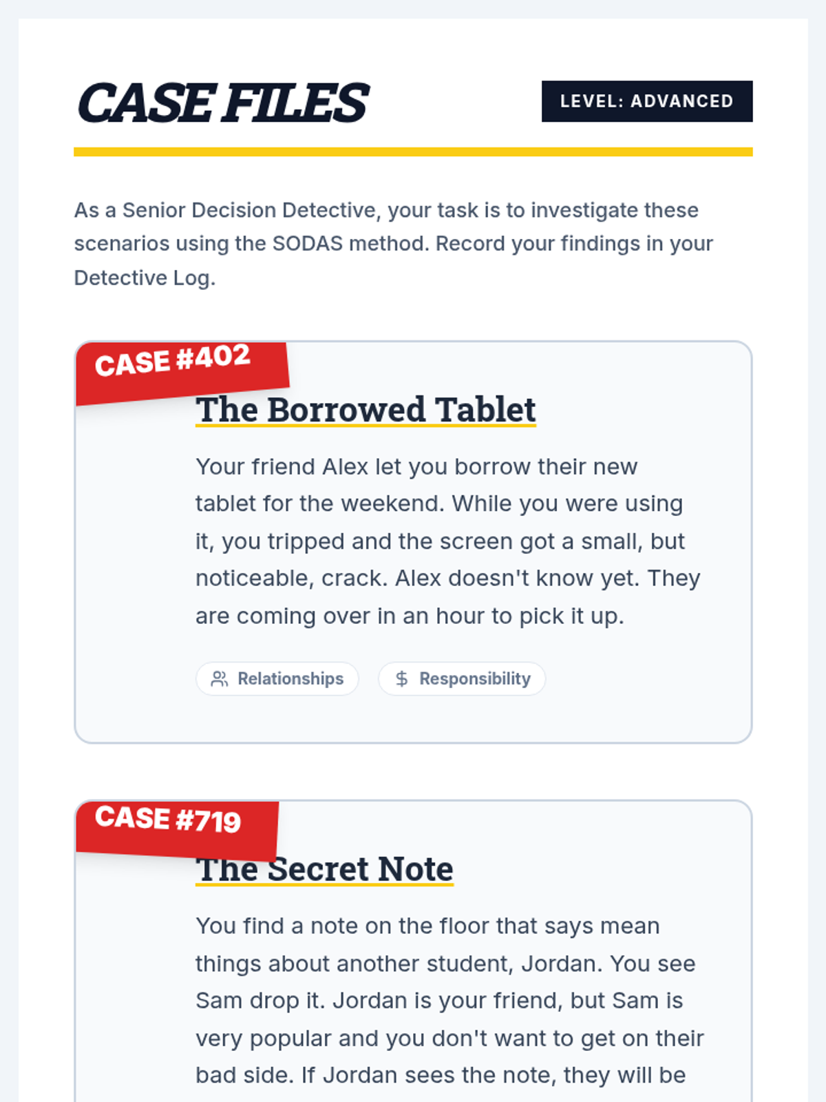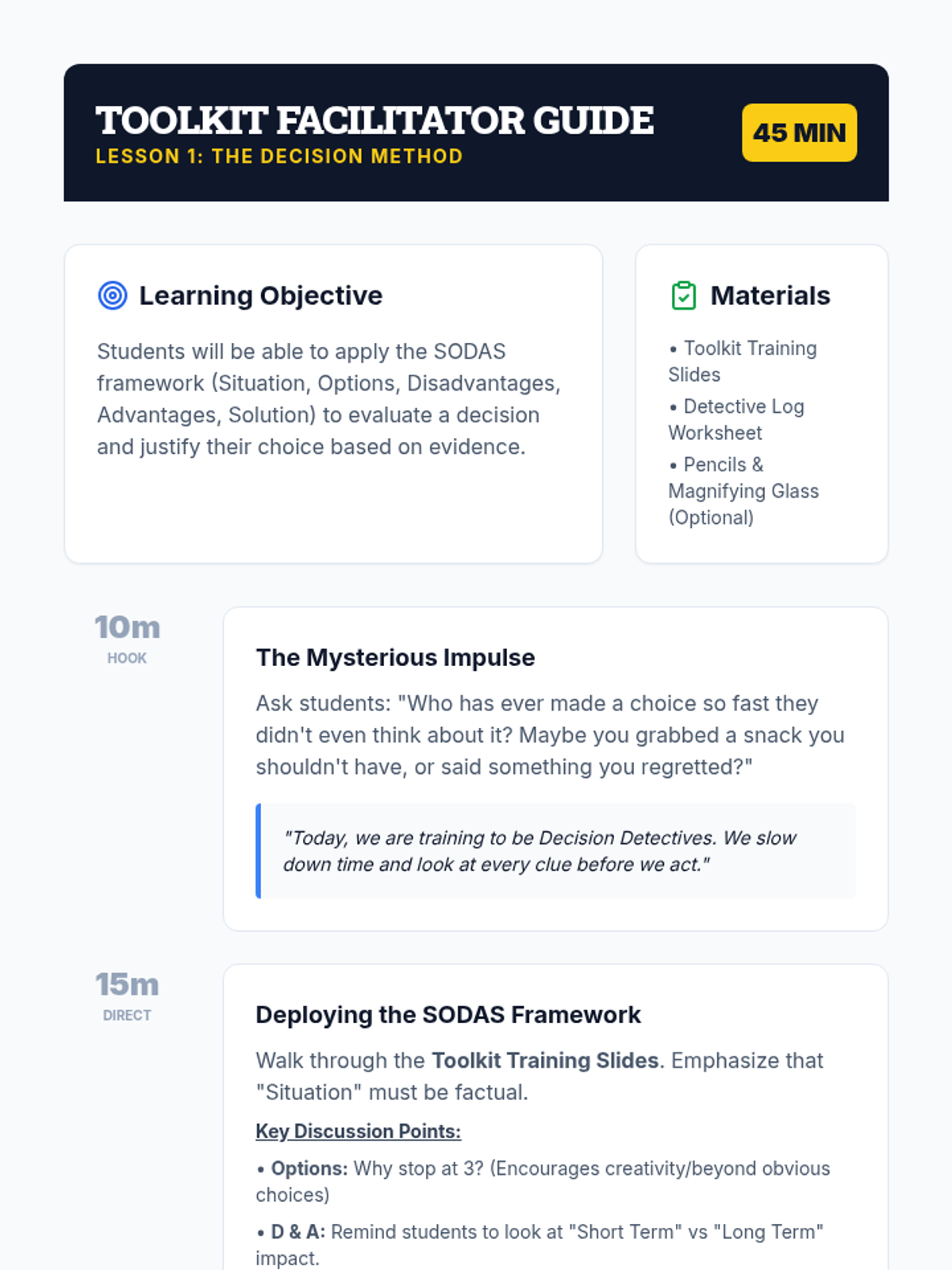 A two-part series designed to equip students with a robust framework for making thoughtful decisions and solving complex problems through the 'Decision Detective' lens.