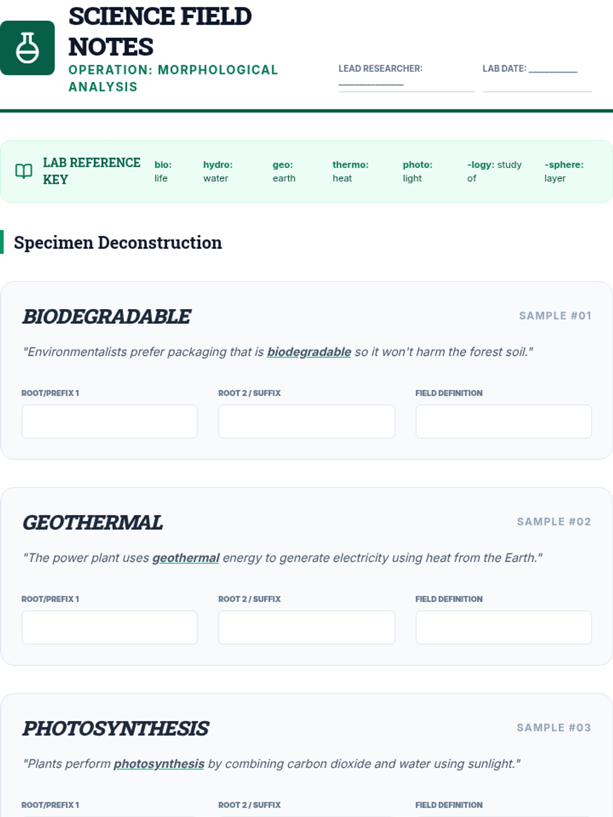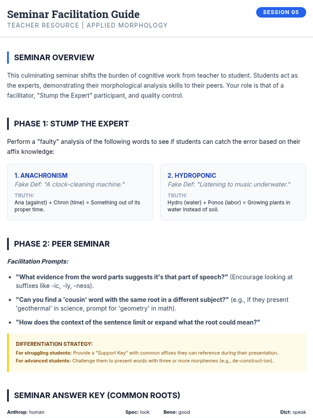 A 6th-grade vocabulary sequence where students act as linguistic detectives, using prefixes and suffixes to decode complex words in science, math, and social studies contexts. The unit emphasizes inquiry-based learning and morphological analysis as a tool for independent reading.