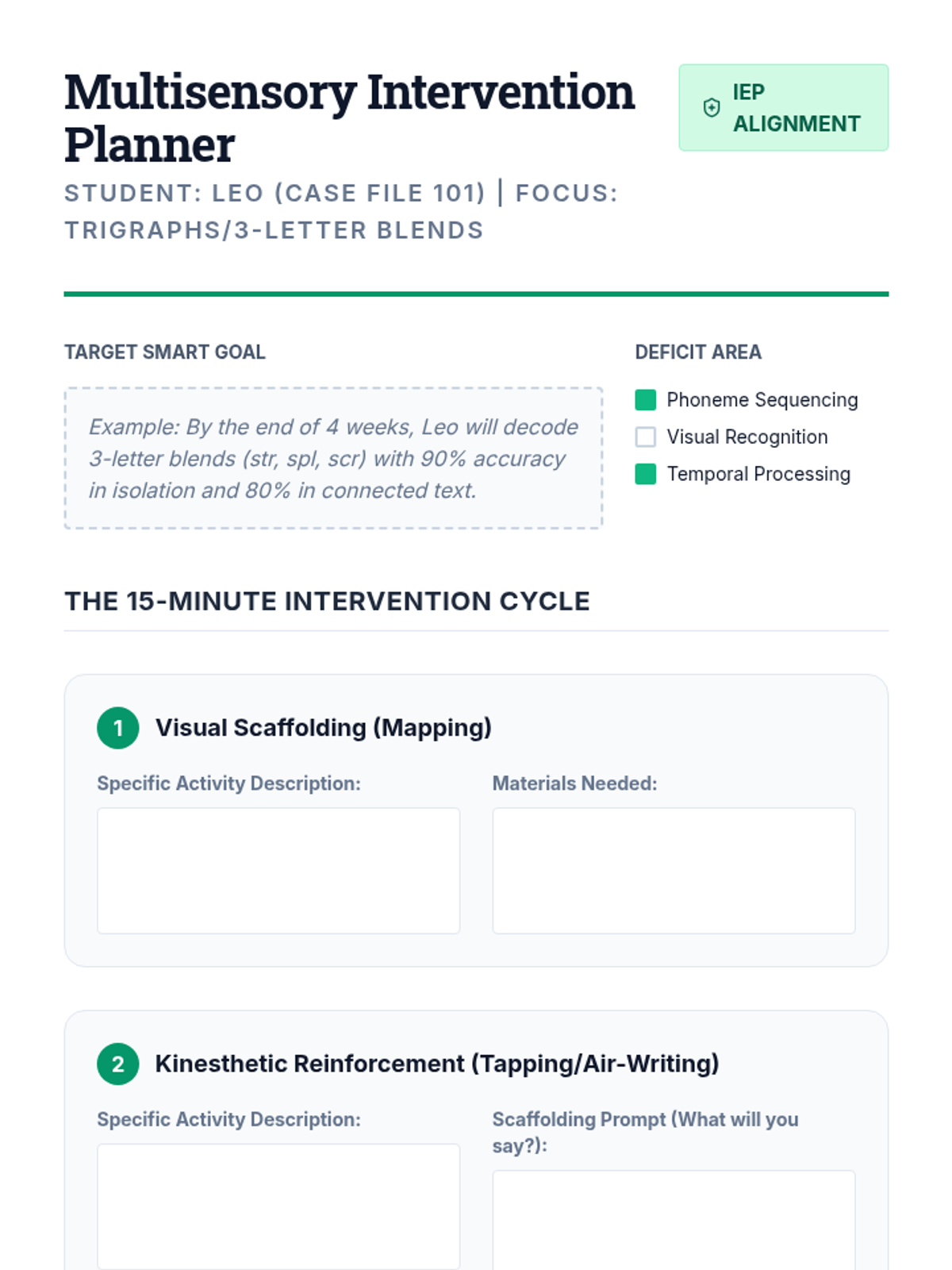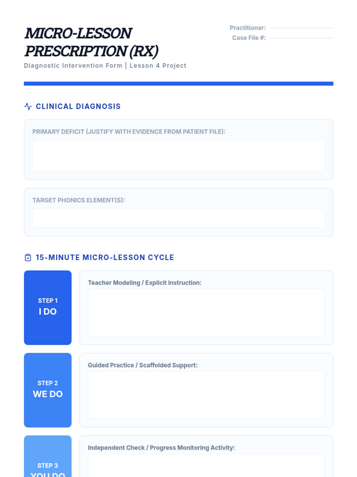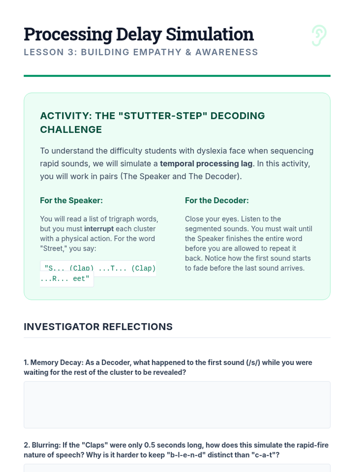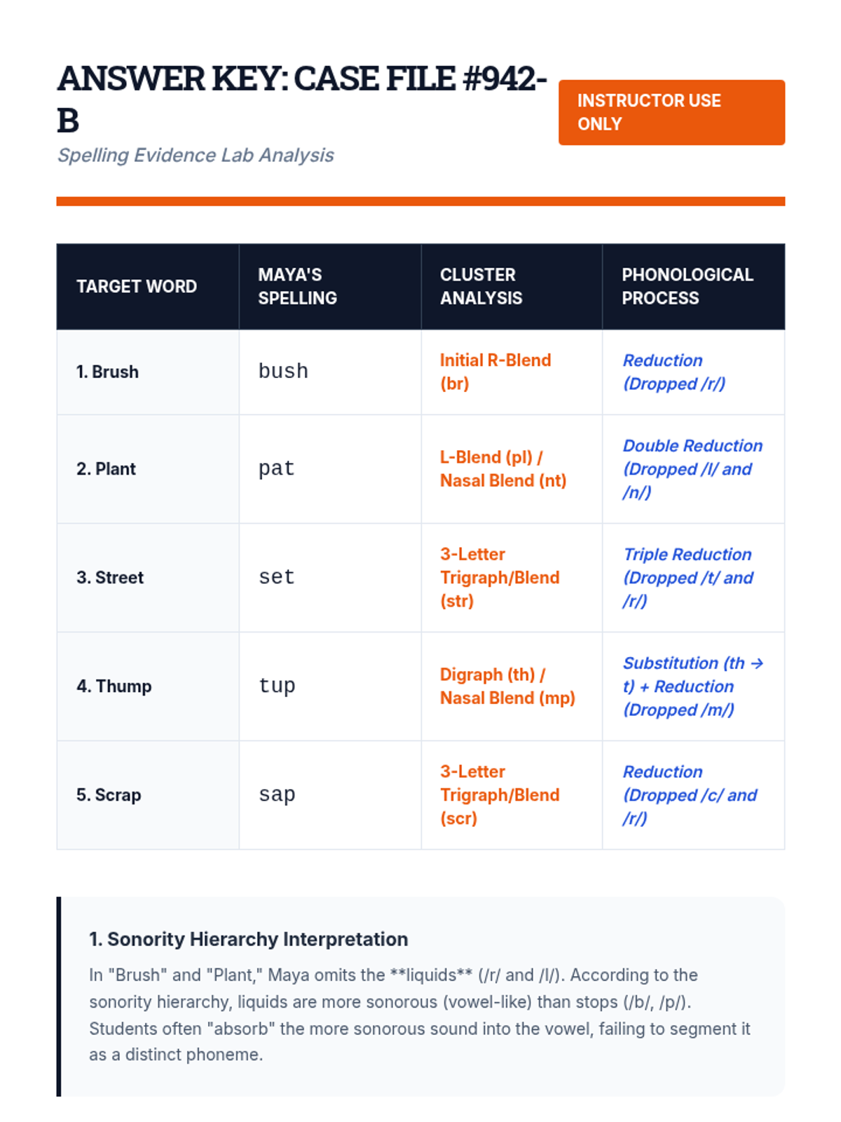 A clinical-themed sequence for undergraduate education students focusing on the diagnostic assessment and targeted intervention of decoding deficits related to blends, digraphs, and trigraphs. Students learn to use miscue analysis, identify phonological patterns like cluster reduction, and design multisensory interventions for students with dyslexia.