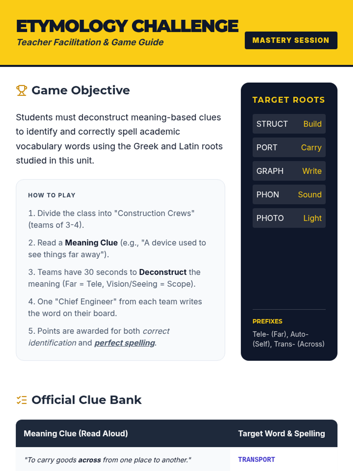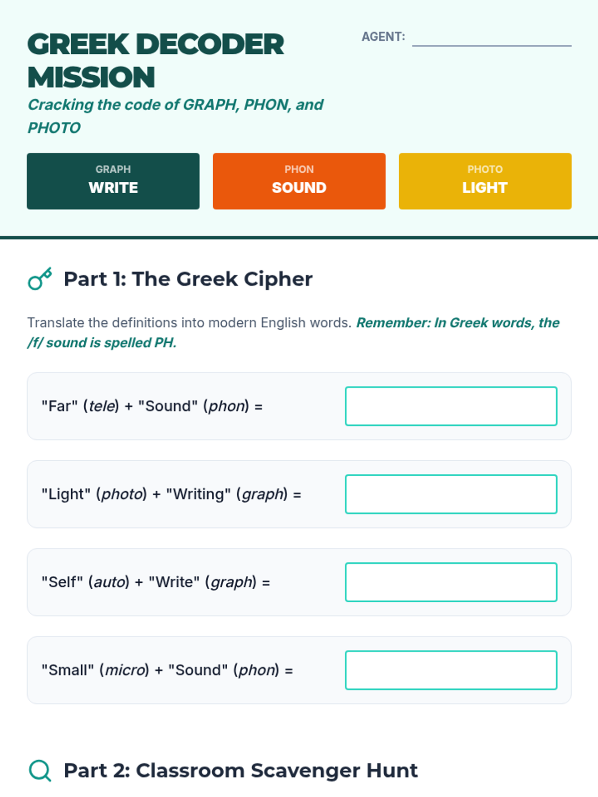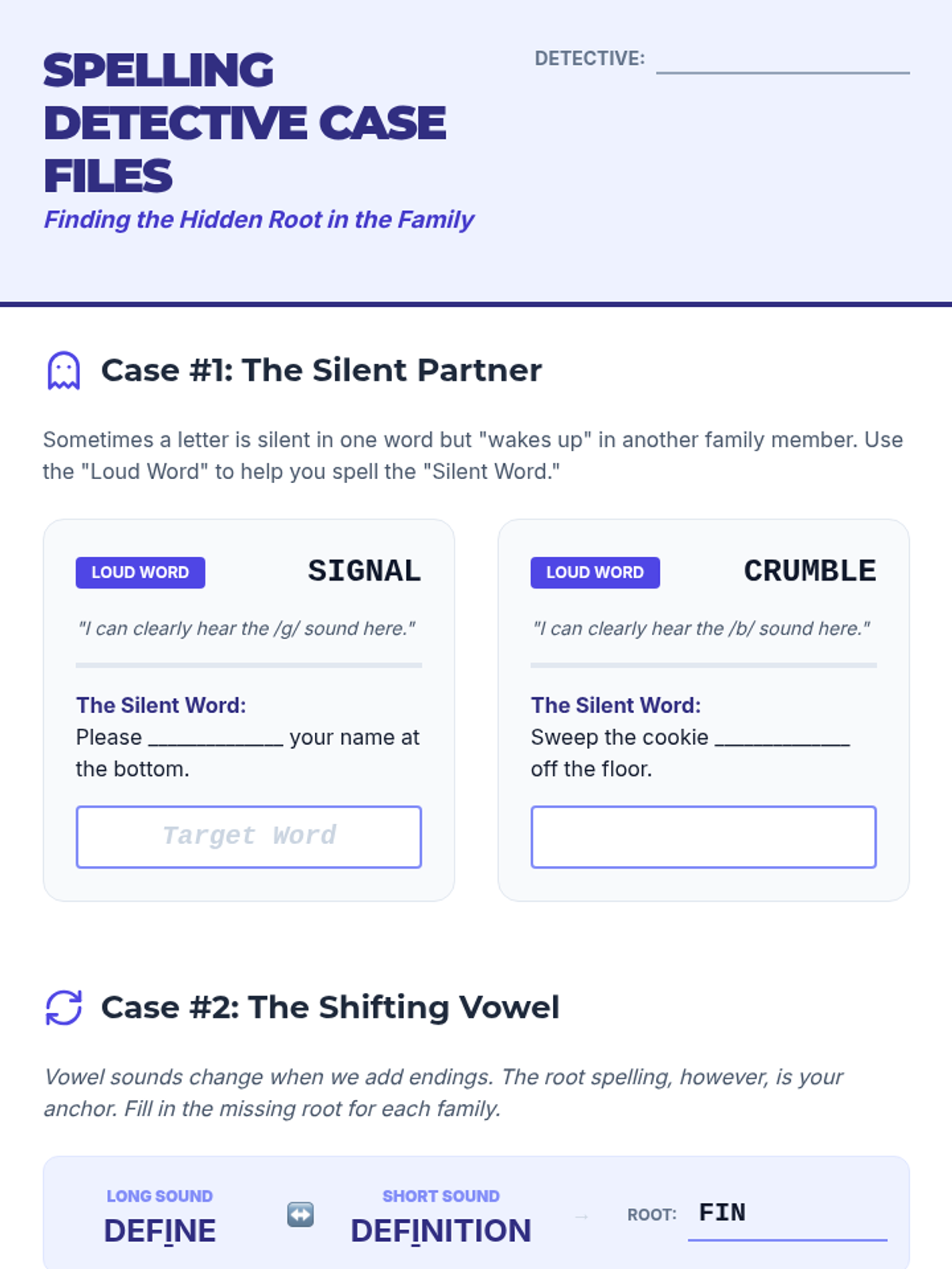 This sequence transforms spelling from rote memorization into a construction project. Students explore Greek and Latin roots (morphemes) as the 'DNA' of English vocabulary, learning to spell complex academic words by understanding their meaningful building blocks.