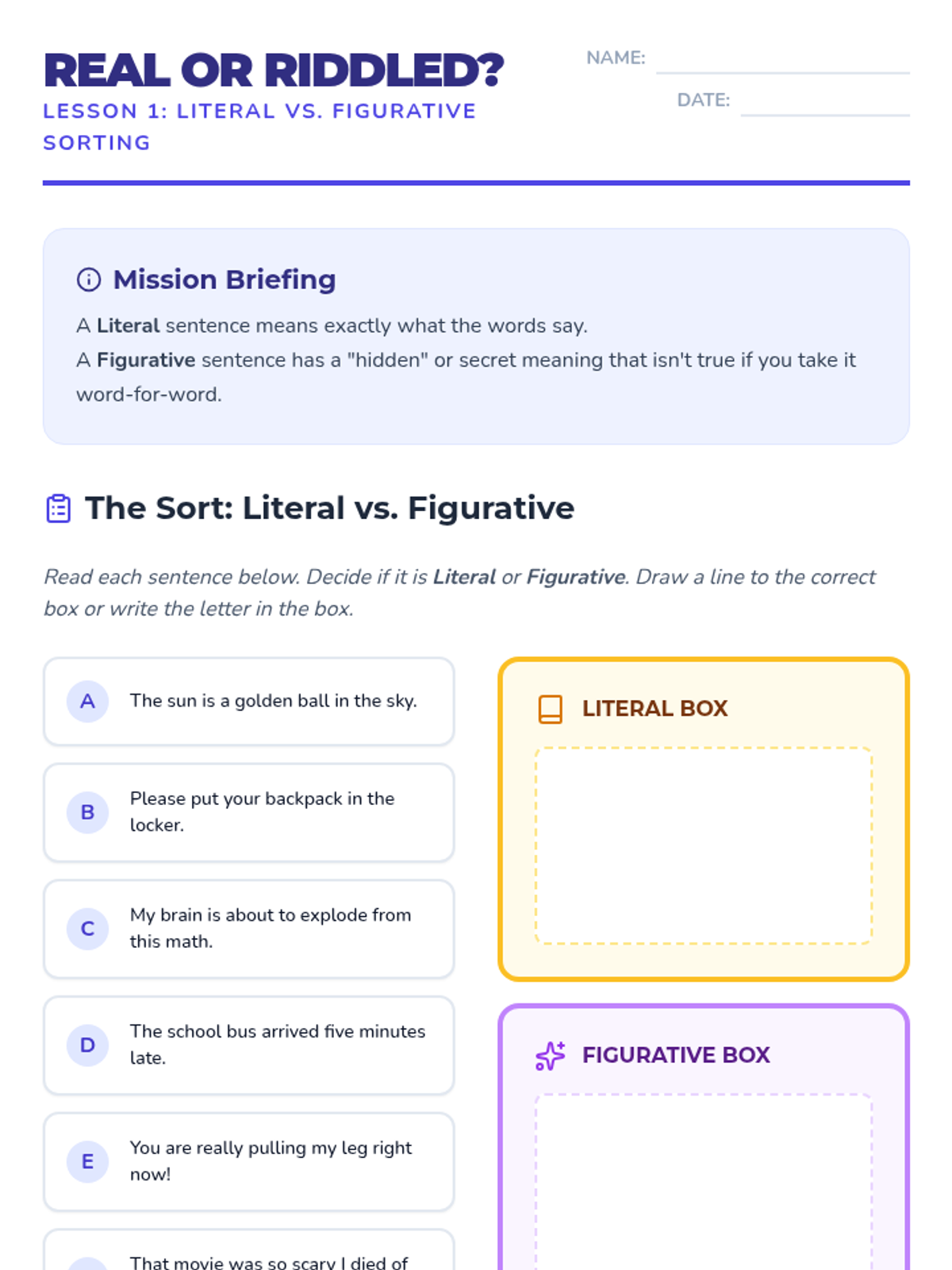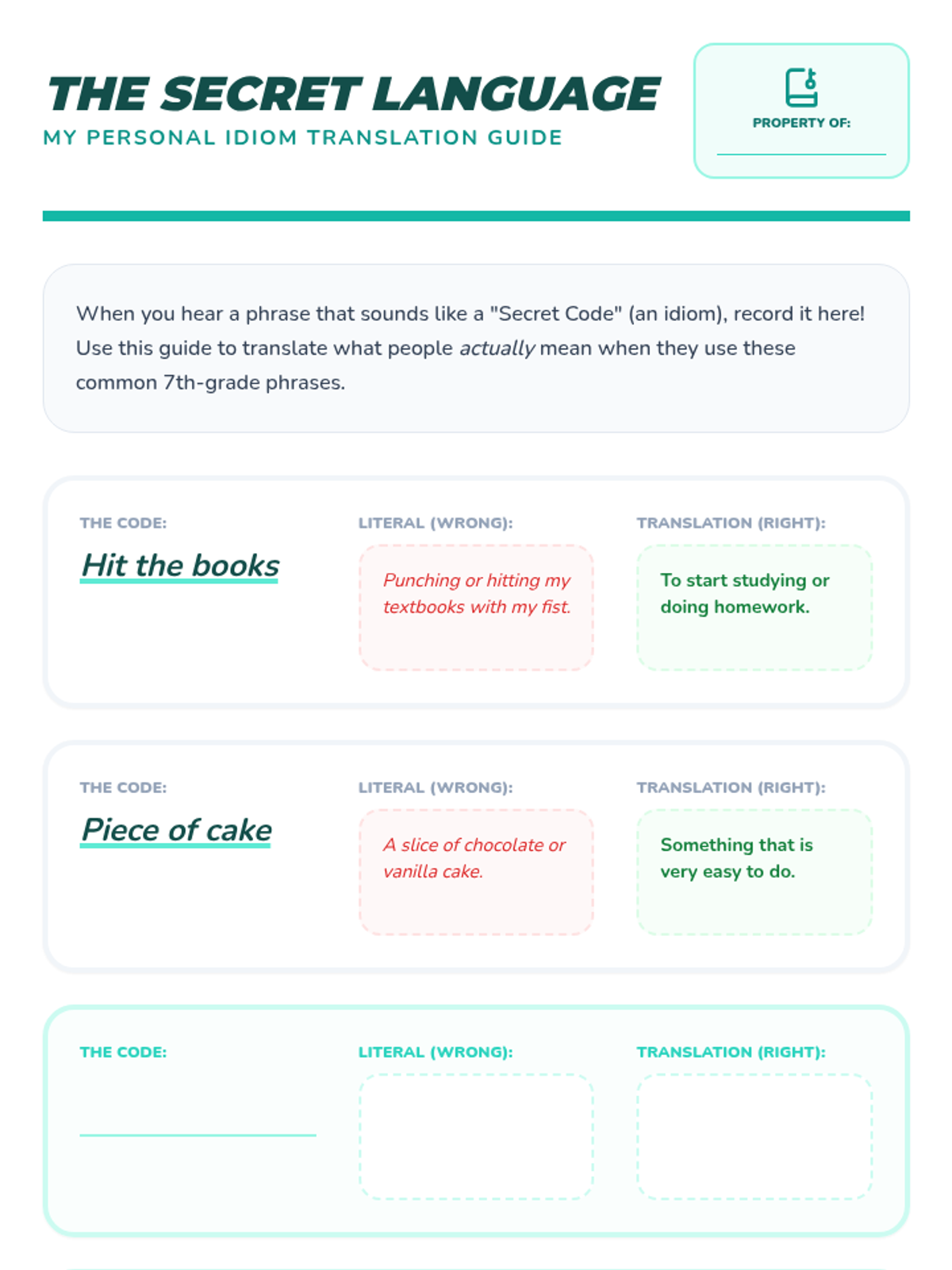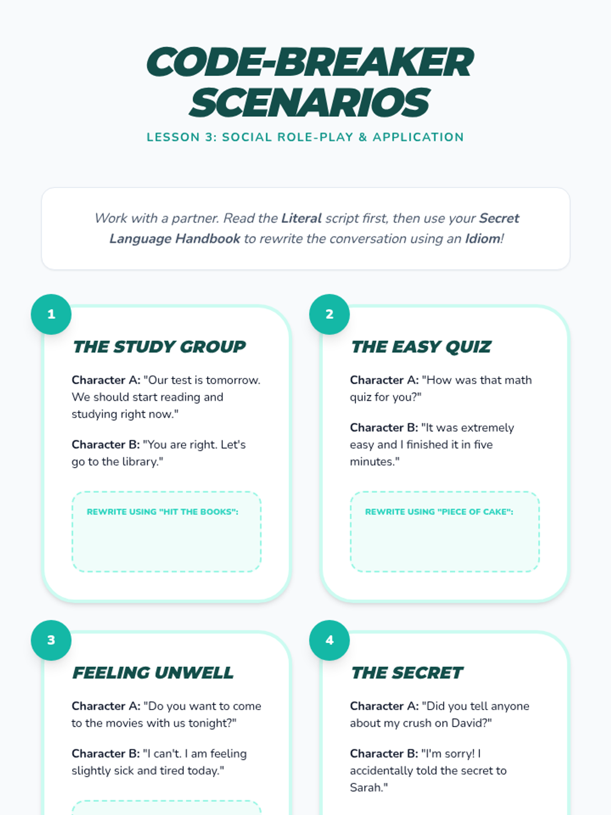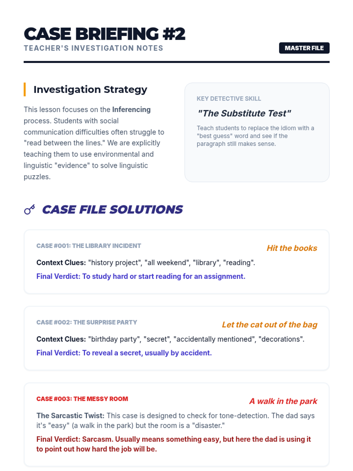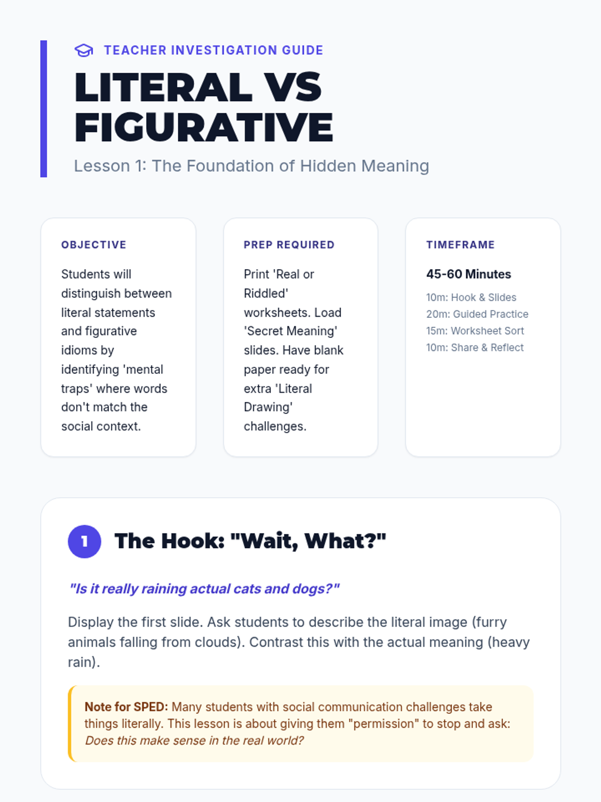 A 7th-grade sequence focused on social communication skills, specifically moving students from literal interpretations of language to understanding idioms and figurative language through context clues and visual reinforcement.