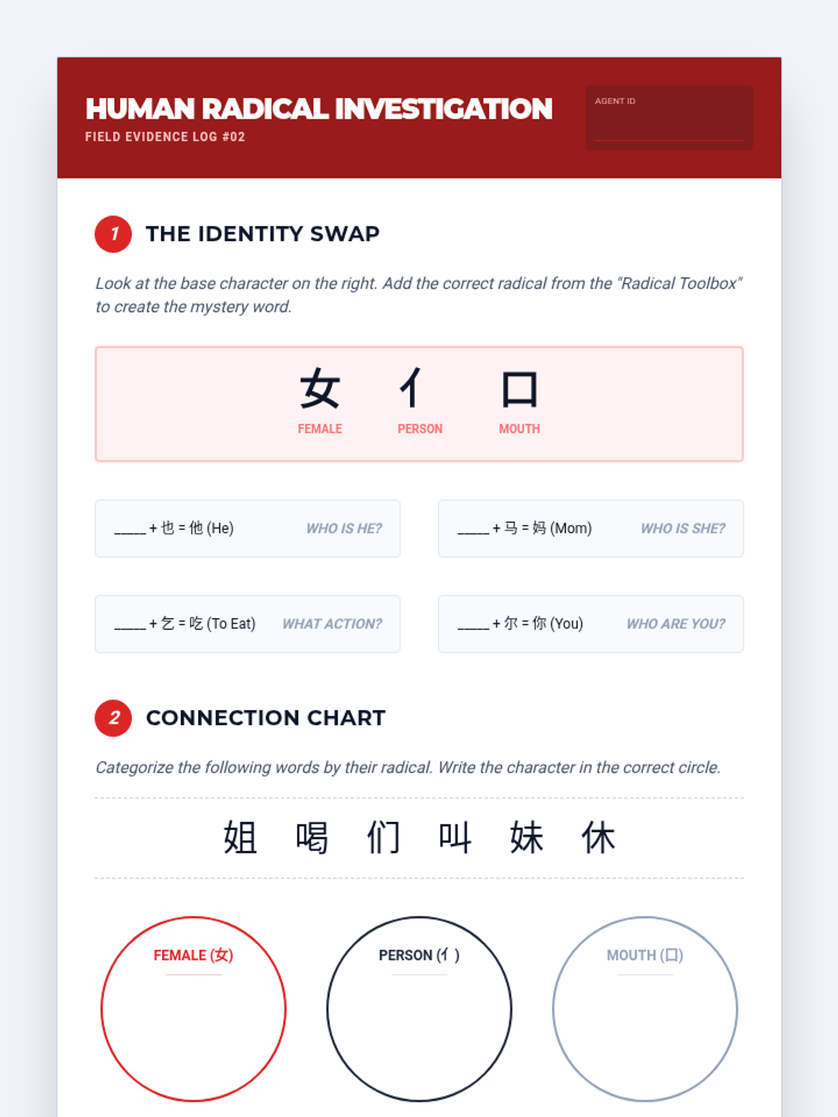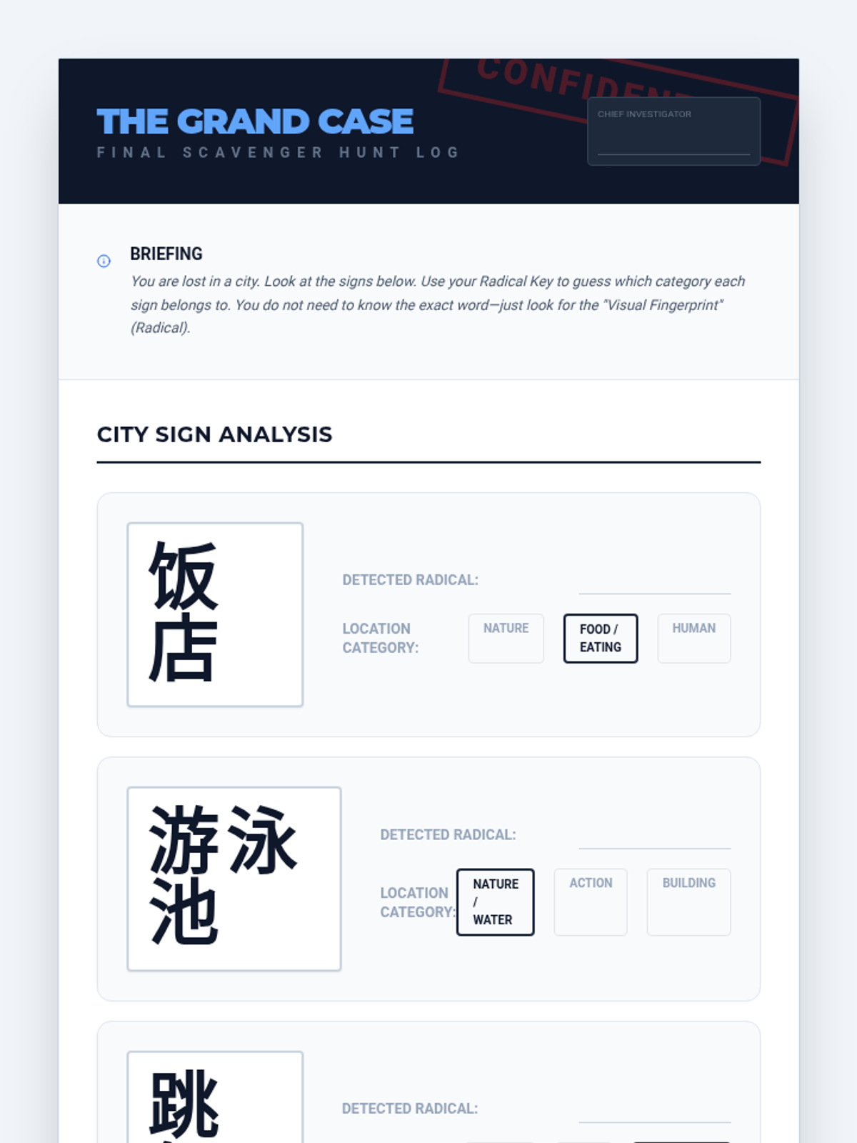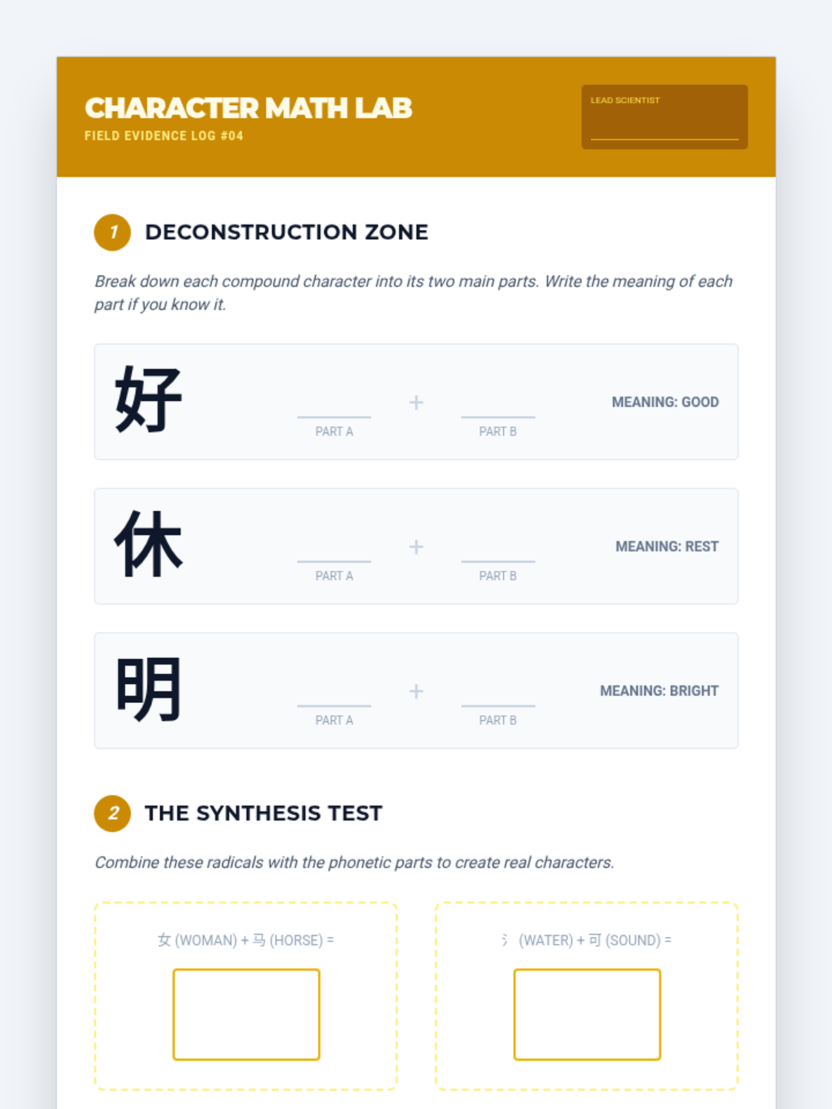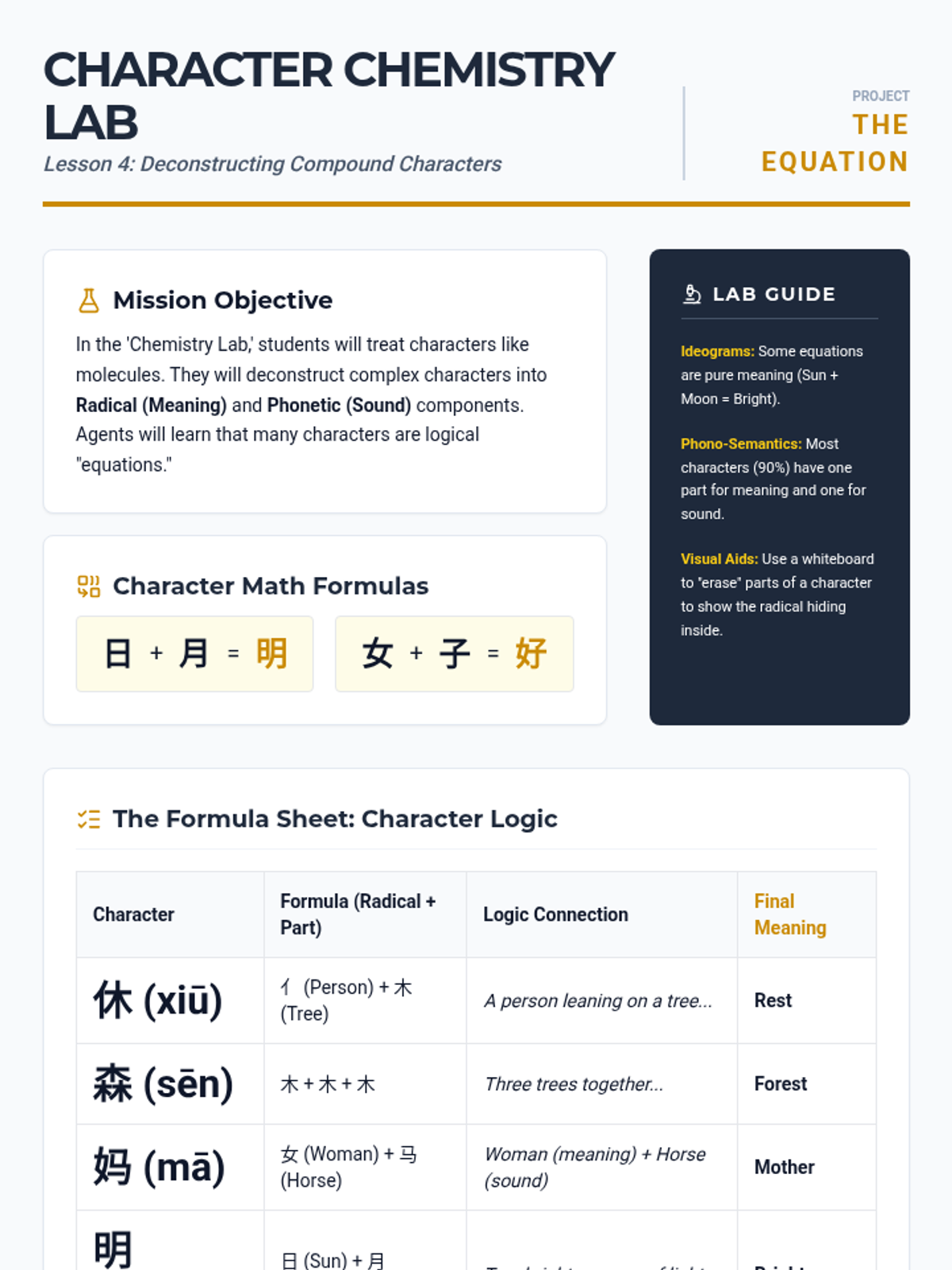 A 5-lesson inquiry-based sequence where 5th-grade students become 'Linguistic Detectives' to decode Mandarin Chinese characters by analyzing their radicals. Students move from simple nature-based radicals to complex compound characters, culminating in a real-world decoding challenge.
