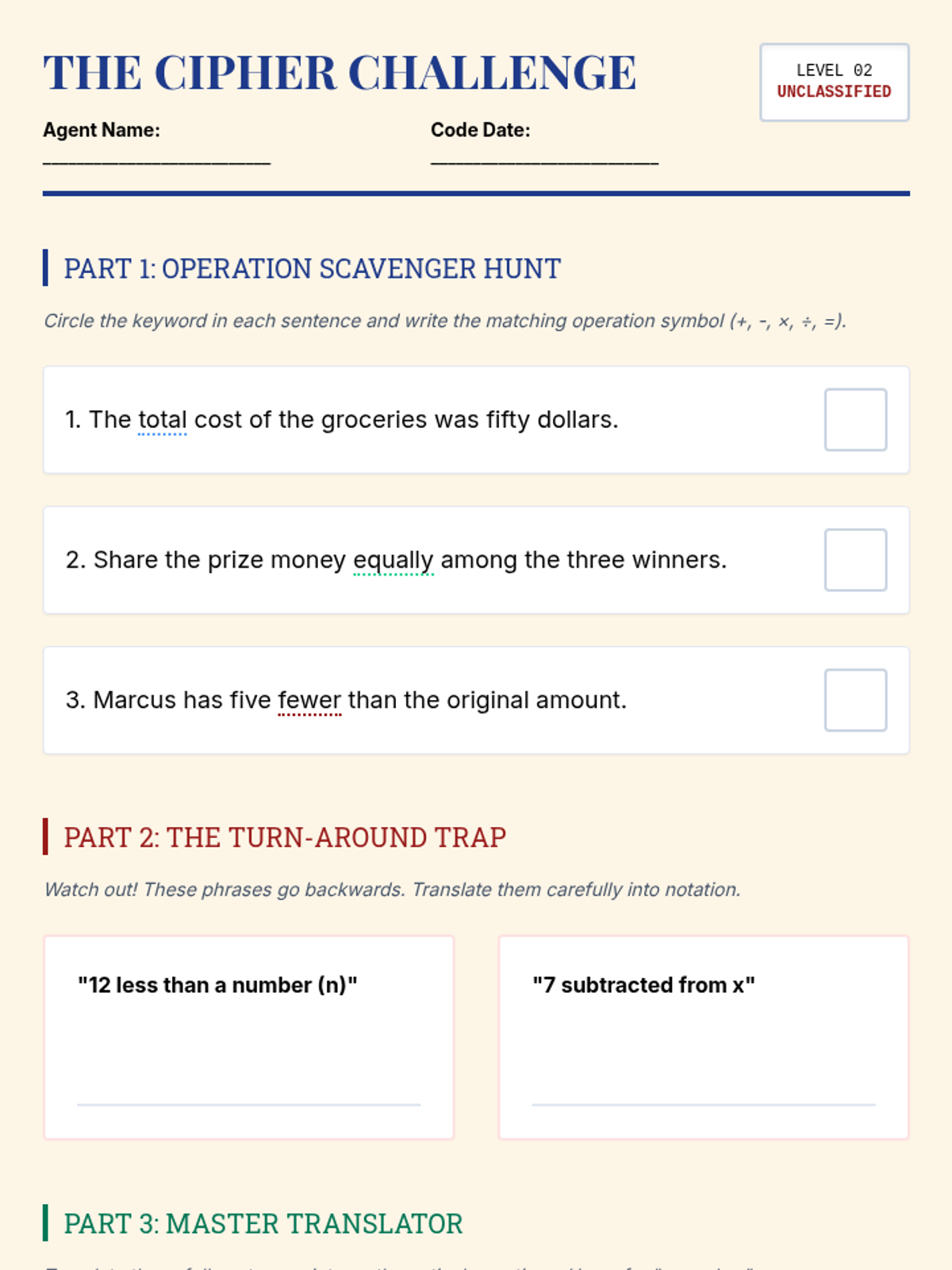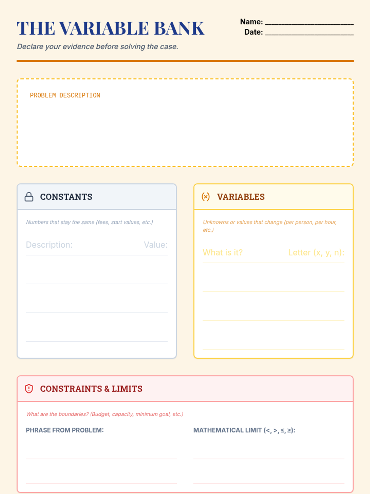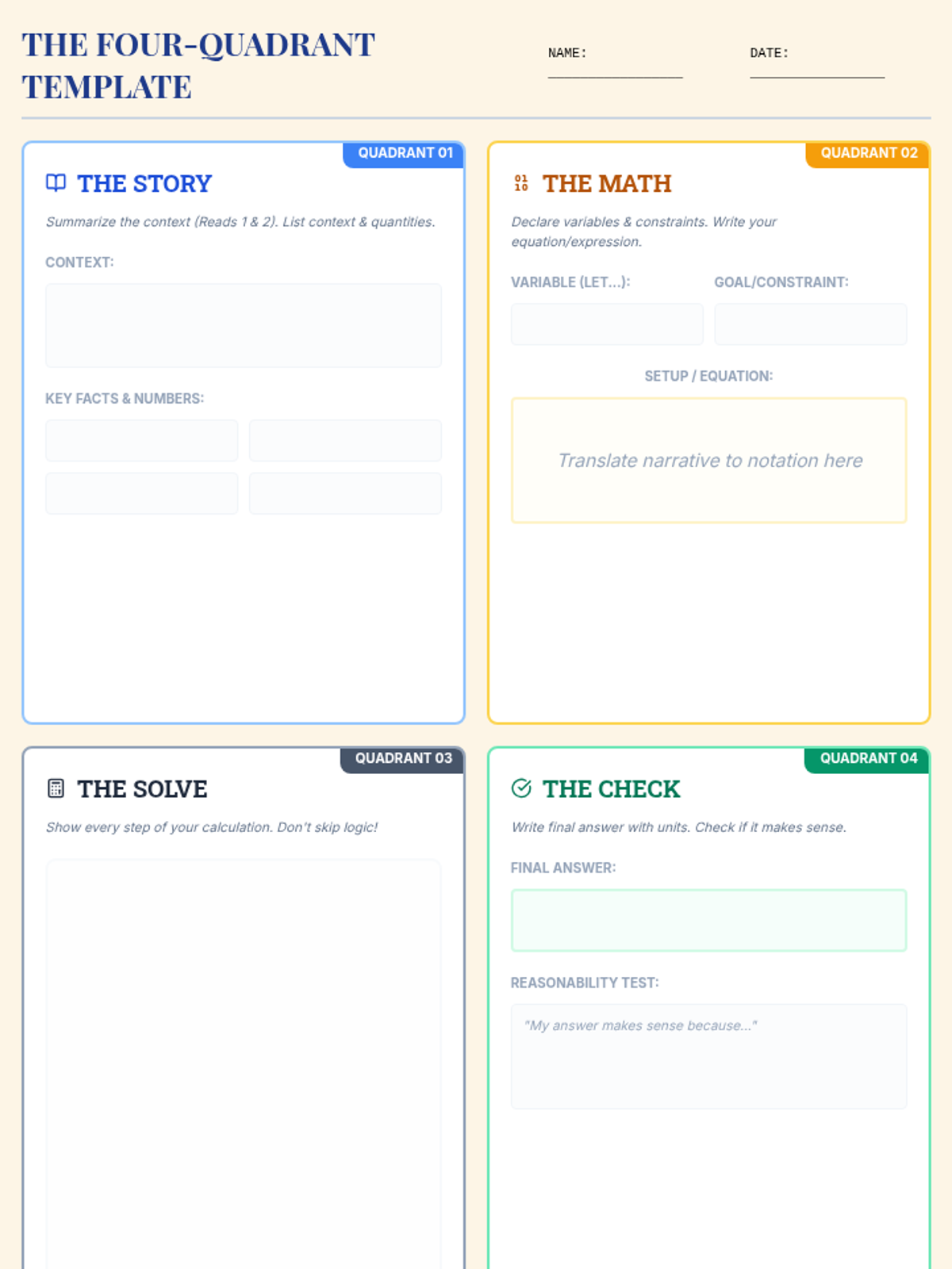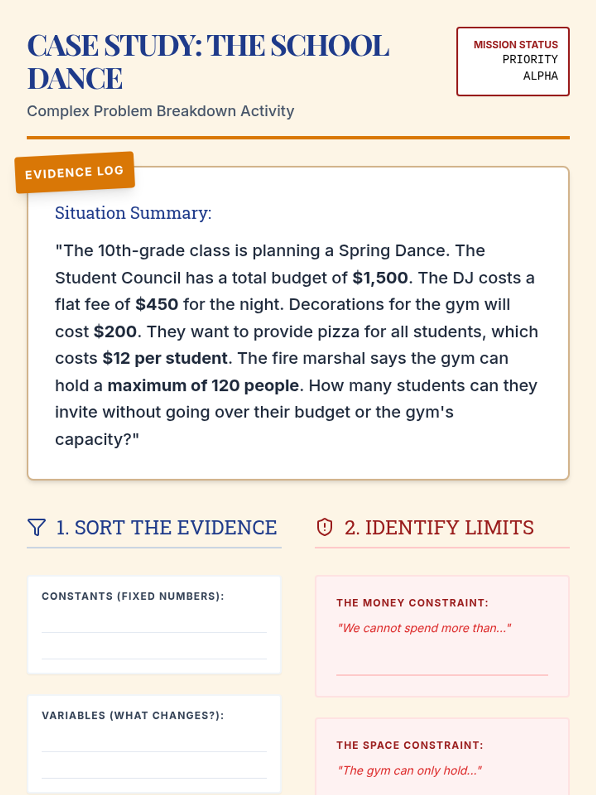 A comprehensive 5-lesson sequence designed for 10th-grade students requiring academic support in math. The sequence focuses on dismantling linguistic barriers in word problems through the 'Three Reads' protocol, mathematical translation, constraint identification, and structured problem-solving templates.