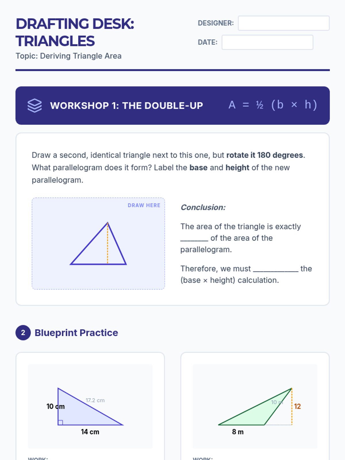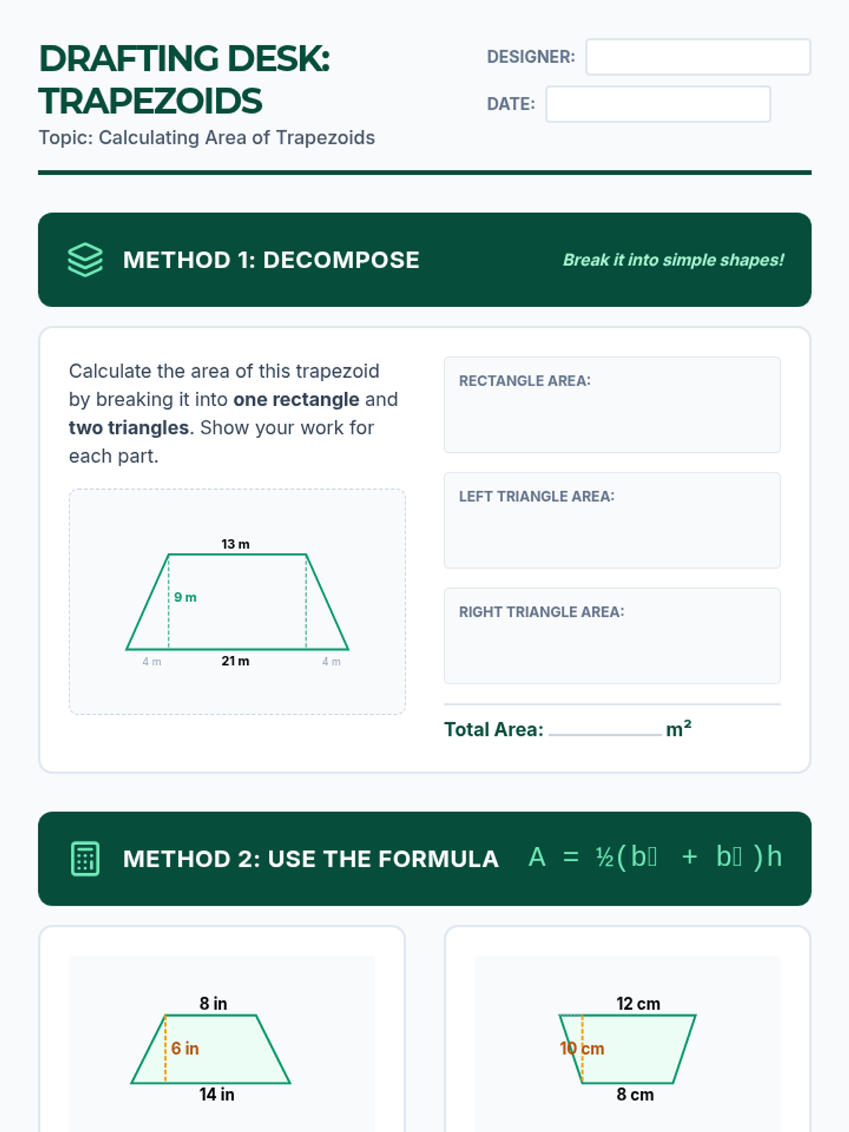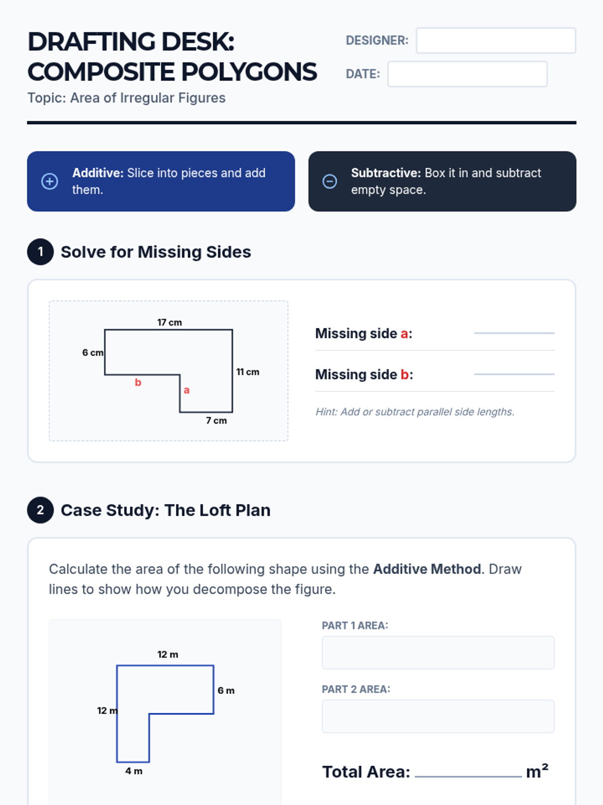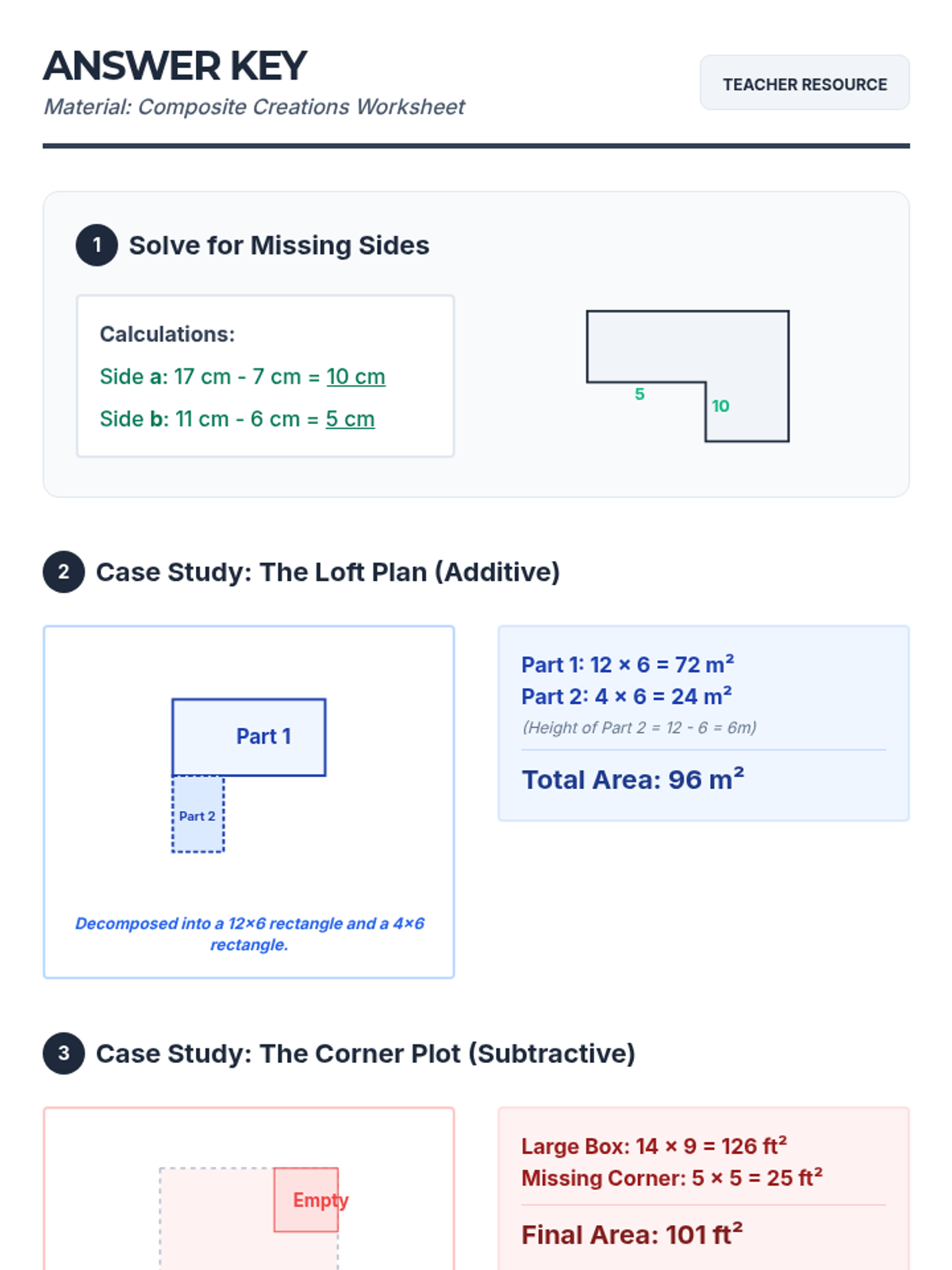 This sequence guides students through the geometric reasoning required to find the area of various polygons by decomposing them into simpler shapes. Students begin by establishing the relationship between rectangles and parallelograms, then progress to triangles, trapezoids, and finally complex composite figures. The journey emphasizes spatial visualization and the 'cut and rearrange' method over rote memorization of formulas.