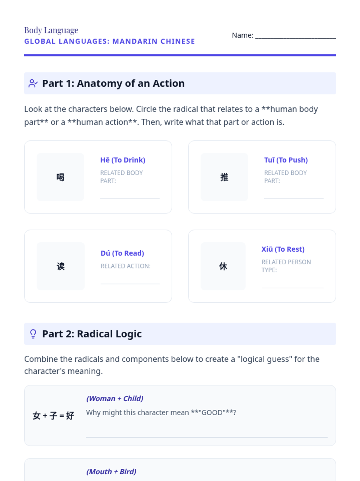A 5-lesson unit for 8th-grade Mandarin students focusing on the logic of character formation, specifically radicals and the evolution of pictographs. Students move from tracing ancient origins to decoding complex phonetic-semantic compounds.