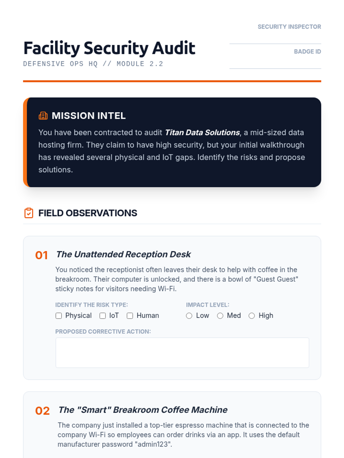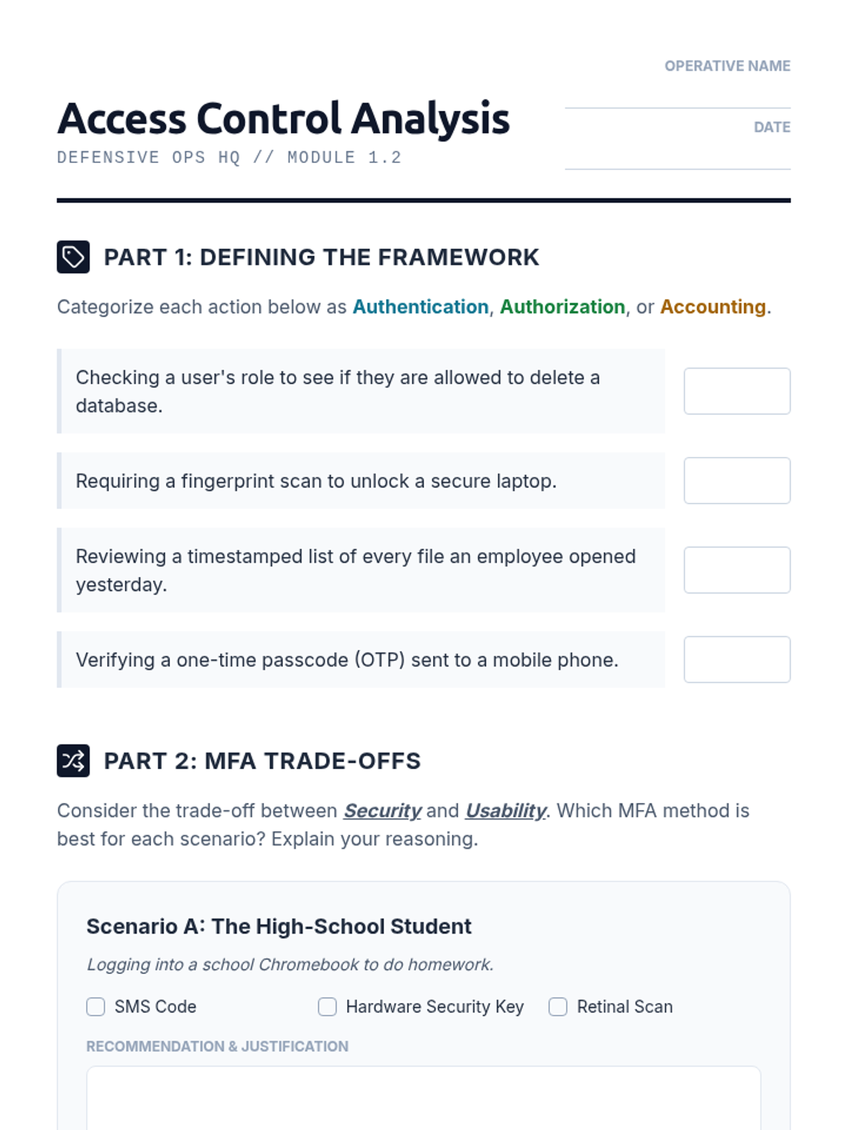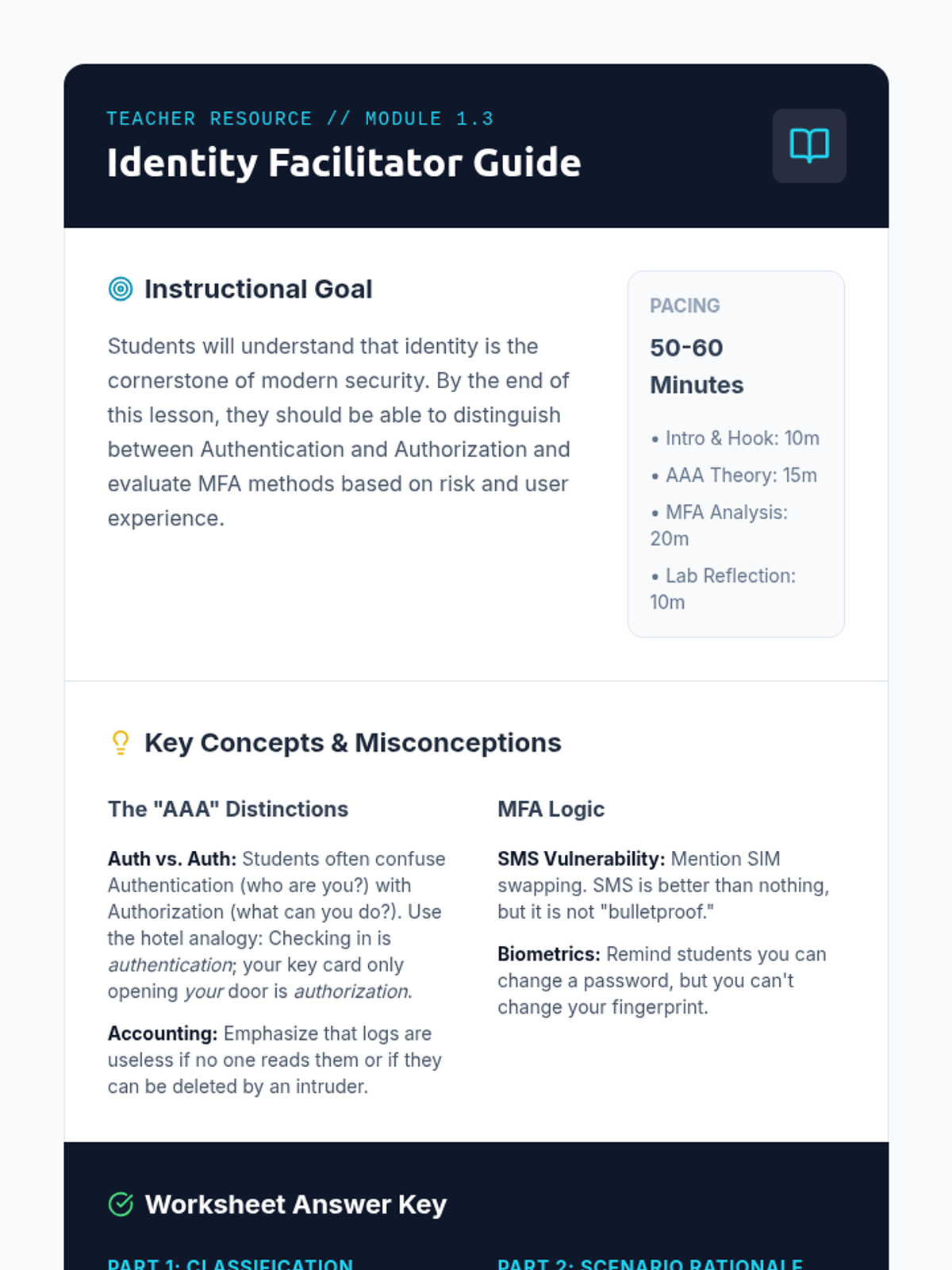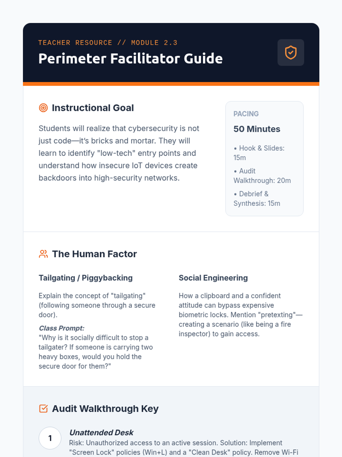 A comprehensive 10th-grade sequence on defensive cybersecurity operations, covering IAM, physical security, log analysis, forensics, and incident response through a SOC-themed approach.