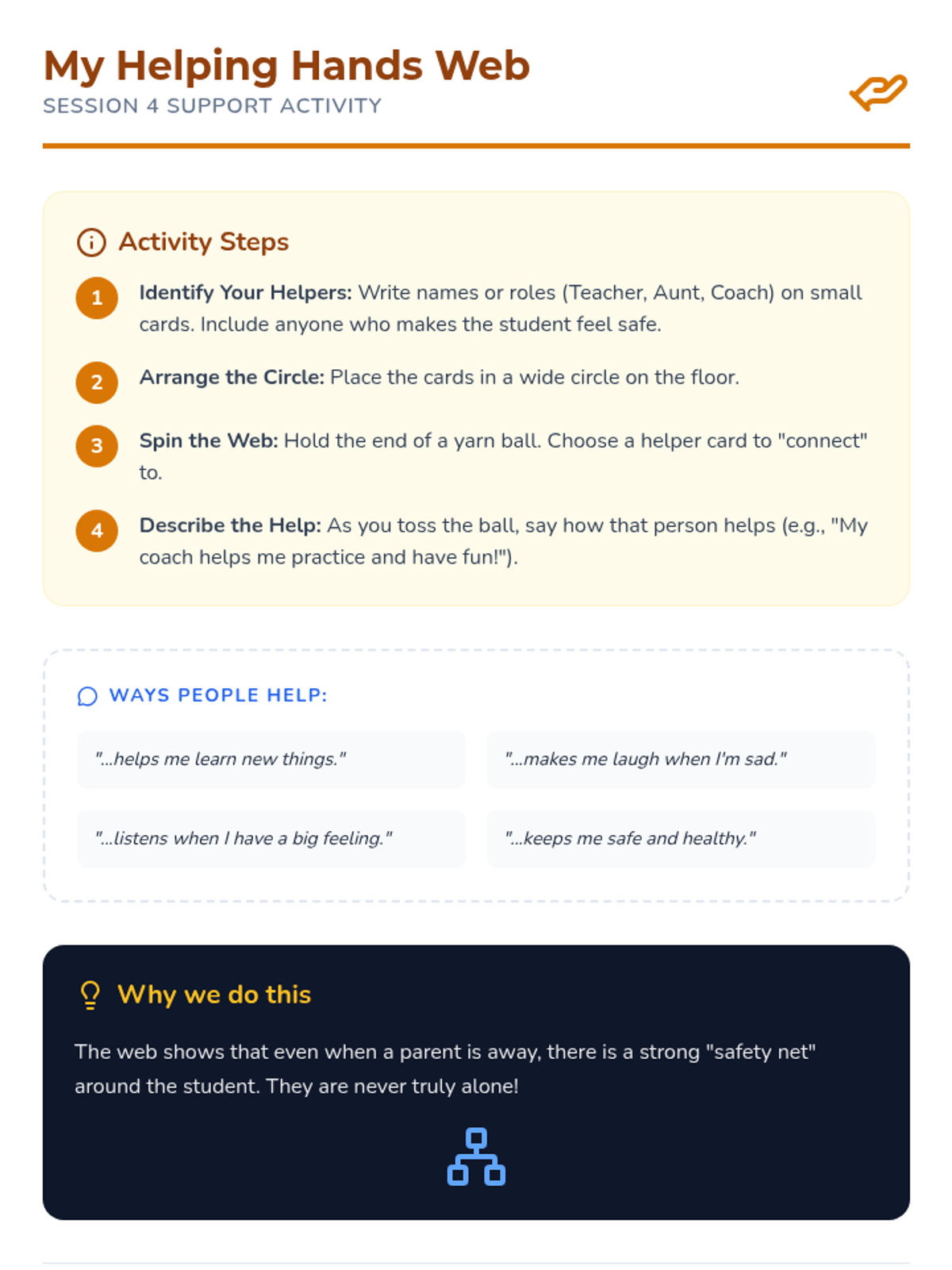 A comprehensive 4-day small group program focusing on essential social-emotional skills including emotional regulation, active listening, friendship building, and conflict resolution.