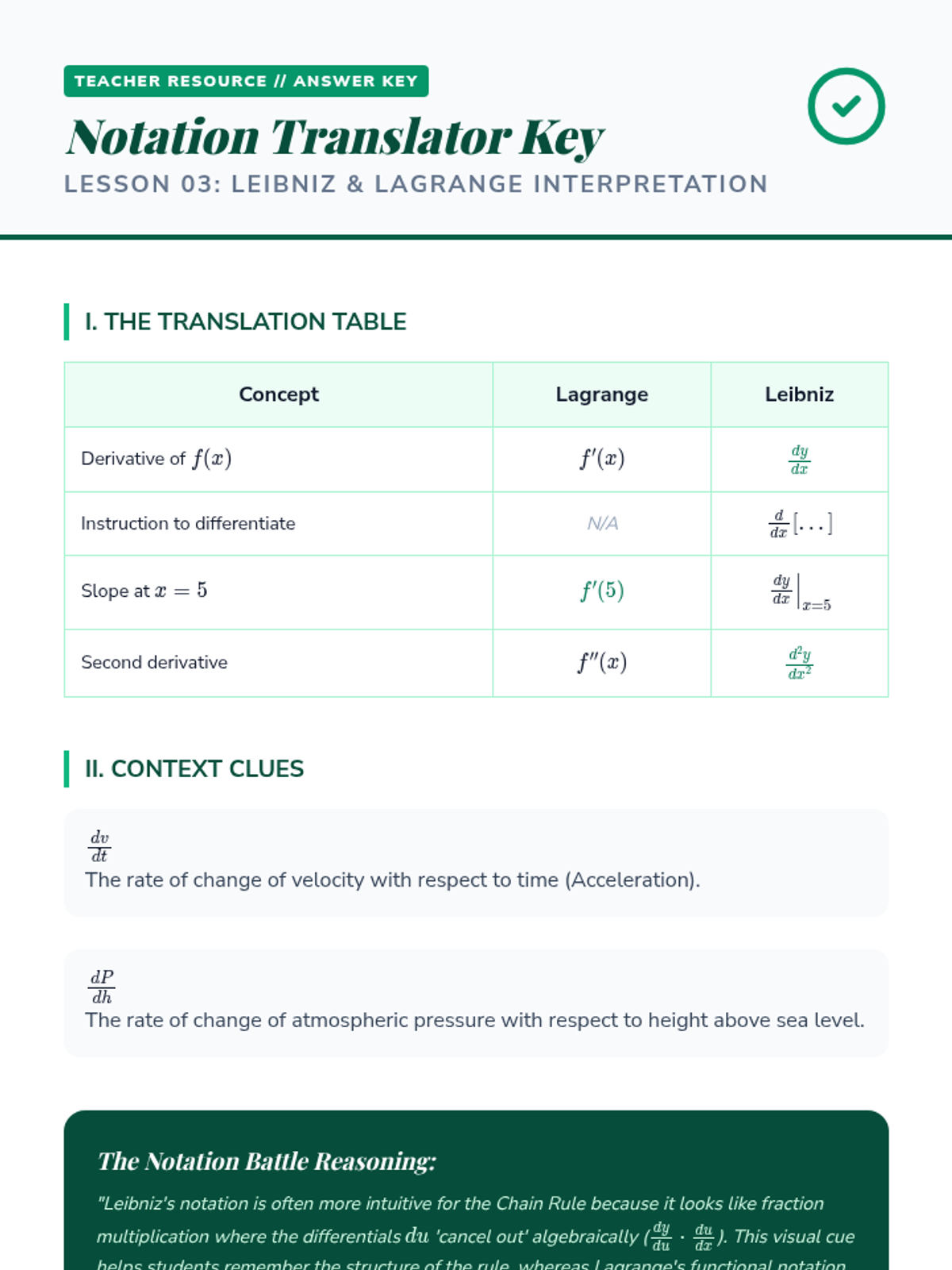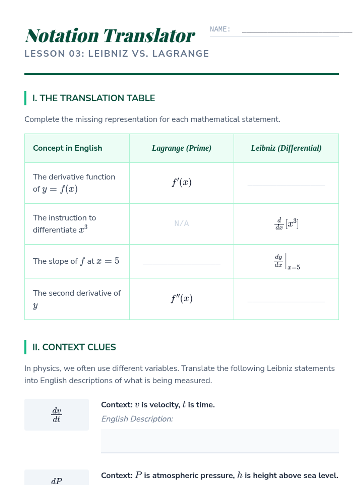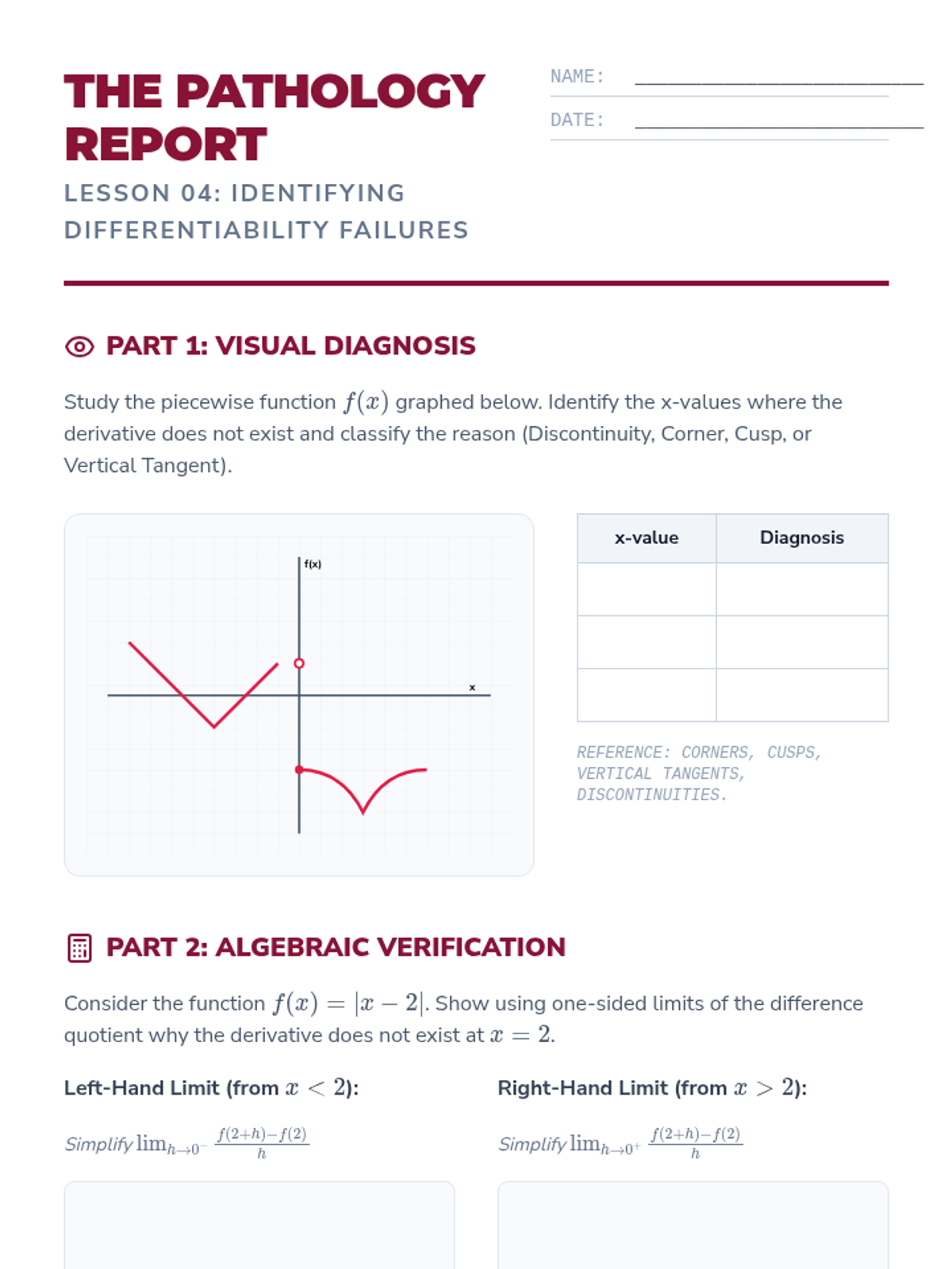 This sequence bridges the gap between pre-calculus algebra and calculus by rigorously defining the derivative through geometric intuition, the formal limit definition, and varied notation systems. Students transition from average to instantaneous rates of change, explore differentiability, and master the algebraic manipulation required to find derivatives from first principles.