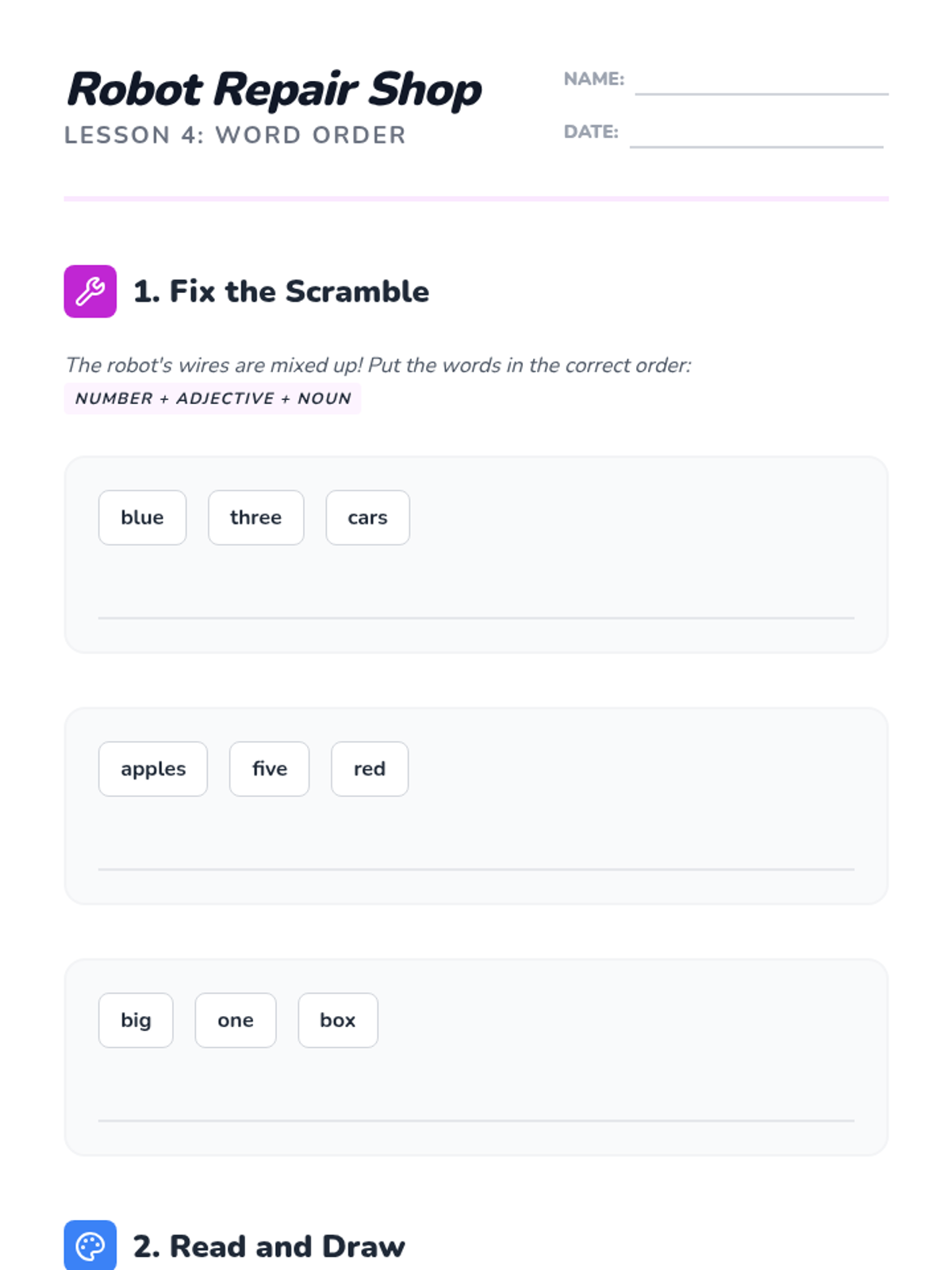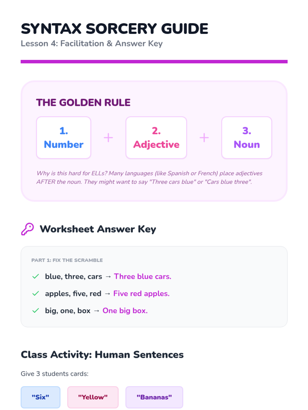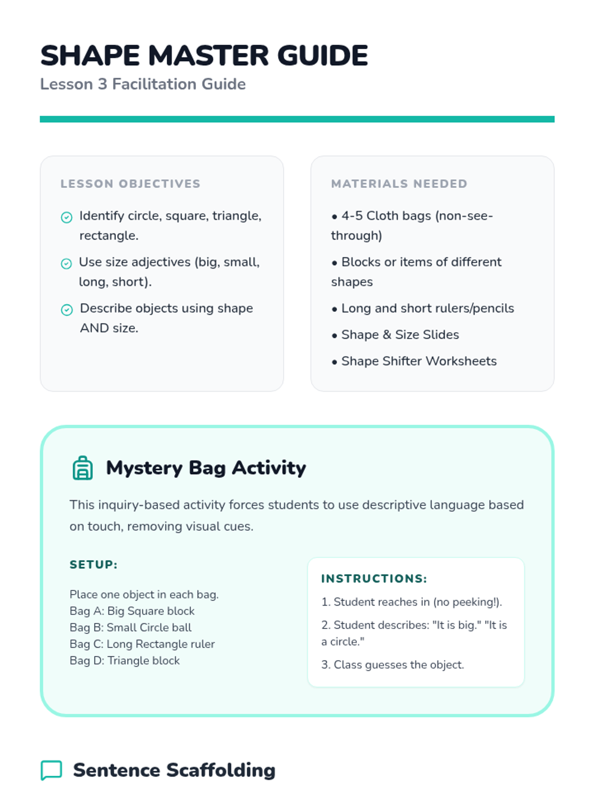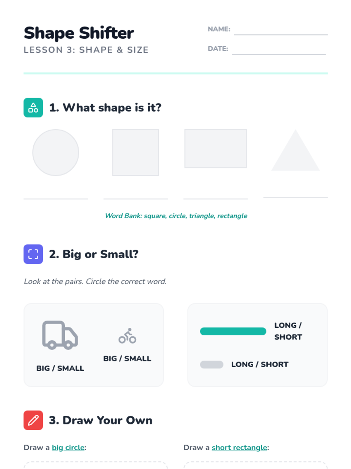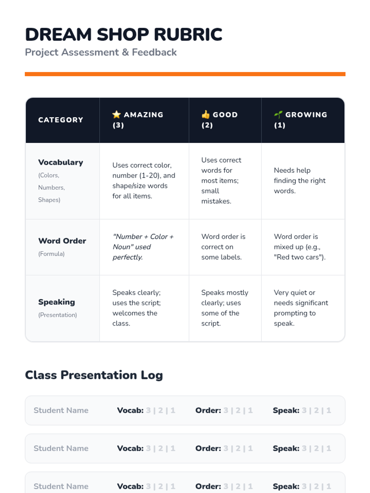 A 5-lesson sequence for beginner English Language Learners focused on describing the world using colors, numbers, shapes, and sizes. Students progress from basic attribute identification to constructing complex descriptive phrases, culminating in a creative 'Dream Shop' project.