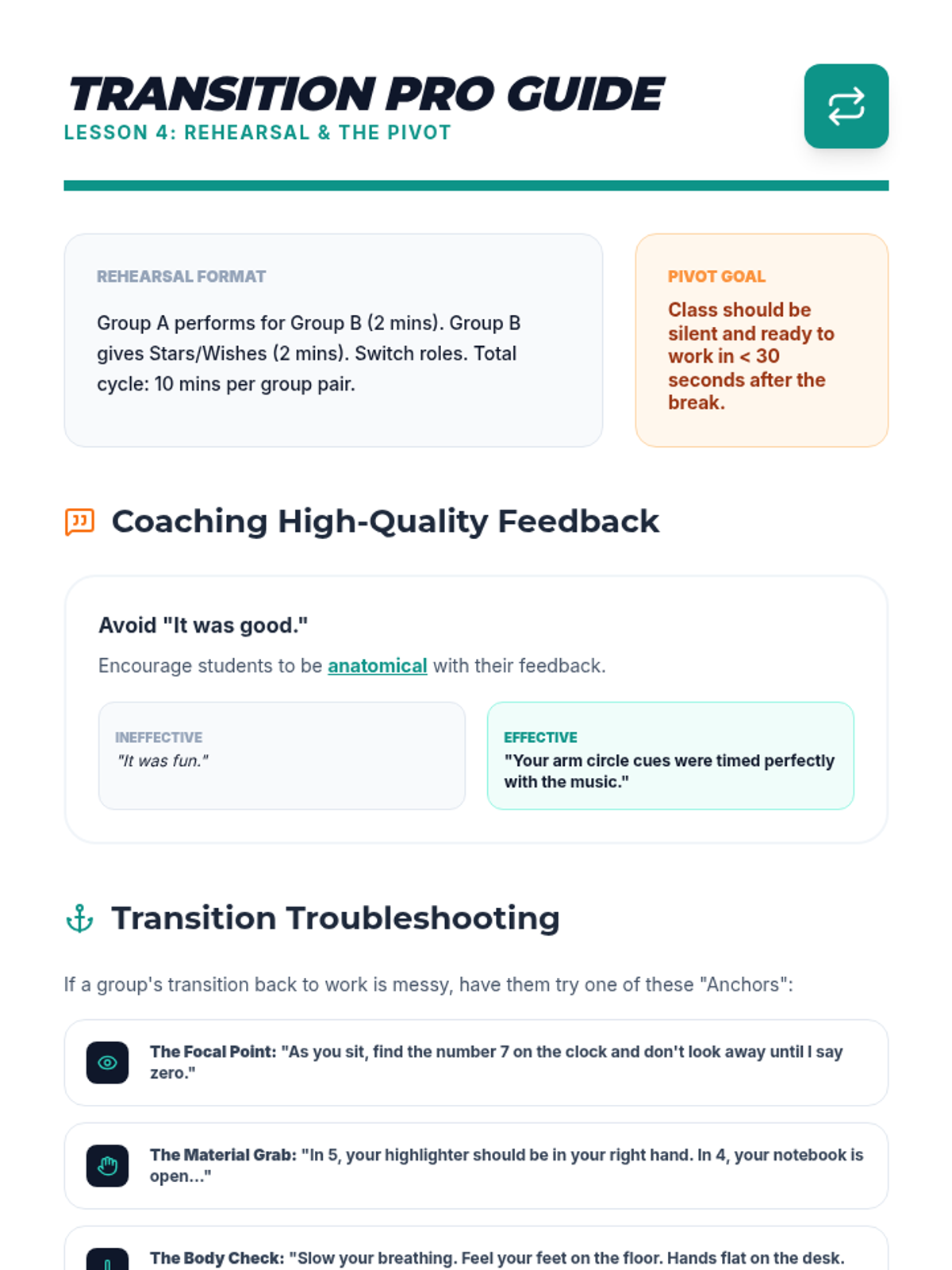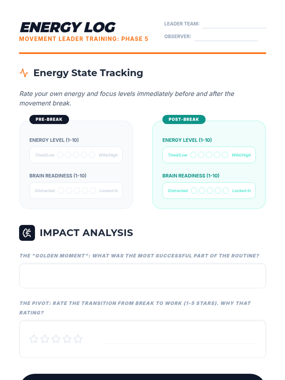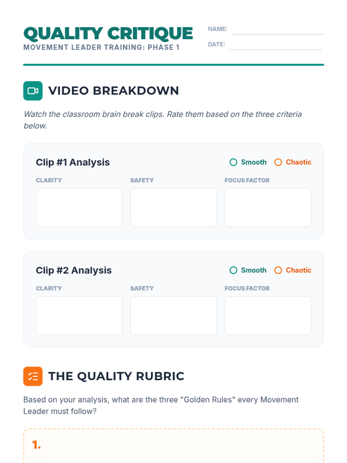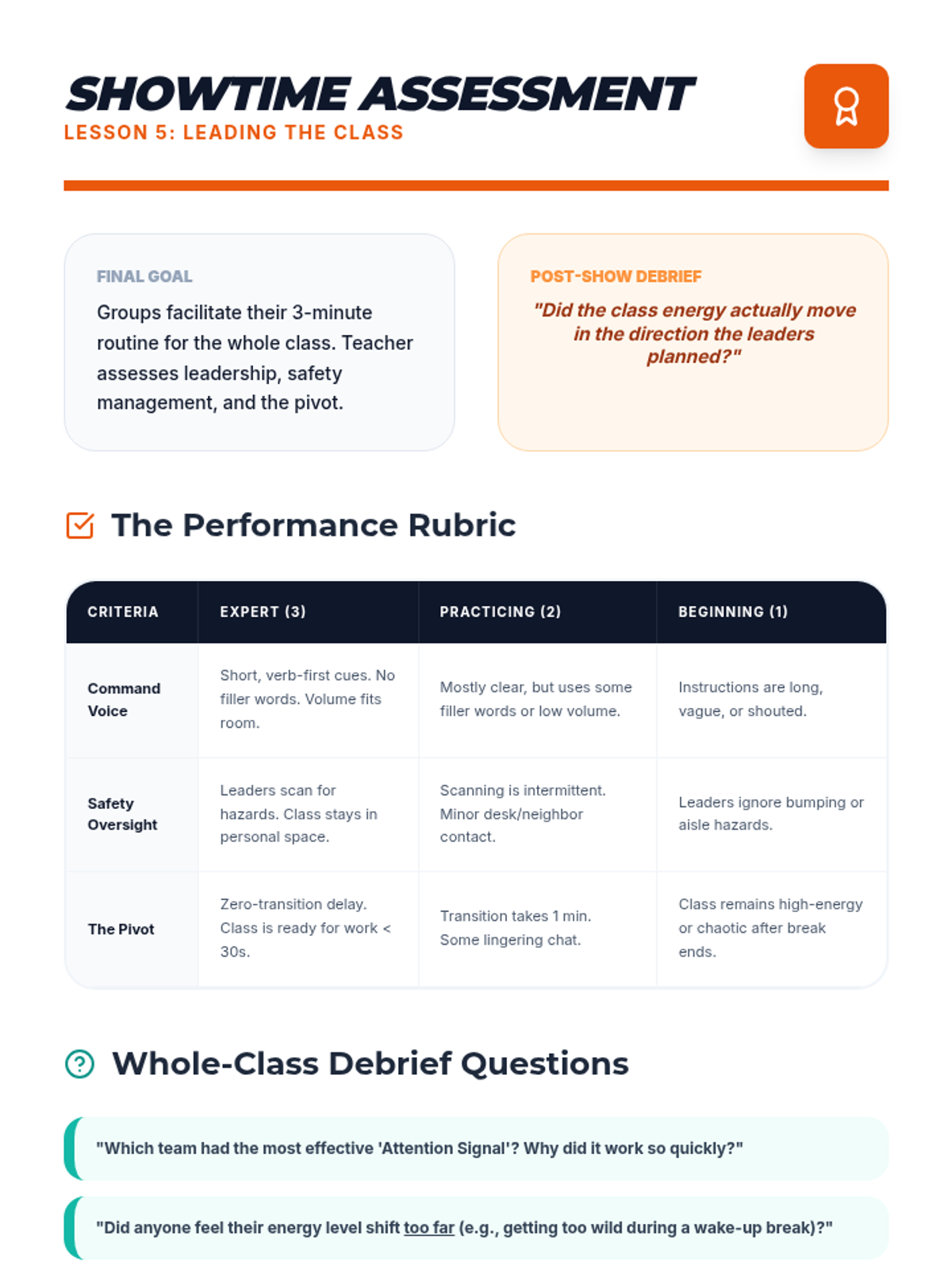 A project-based sequence where 5th graders become 'Movement Leaders', designing and facilitating classroom brain breaks that prioritize safety, engagement, and effective transitions. Students transition from analyzing routines to leading their peers in custom-designed movement sequences.
