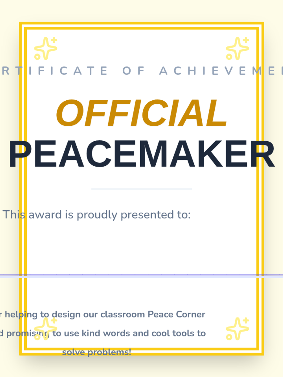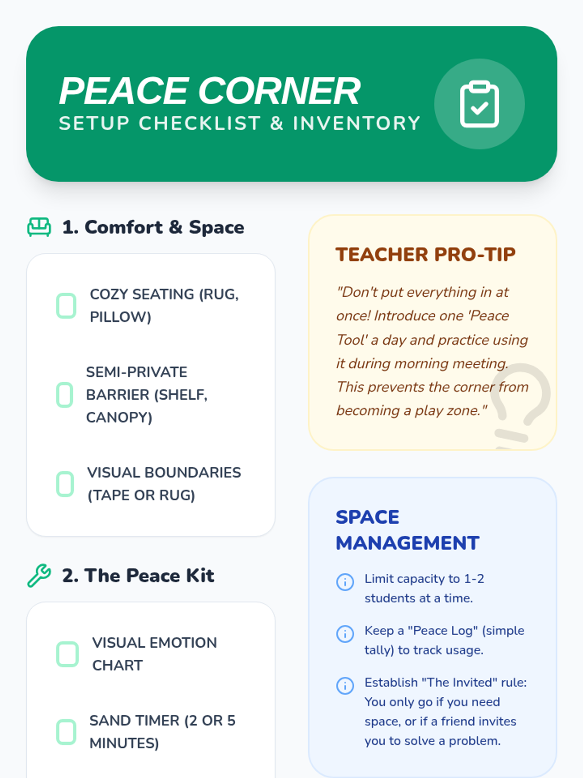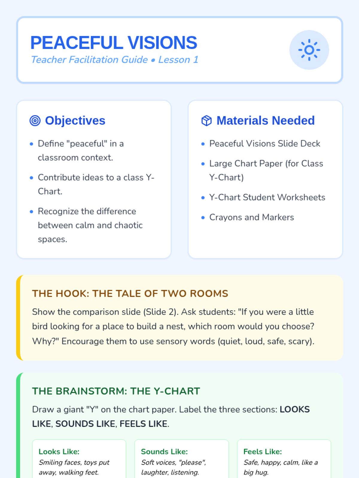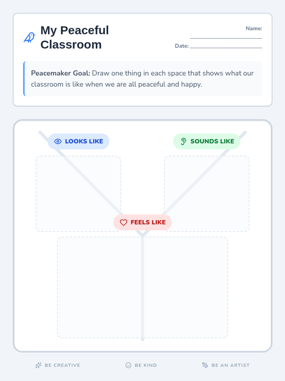 A Kindergarten project-based unit where students co-create a classroom 'Peace Corner'. They transition from learning about peaceful environments to building concrete tools and protocols for conflict resolution.