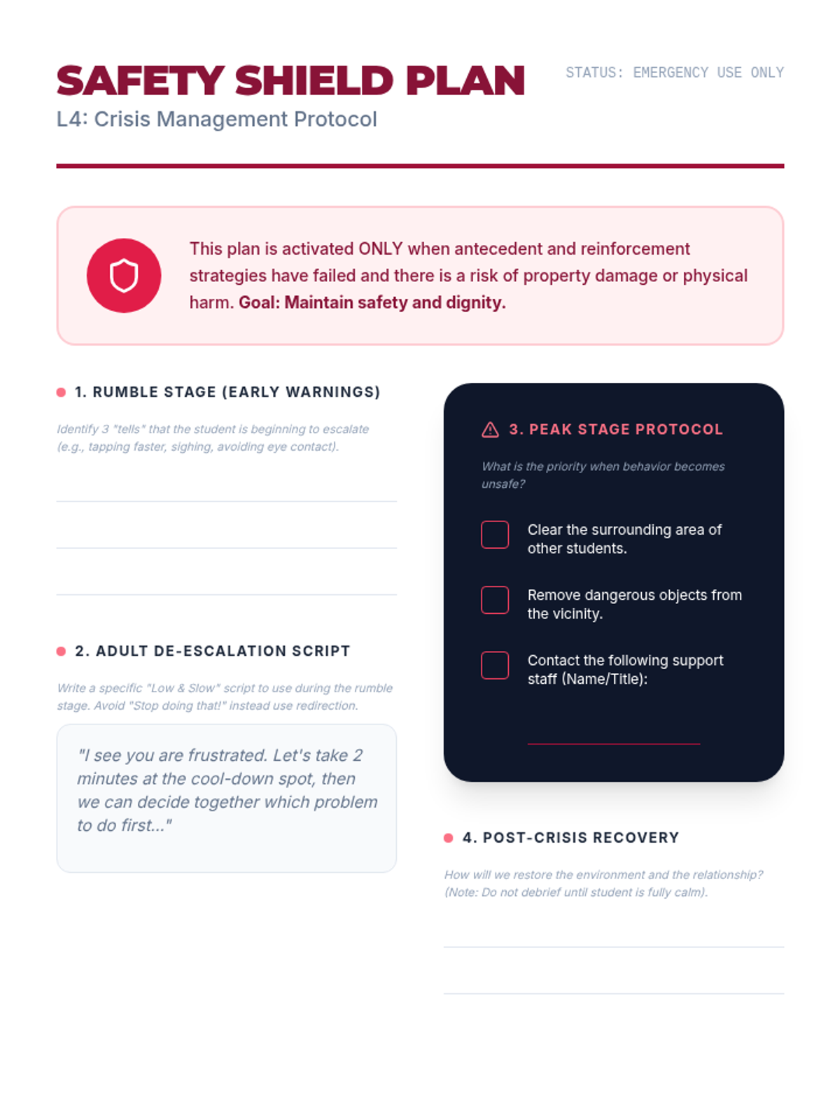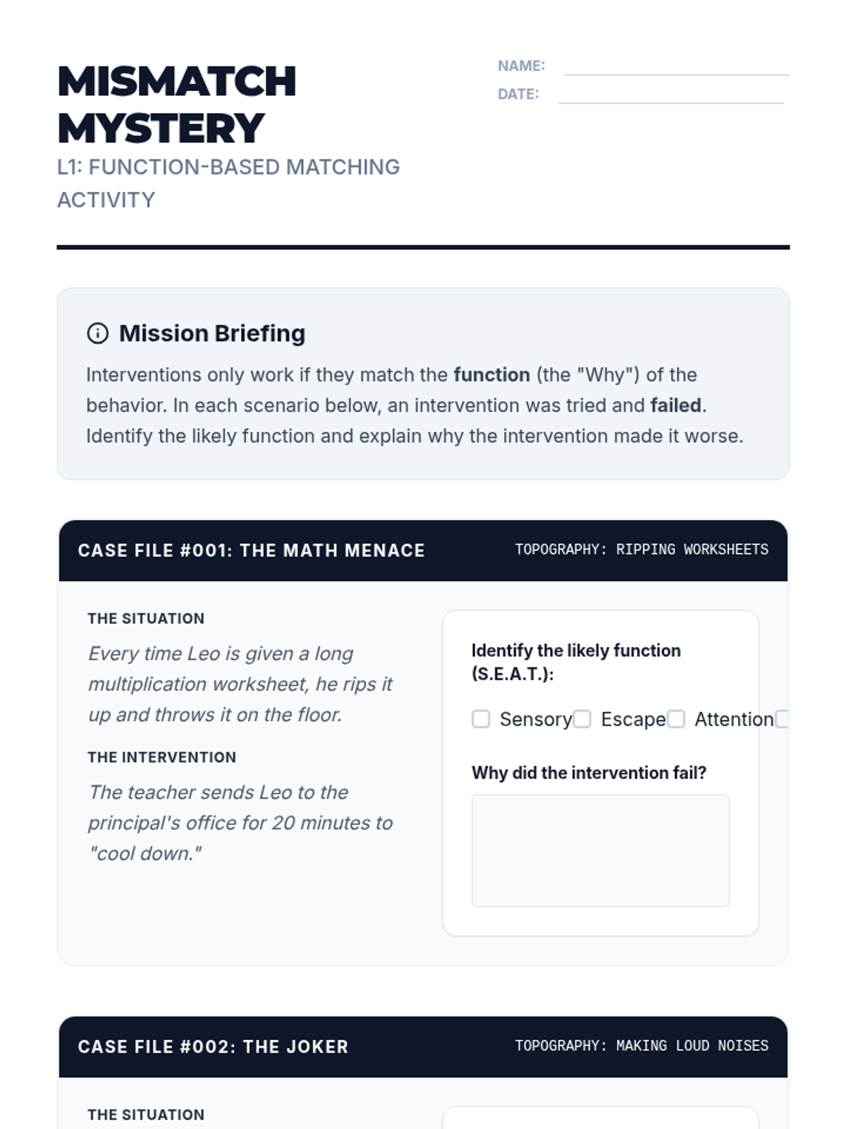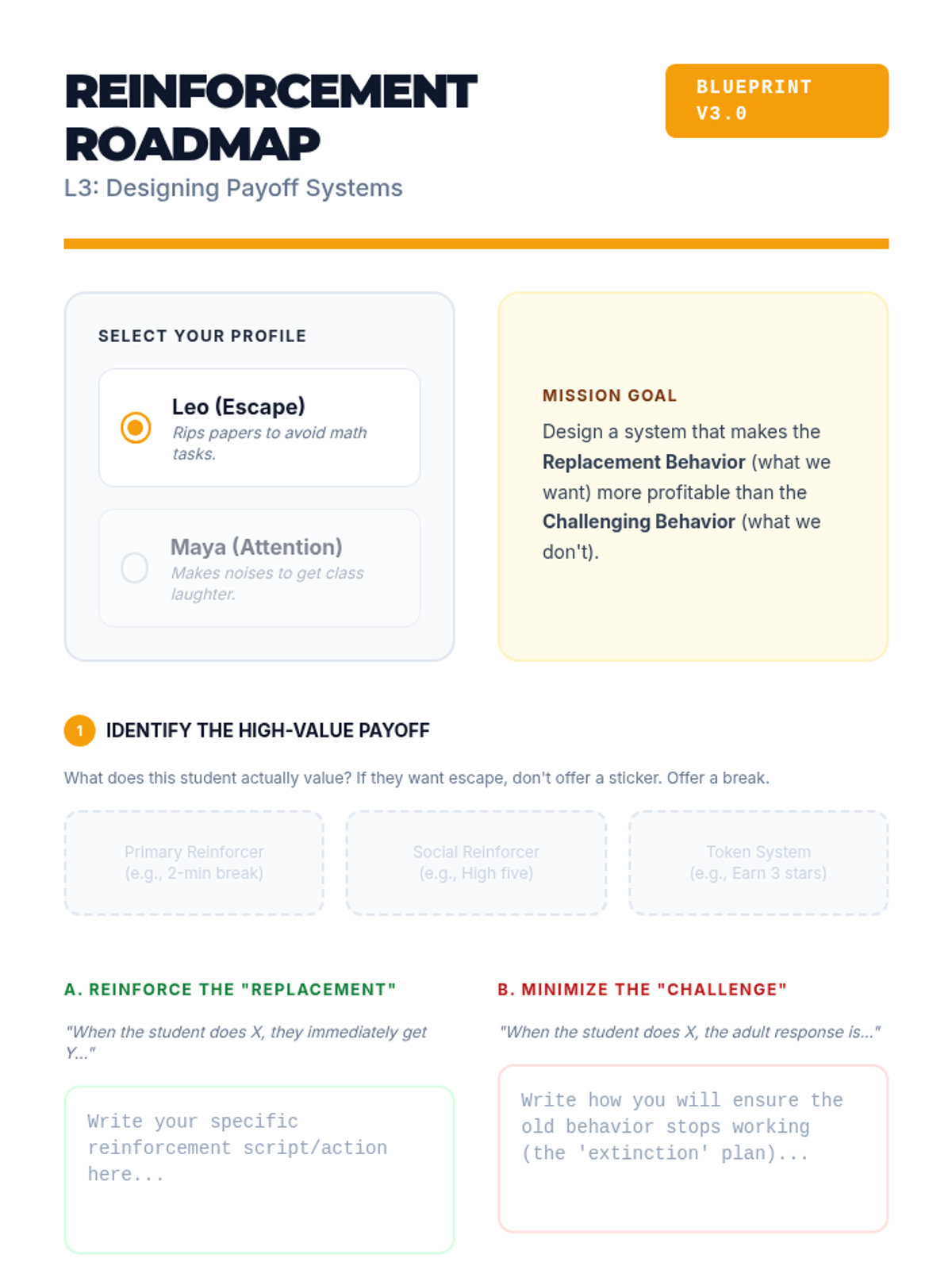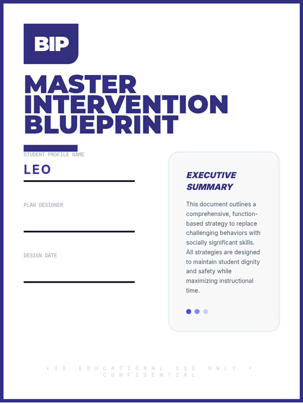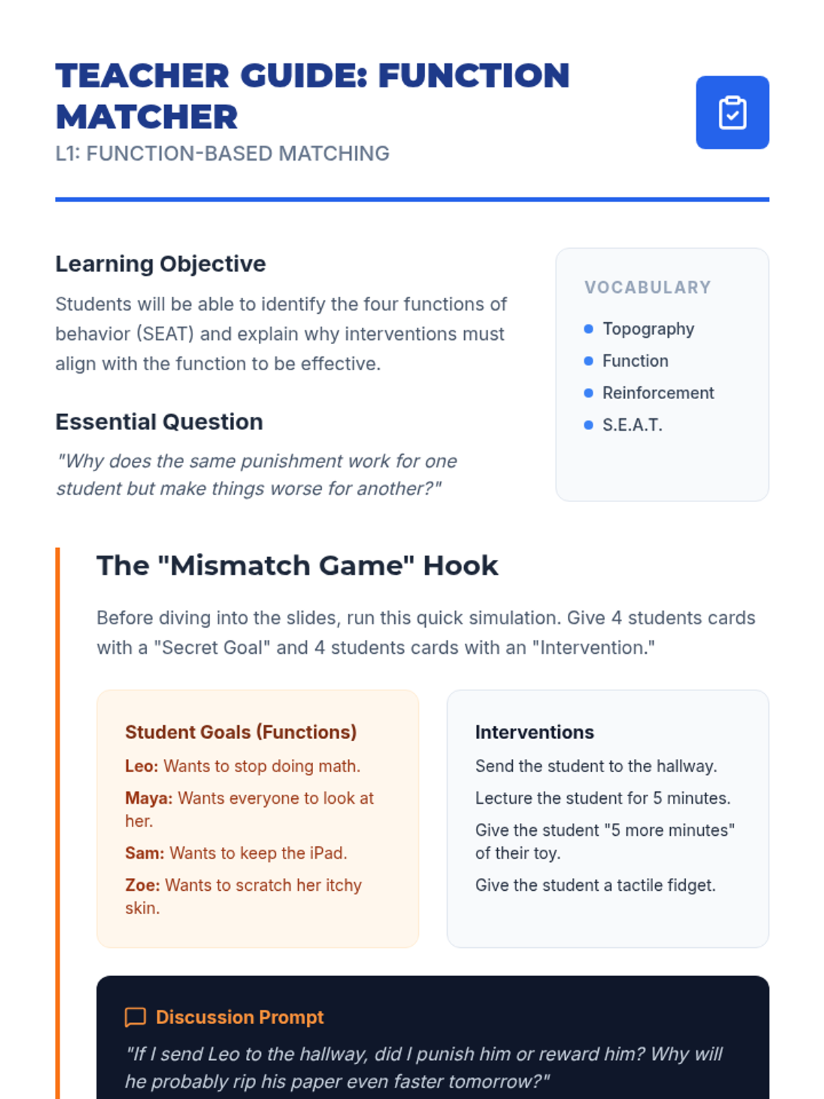 A project-based sequence where 11th-grade students learn to design Behavior Intervention Plans (BIPs) rooted in behavioral function. Students explore antecedent prevention, reinforcement systems, and crisis management to create comprehensive, effective supports.