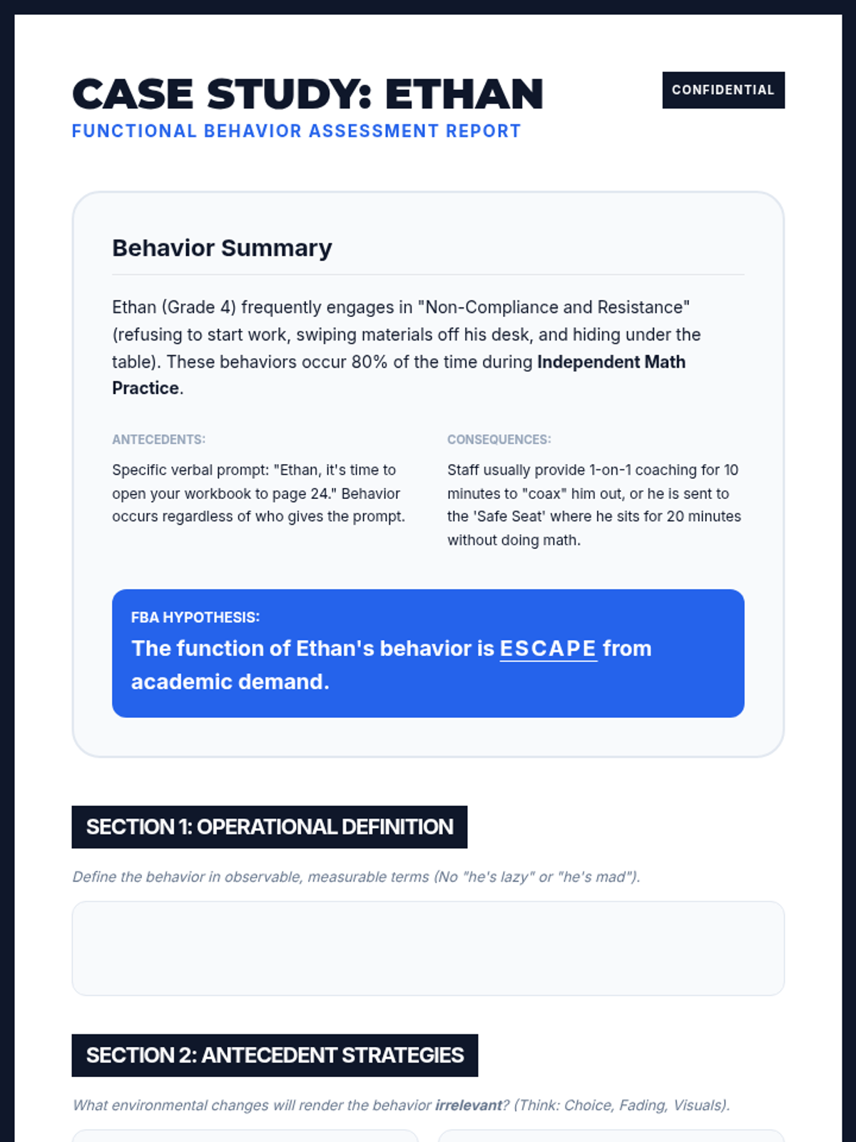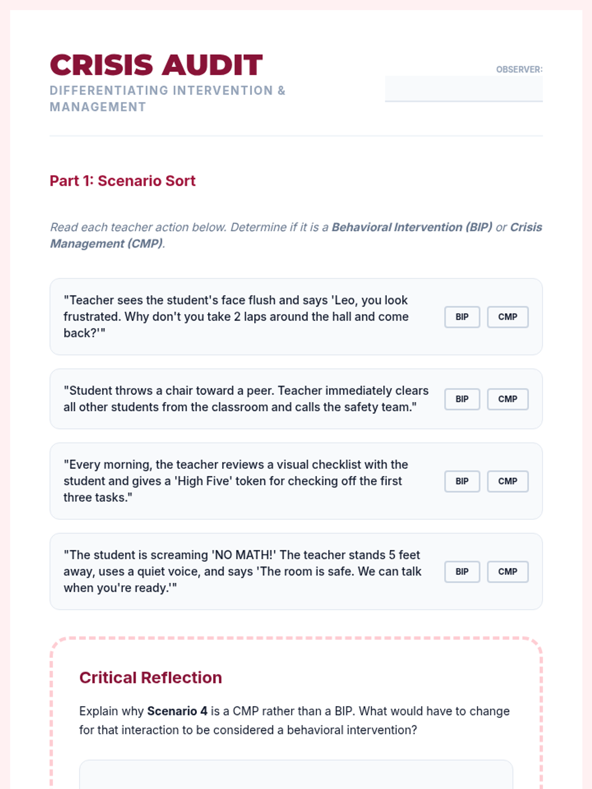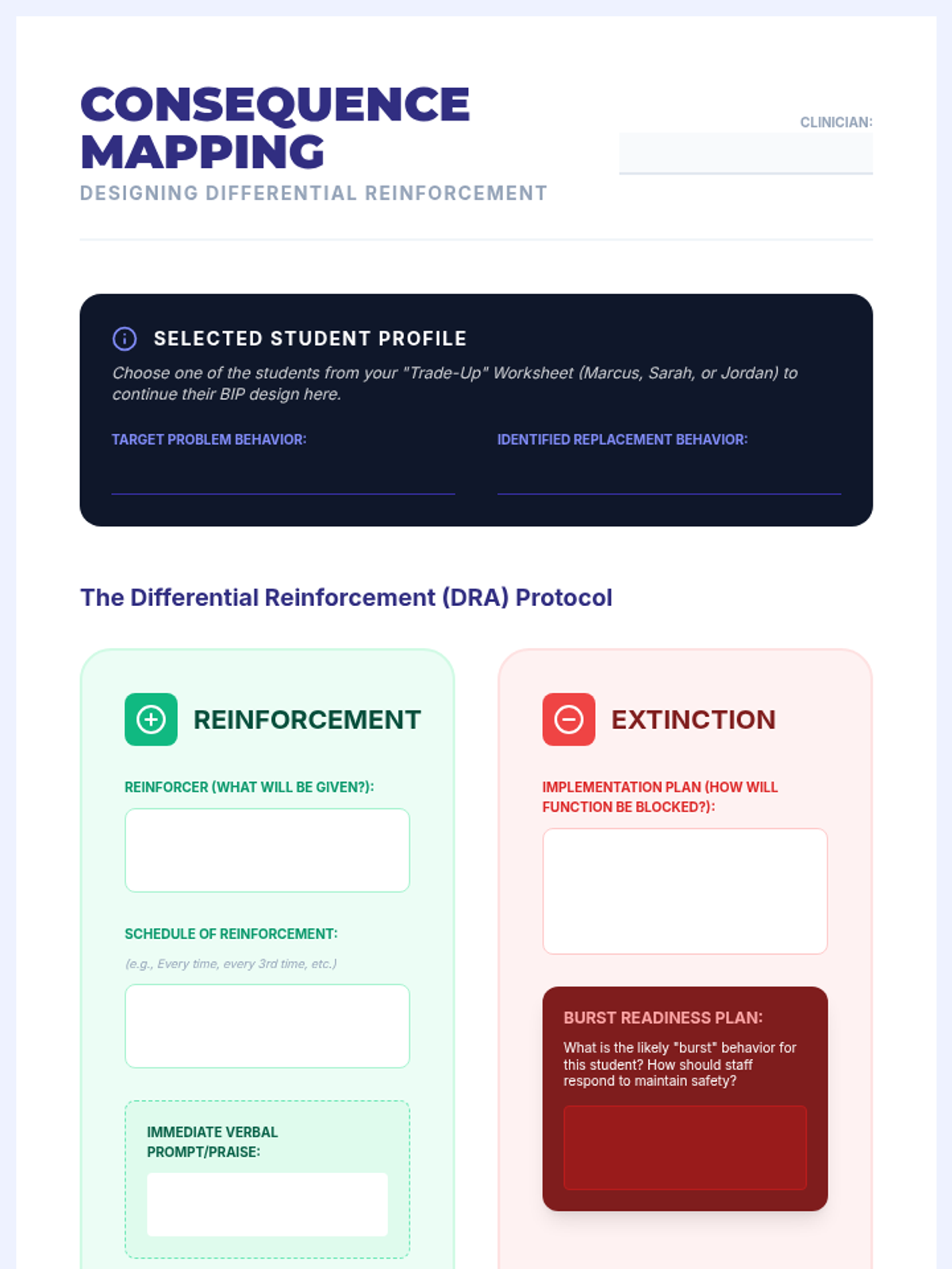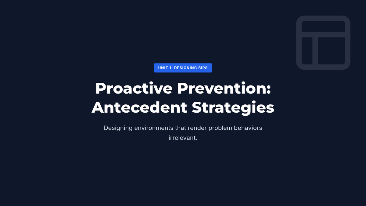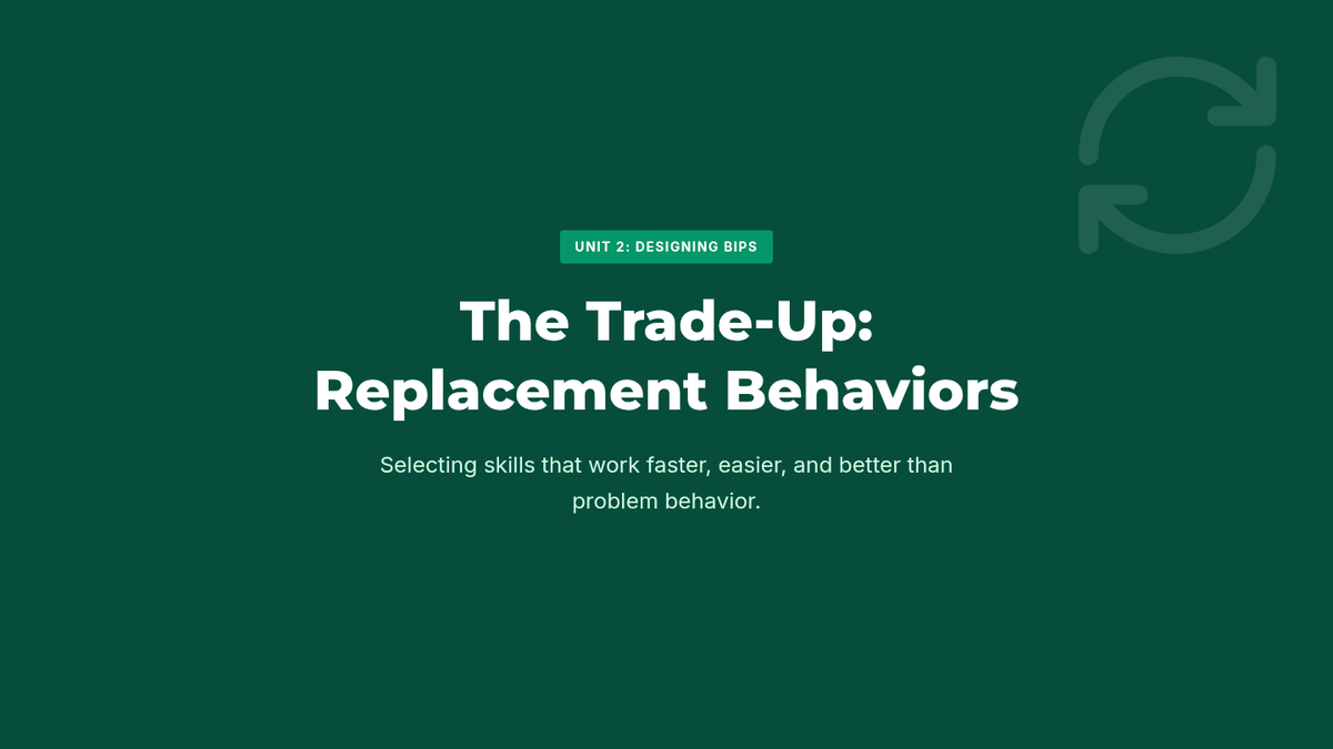 A comprehensive guide for undergraduate students to design Behavior Intervention Plans (BIPs). Students progress from environmental modifications and antecedent strategies to identifying replacement behaviors, consequence management, and final BIP construction based on functional behavior assessment data.