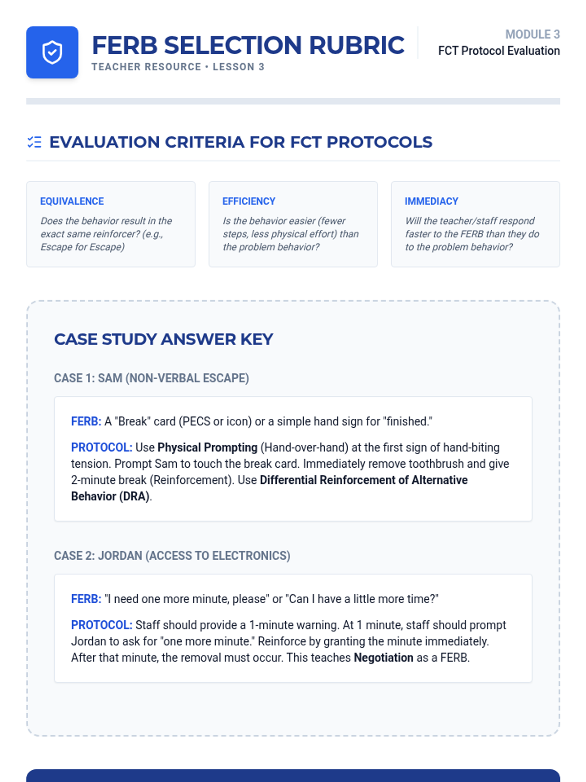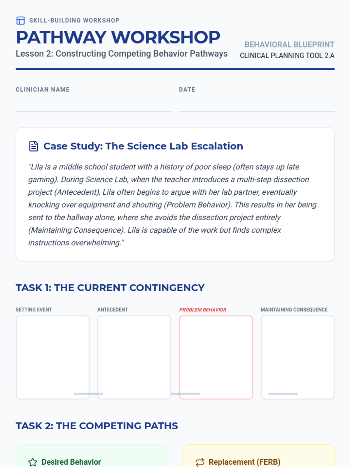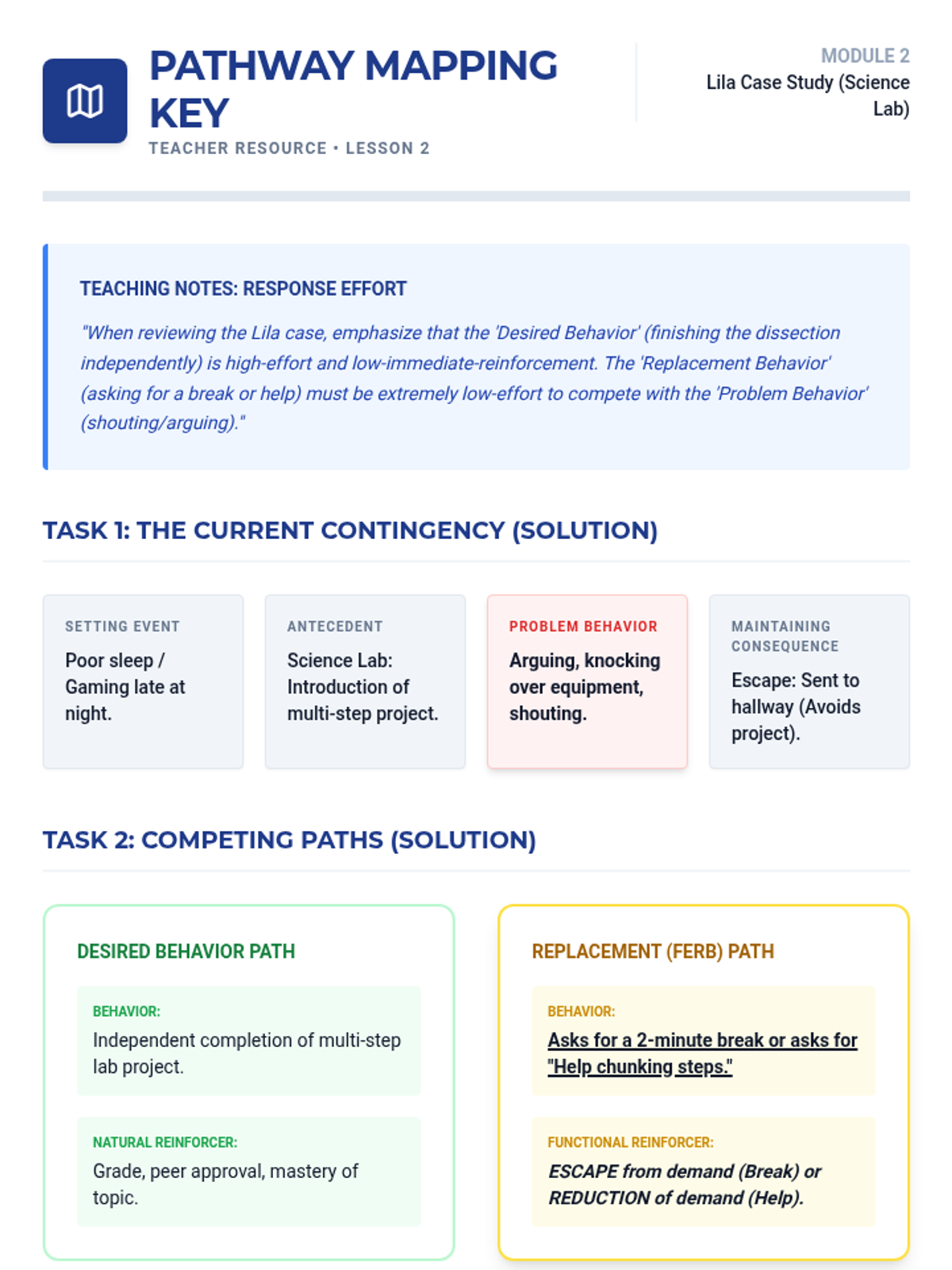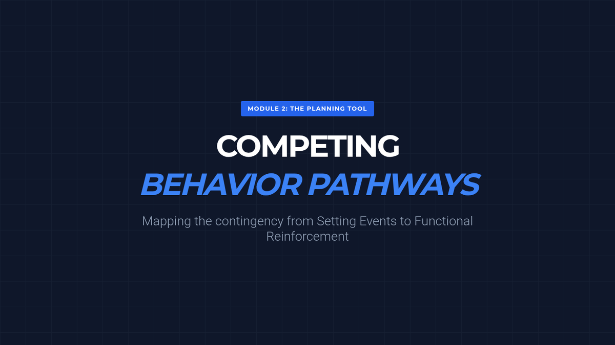 A graduate-level sequence focused on the transition from behavioral assessment to function-matched intervention. Students will master the Competing Behavior Pathway model, learn to select functionally equivalent replacement behaviors (FERBs), and design comprehensive Behavior Intervention Plans (BIPs) that address the root cause of problem behaviors.
