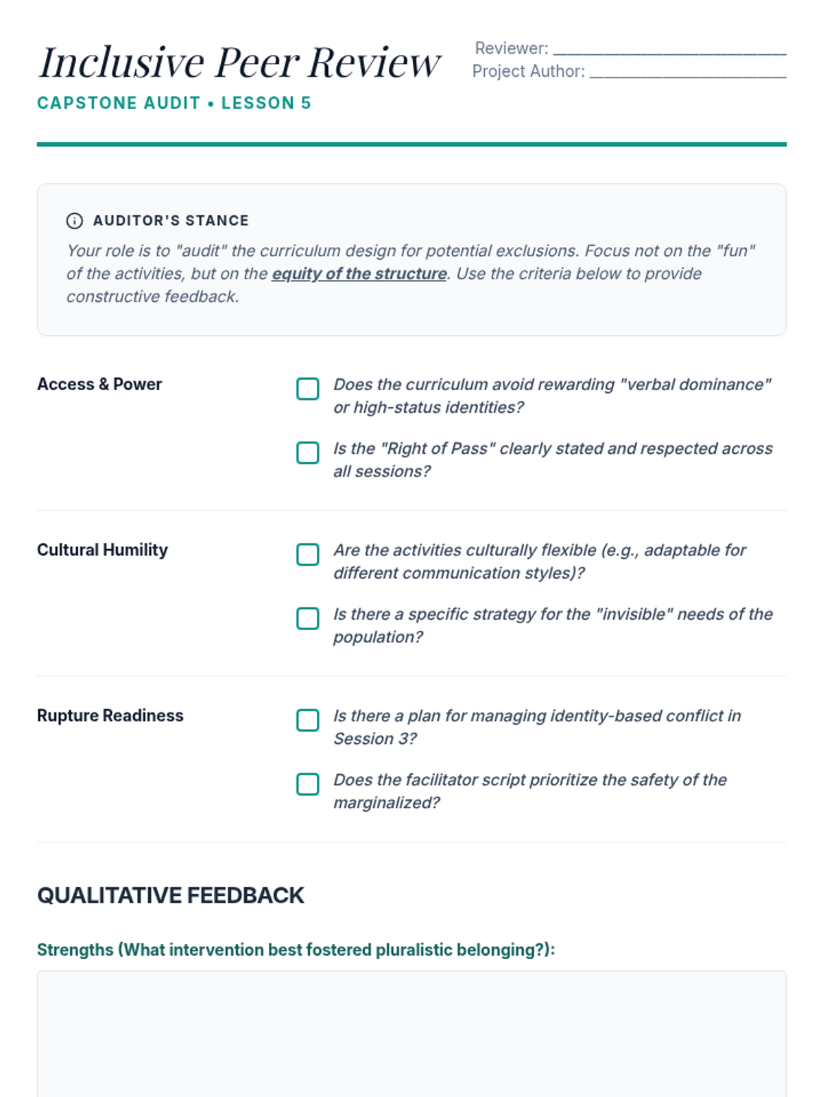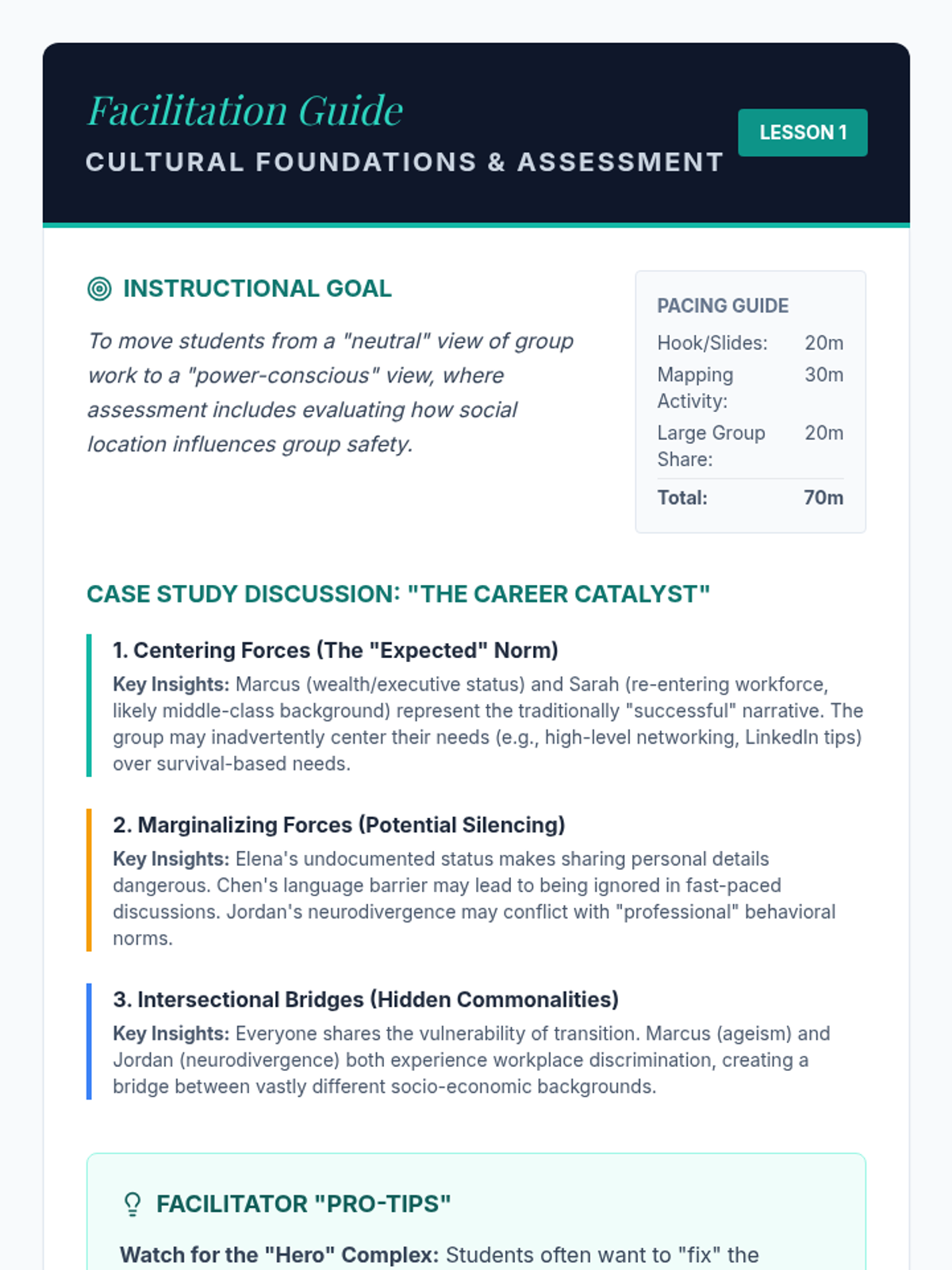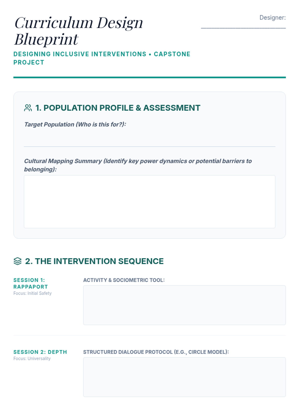 This graduate-level sequence focuses on the design and implementation of inclusive group interventions that bridge diverse identities and foster belonging in multicultural contexts. Students move from theoretical assessment to practical application of sociometric tools, structured dialogue, and real-time conflict resolution.