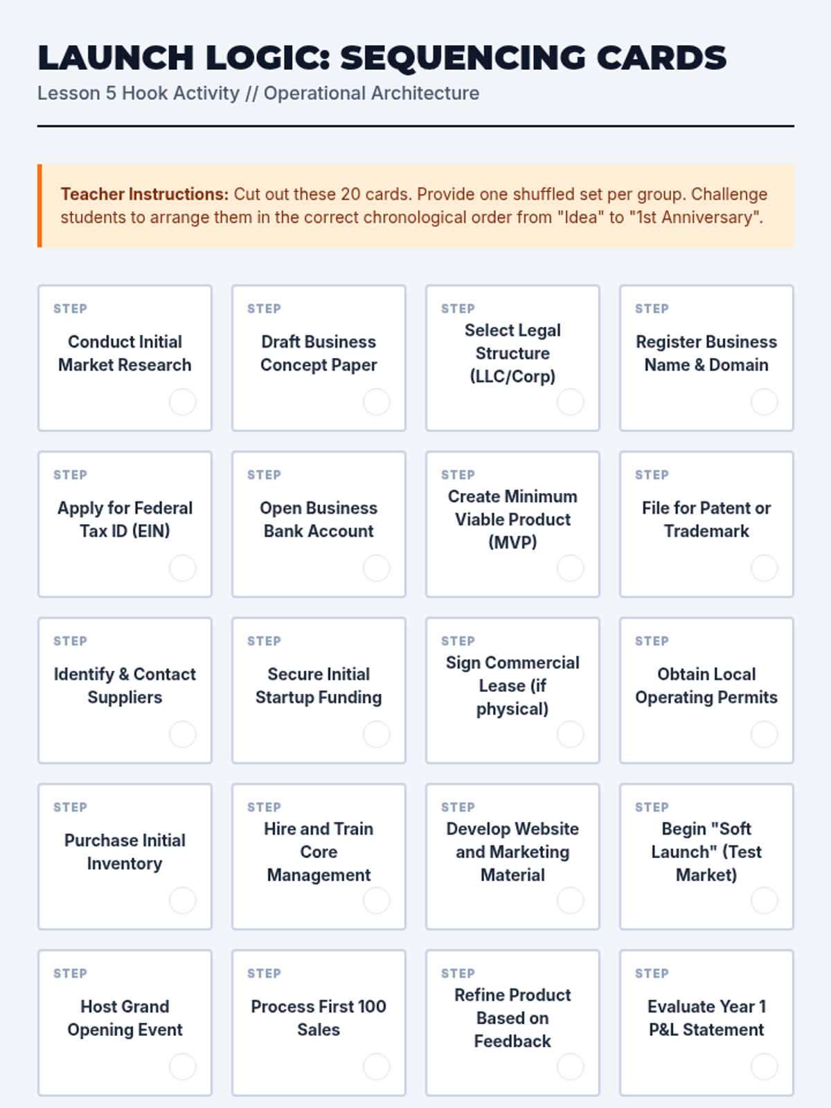 This sequence guides 11th-grade students through the logistical and operational design of a business plan. Students navigate legal structures, global supply chains, organizational design, facility planning, and project management timelines to transform abstract ideas into functioning systems.