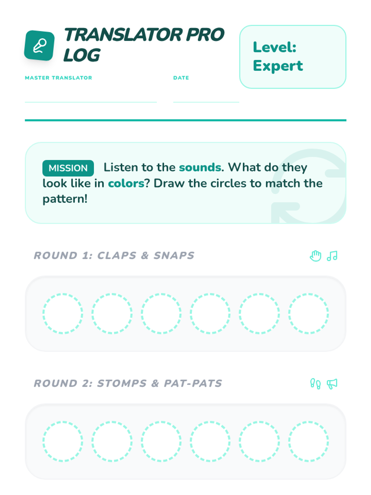 A Pre-K math sequence focused on algebraic reasoning through pattern analysis. Students move beyond simple repetition to identify missing elements, debug errors, create edible and artistic patterns, and translate abstract sounds into visual representations.